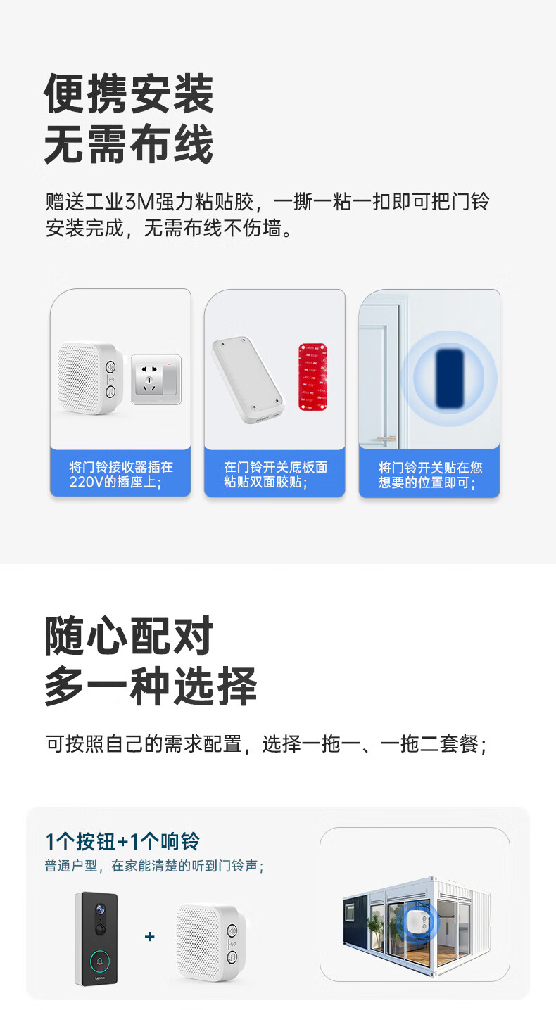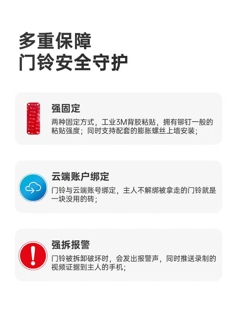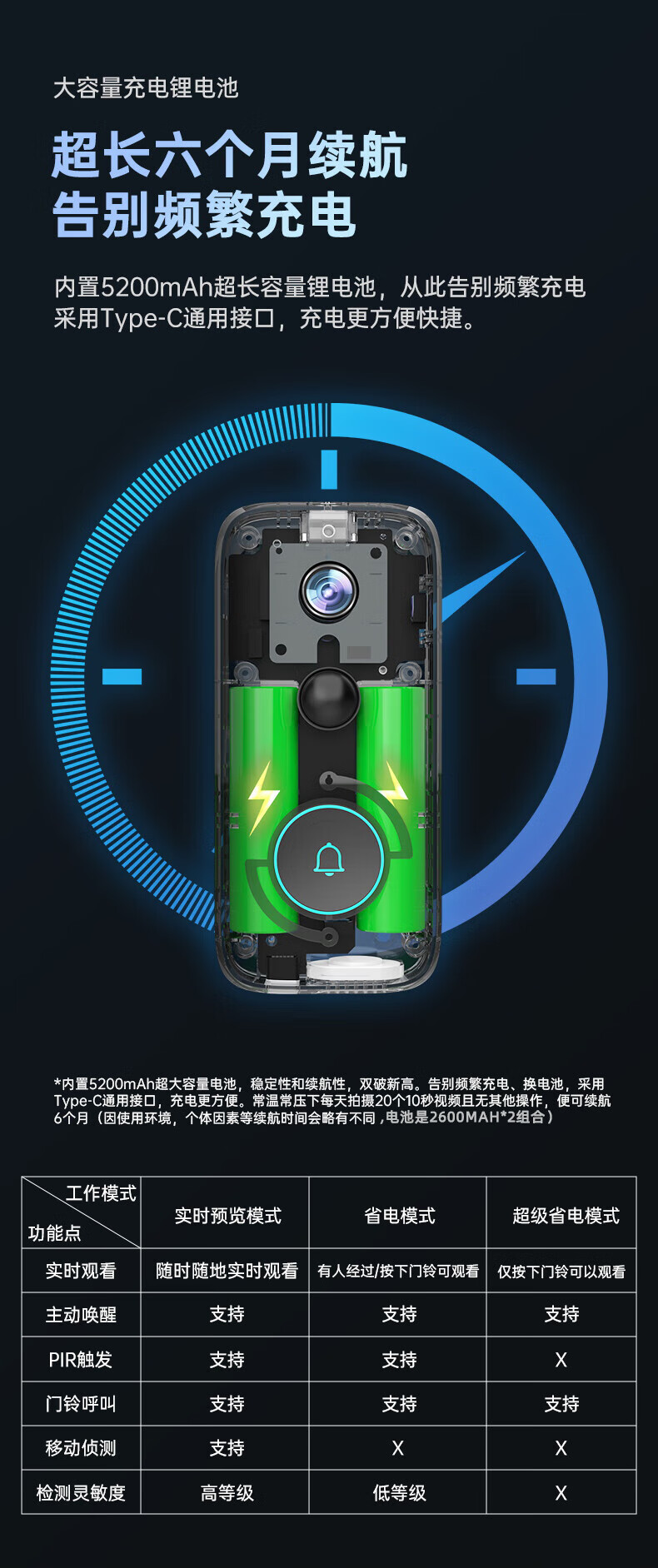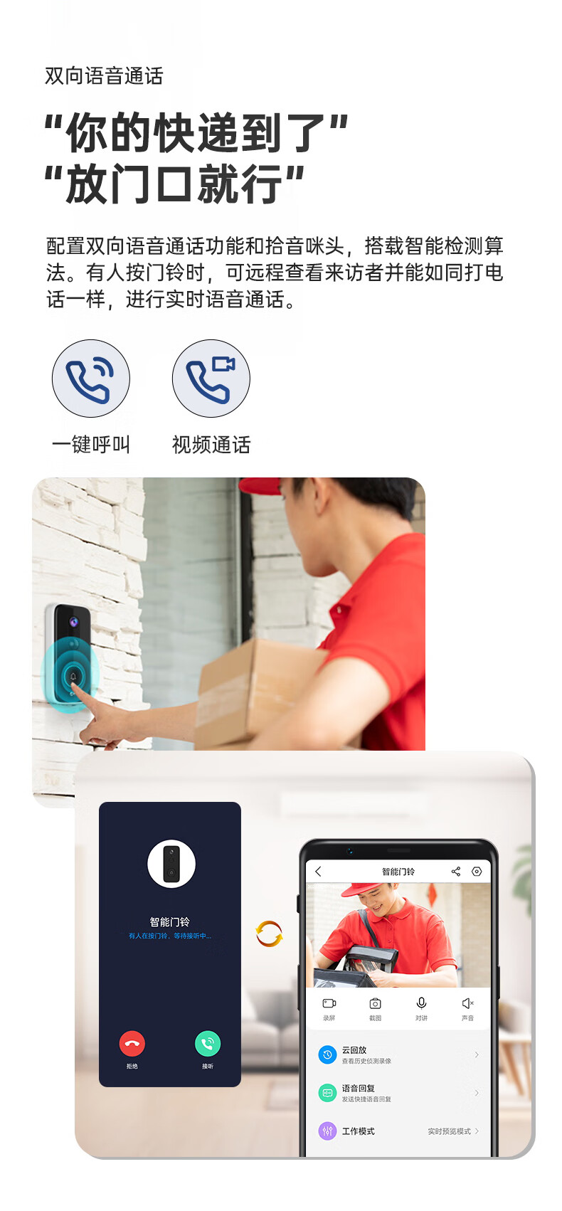 联想(Lenovo)300万可视门铃监控入户门口摄像头家用电子防盗智能猫眼手机无线远程可视通话超长续航