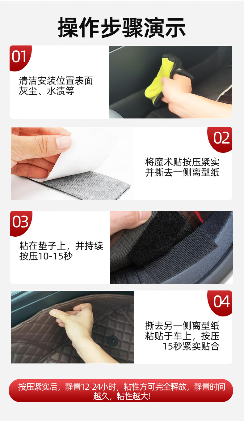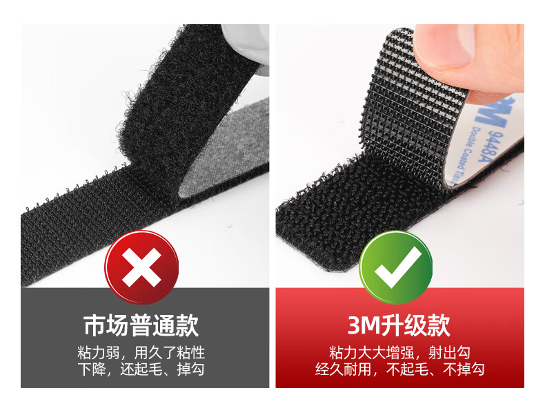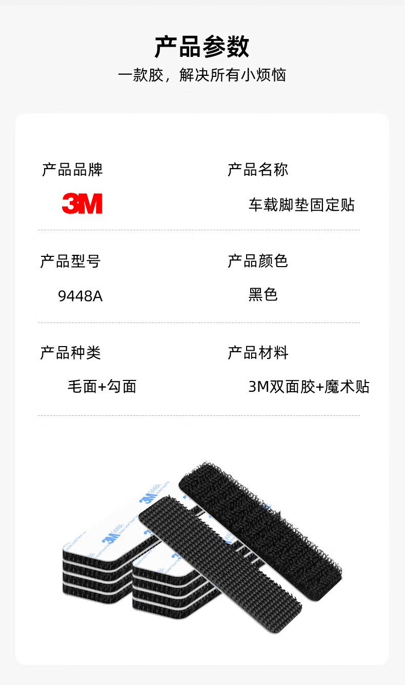 3M背胶魔术贴双面胶强力高粘度固定汽车车载脚垫专用粘贴片自粘带 【黑色】宽20mm*长15cm【10对】
