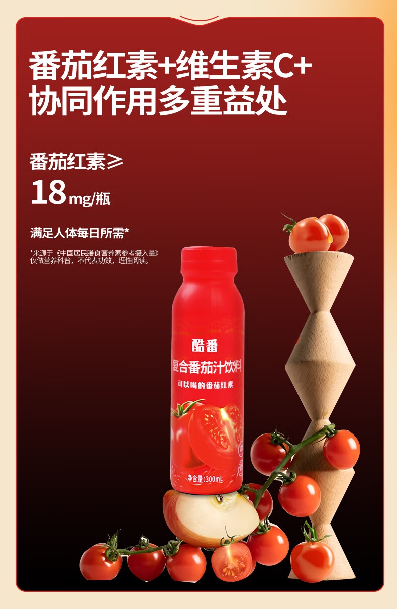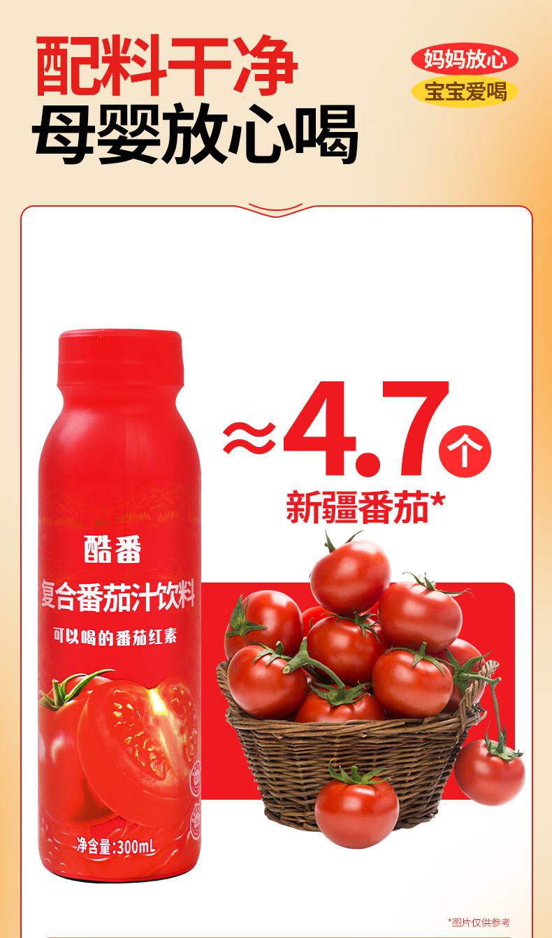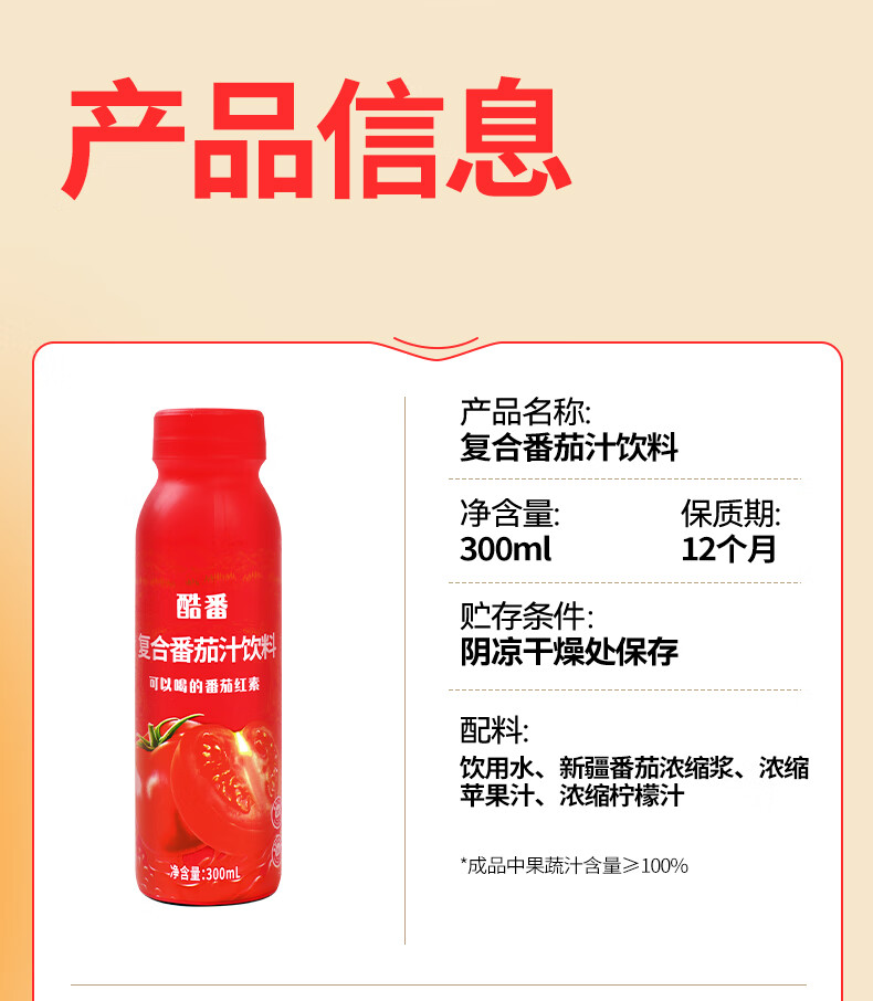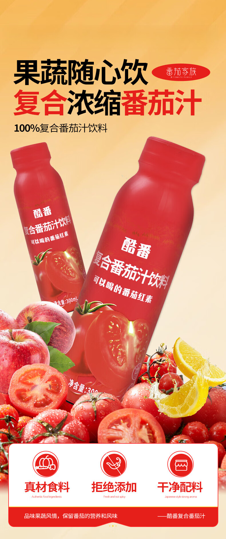 酷番番茄汁复合饮料新疆番茄果蔬汁番茄红素果汁300ml*6瓶 300ml*6瓶