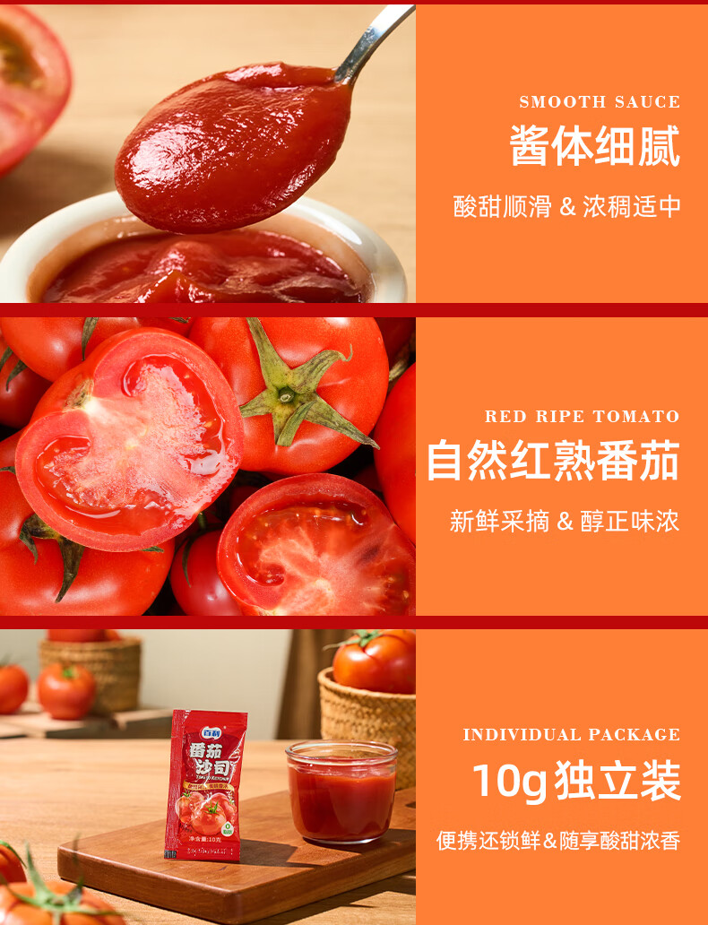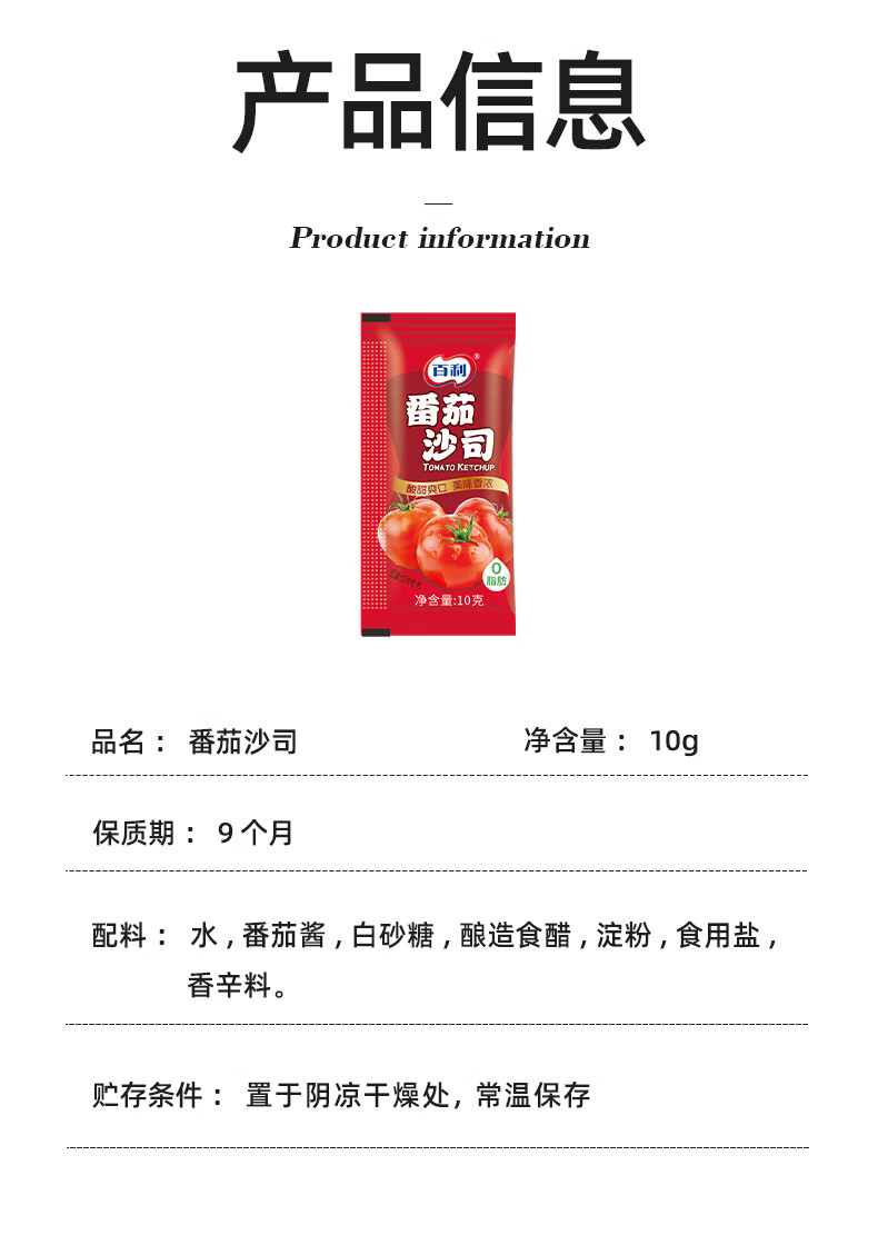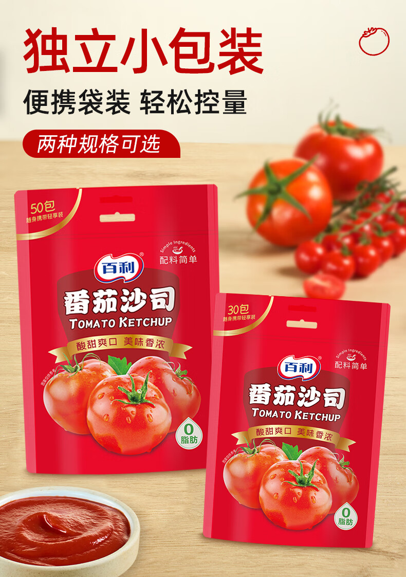 百利番茄酱番茄沙司0添加0防腐剂意大利面薯条酱10g*30包