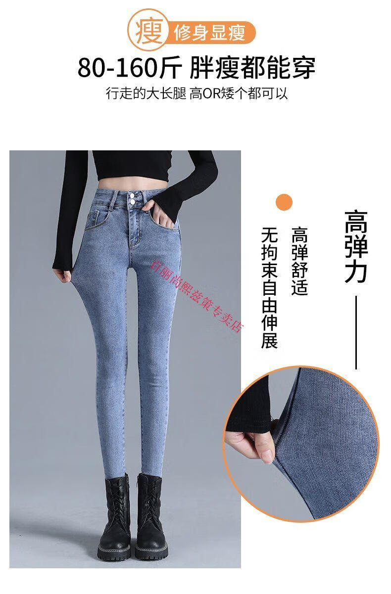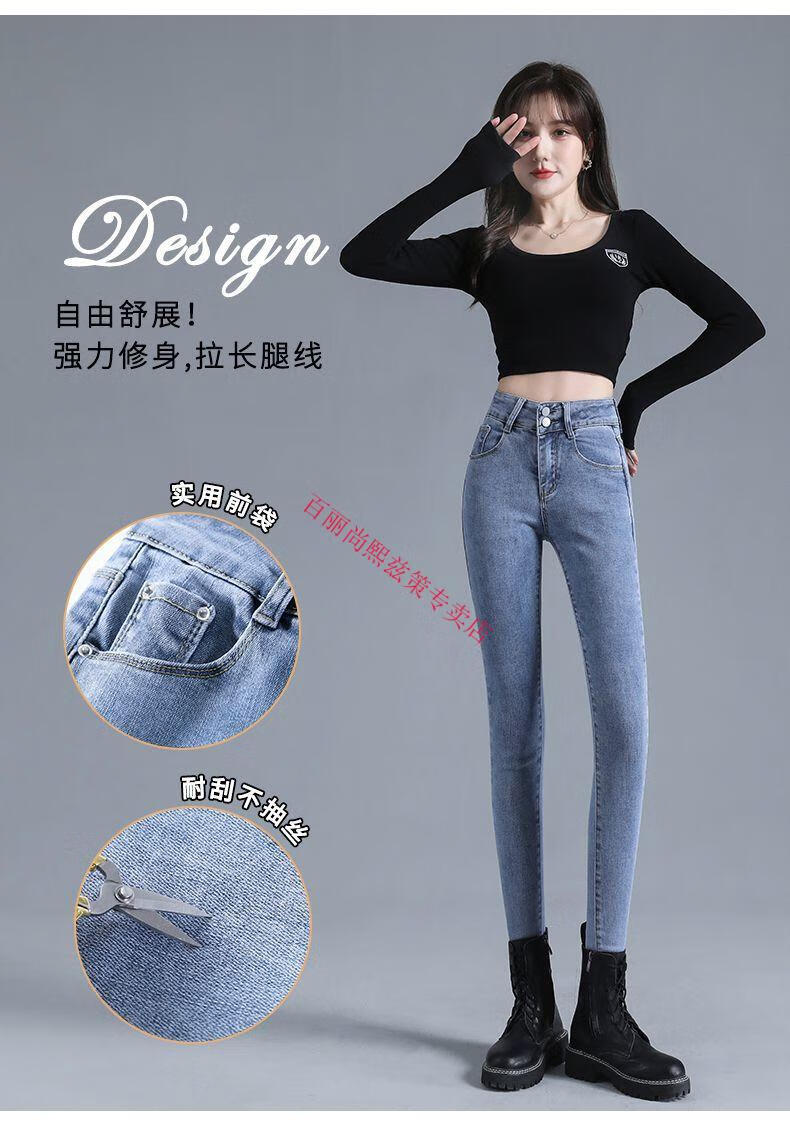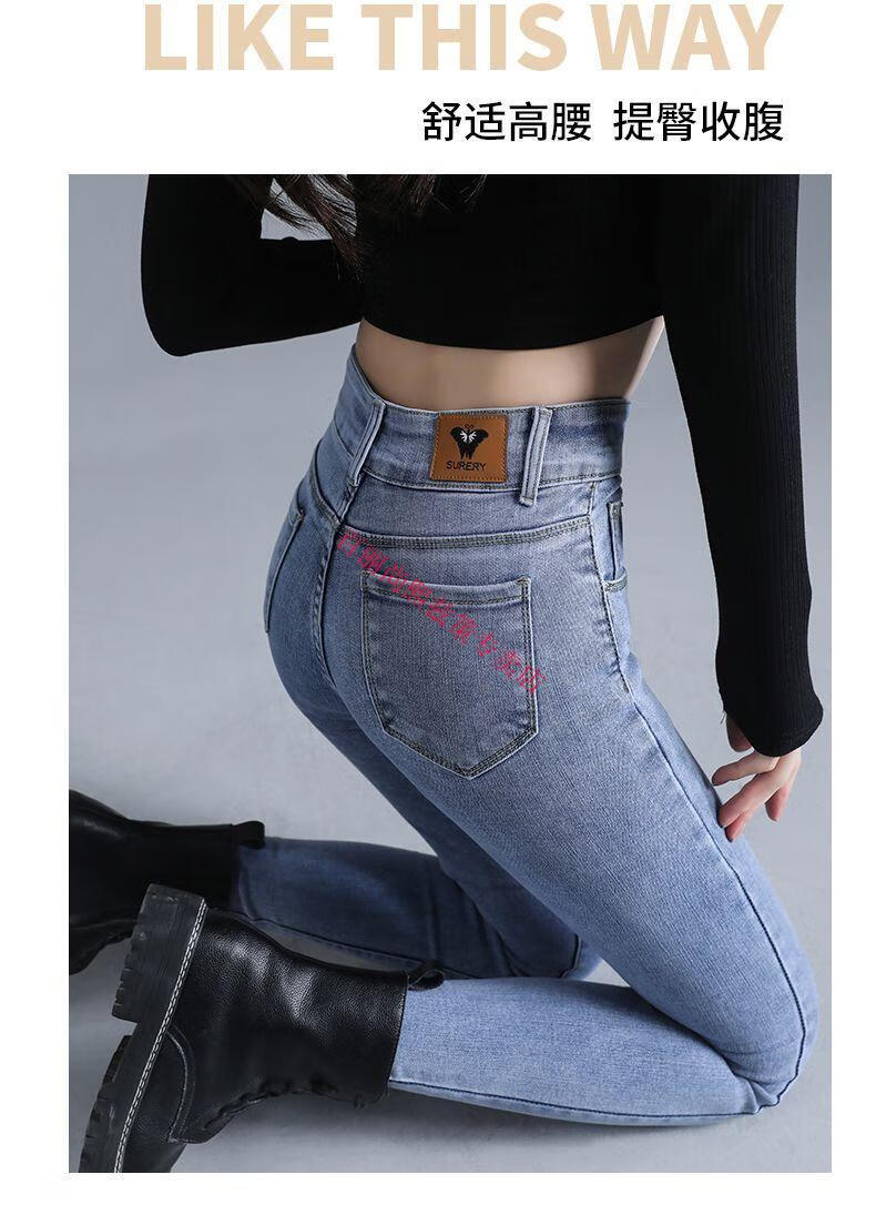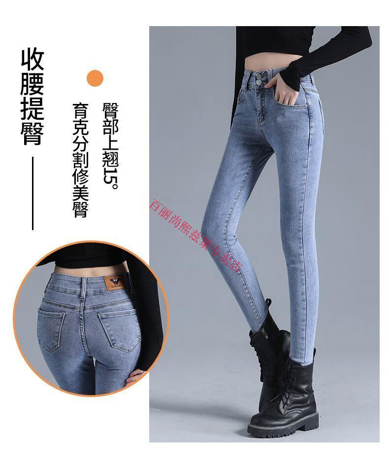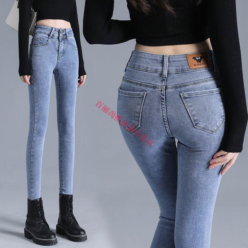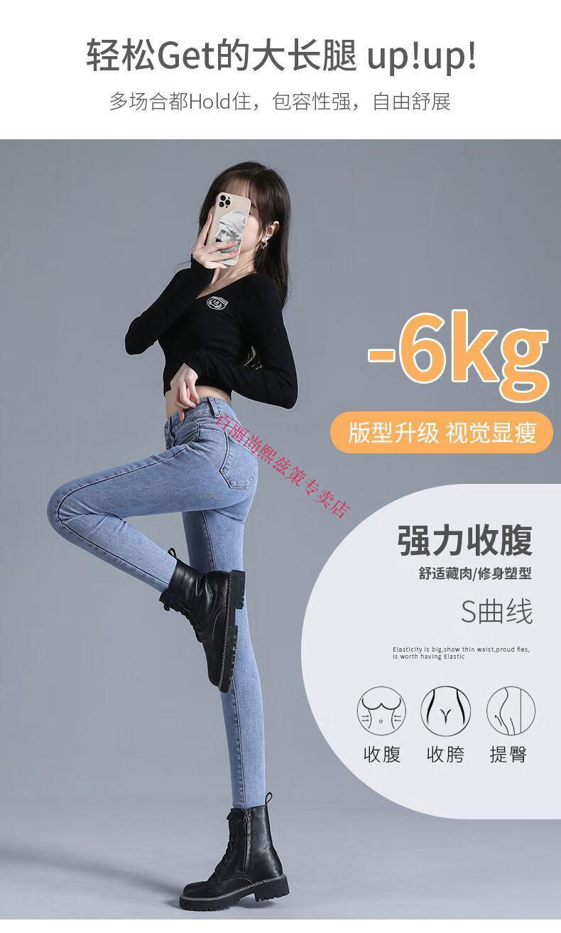 百丽尚熙高腰提臀牛仔裤女胖妹妹大码收腹显高性感紧身刺绣铅笔裤小脚裤子 1605复古蓝单裤【优口碑】 25 建议84-89斤