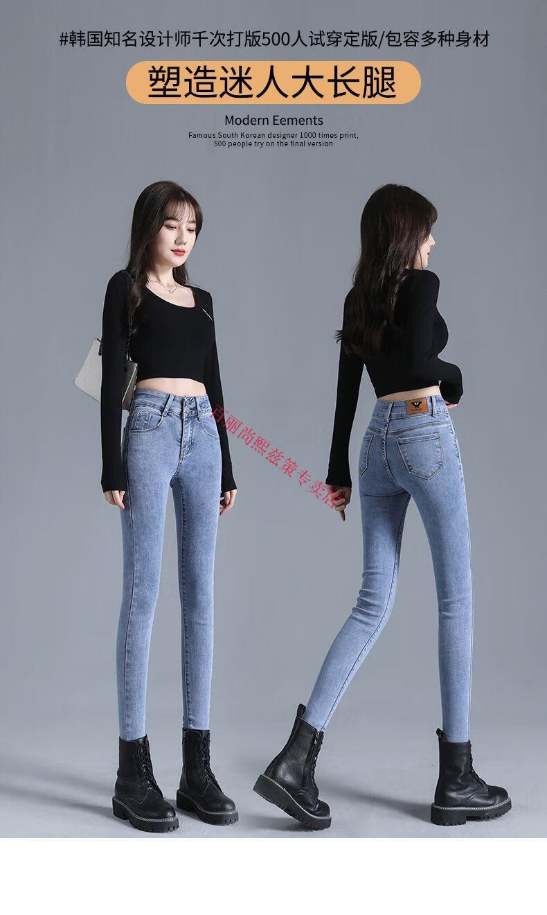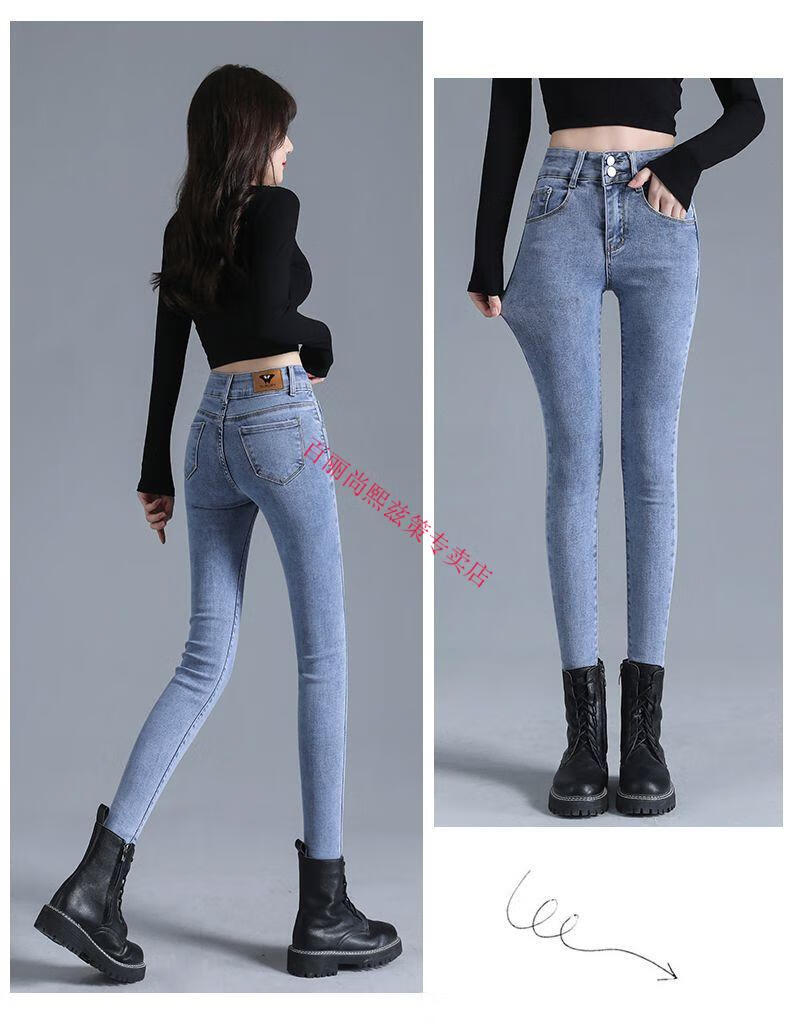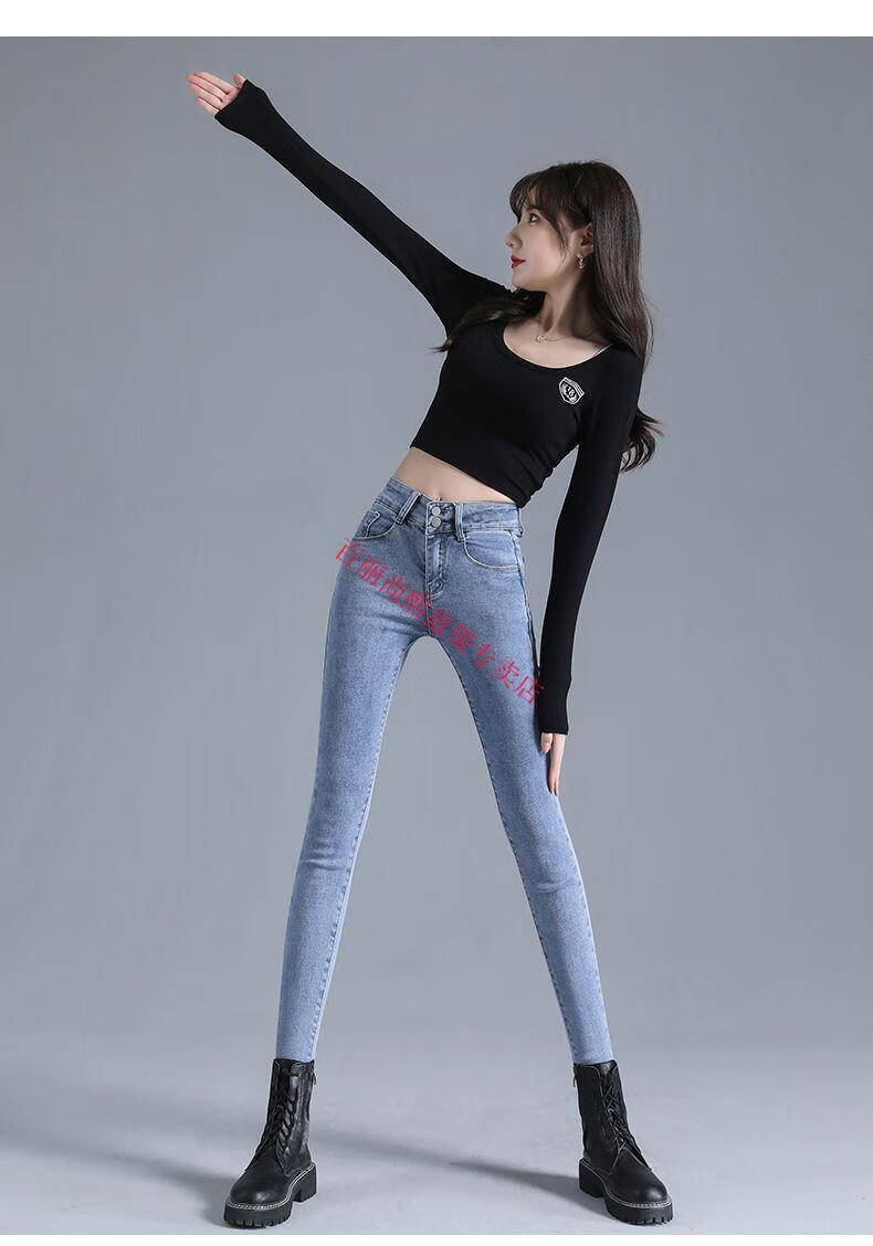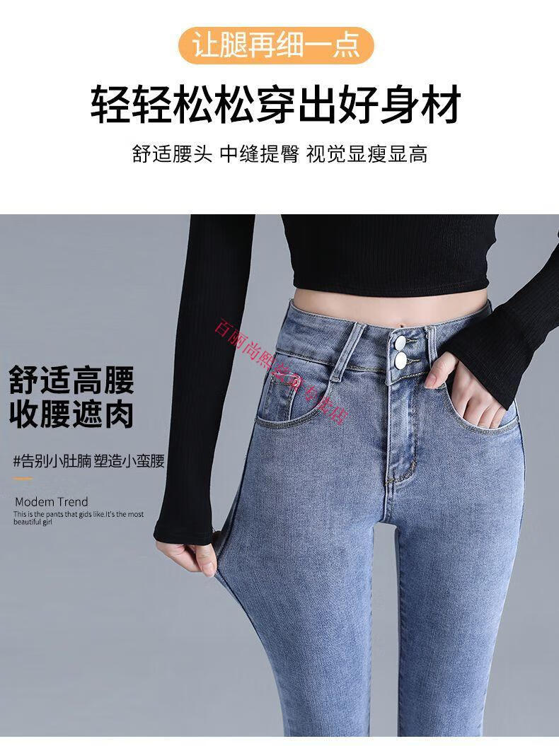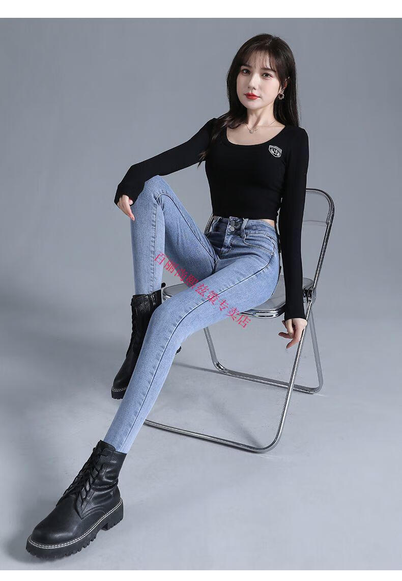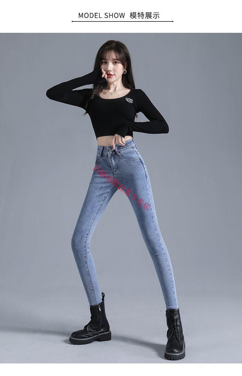 百丽尚熙高腰提臀牛仔裤女胖妹妹大码收腹显高性感紧身刺绣铅笔裤小脚裤子 1605复古蓝单裤【优口碑】 25 建议84-89斤