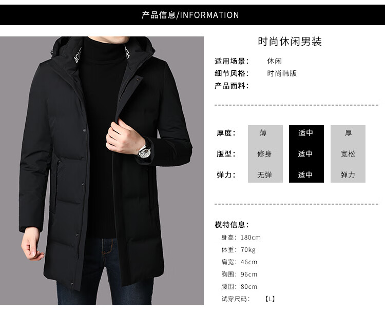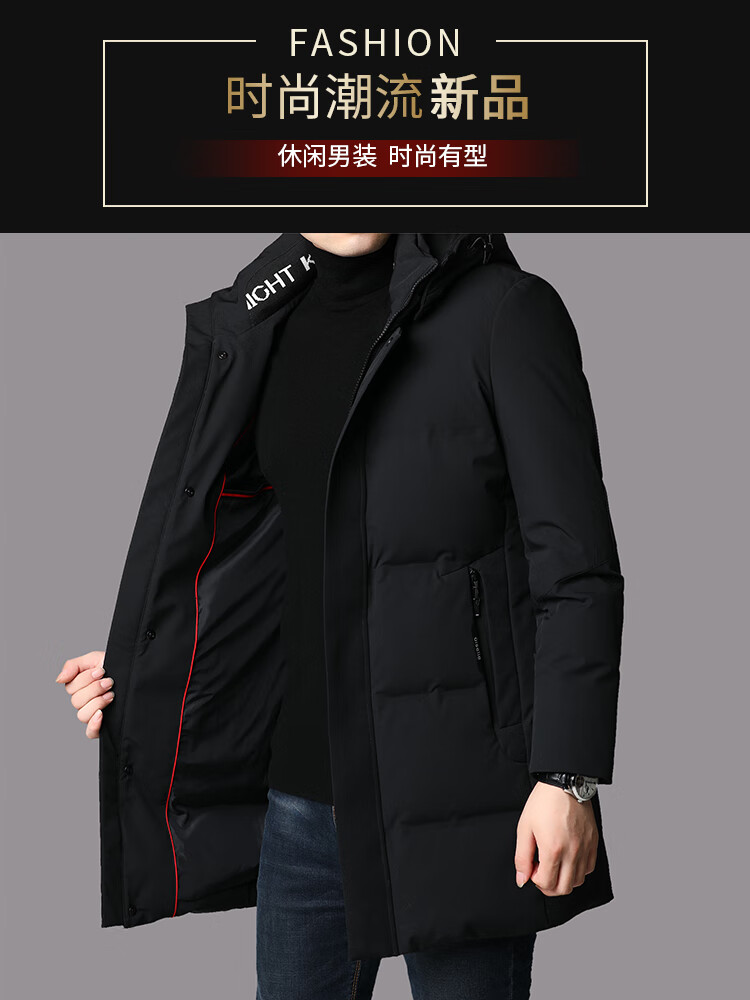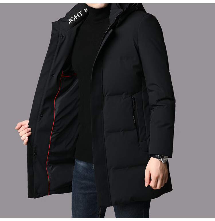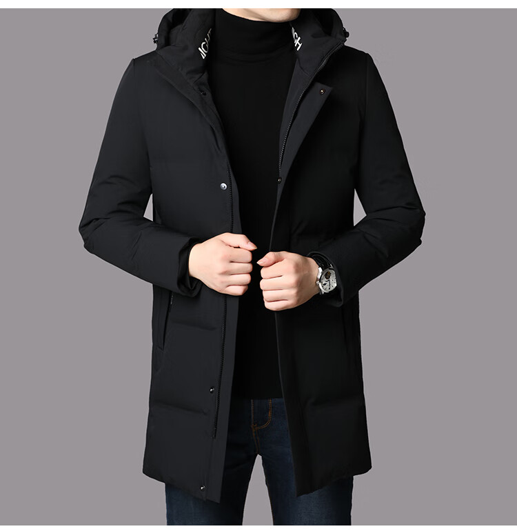 ARMANI EXCHANGE阿玛尼冬季羽绒服男装中长款加厚保暖2024新款大码外套 黑色【可卸帽子】 2XL 185
