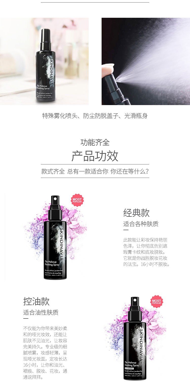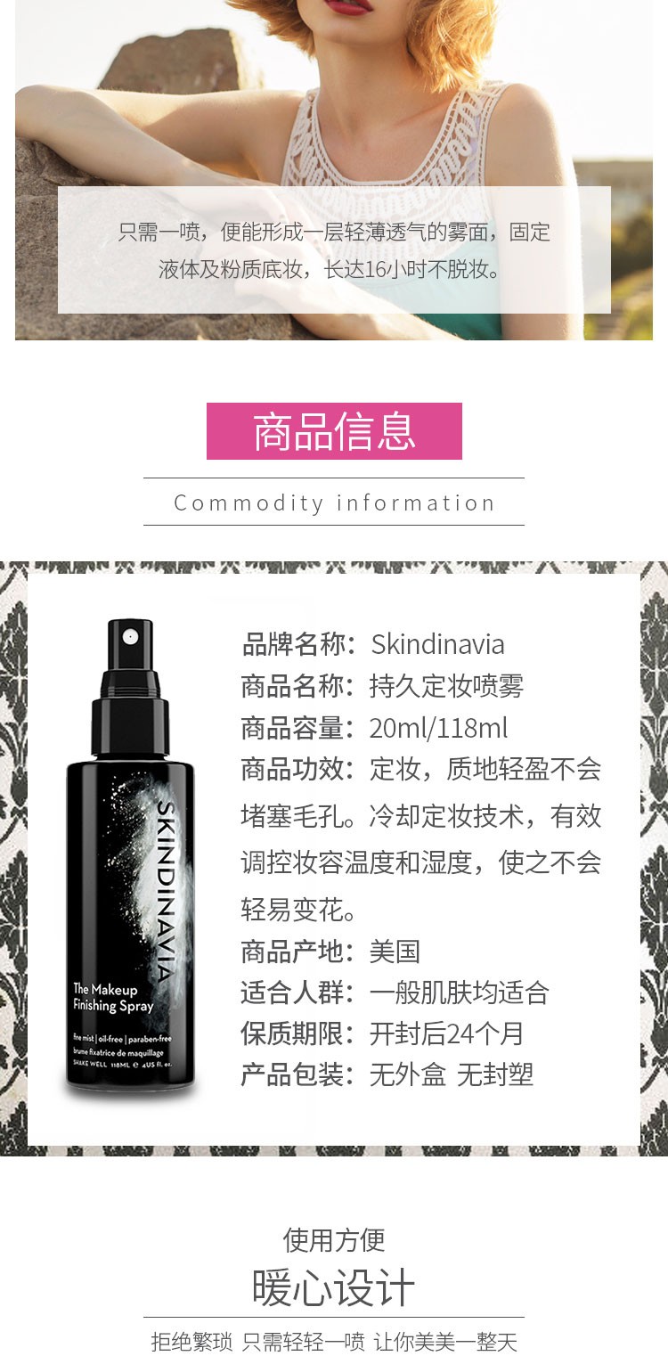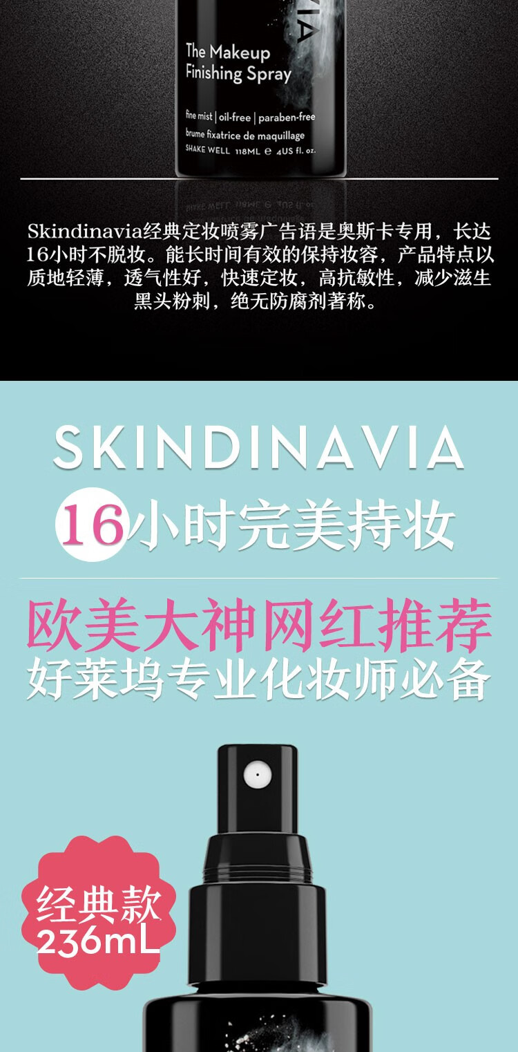 SKINDINAVIA丝科蒂娜定妆喷雾保湿持久控油防水经典新娘小样旅行装女 新娘款 118ml 【敏肌/长时定妆】