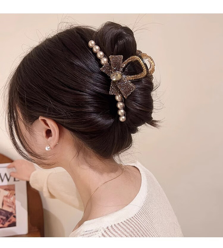 向晚发夹发卡气质珍珠抓夹女后脑勺盘发鲨鱼夹大号发夹发饰女新年礼物