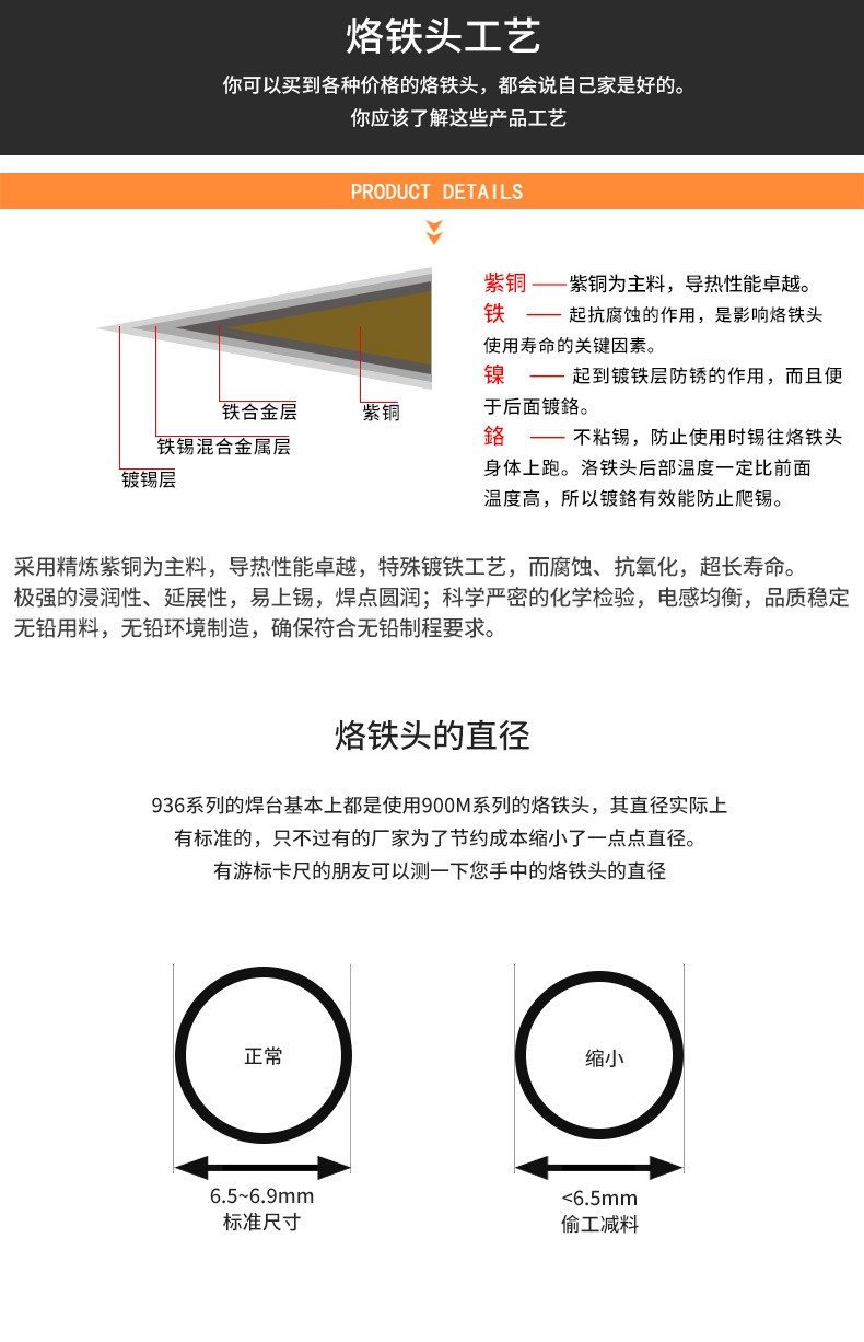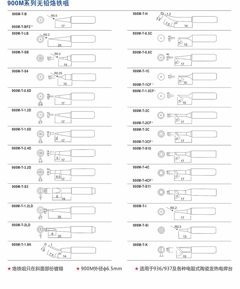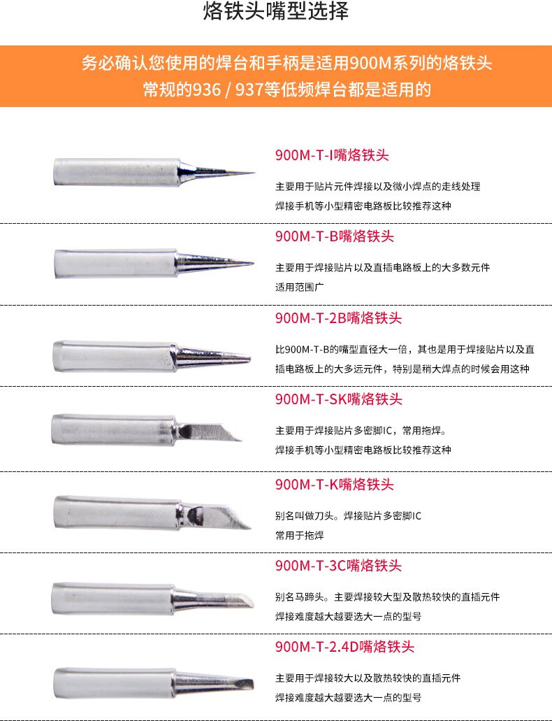 bakon白光900M烙铁头936烙铁咀60W内热式刀头尖头马蹄咀白光焊咀烙铁嘴 刀头形 900M-T-K