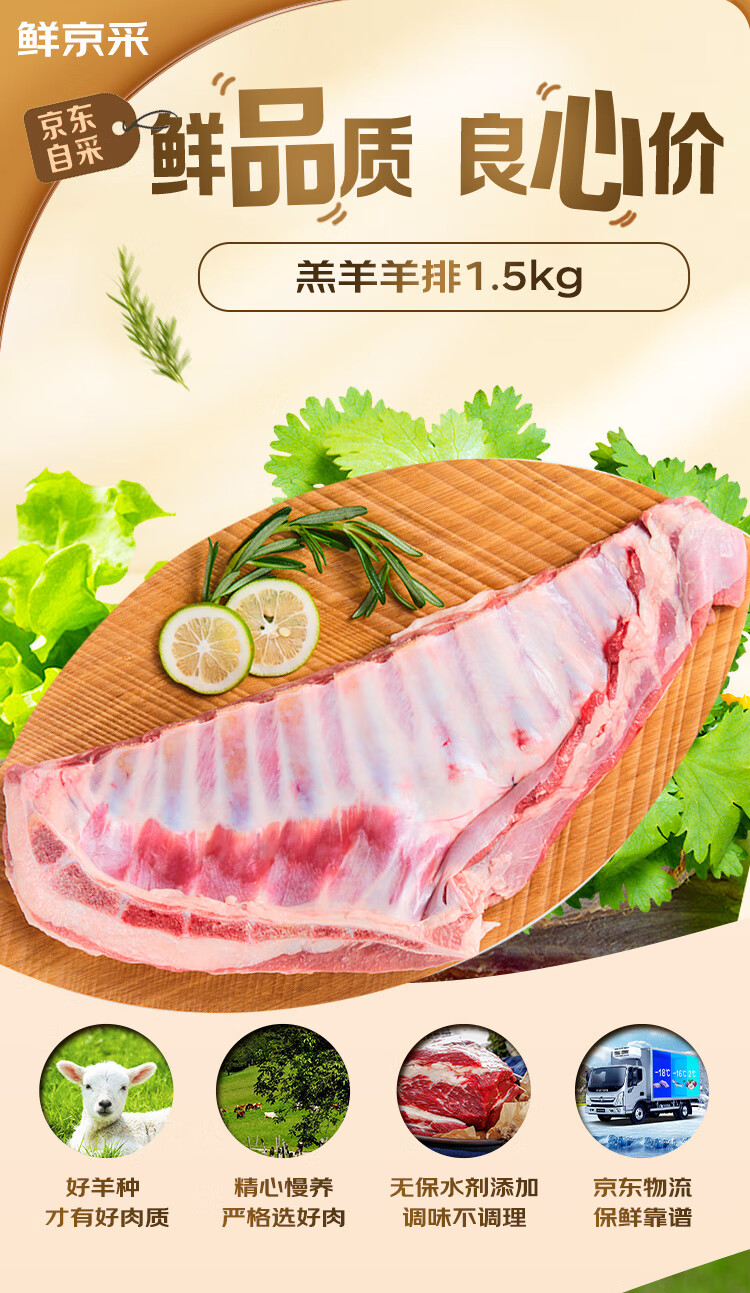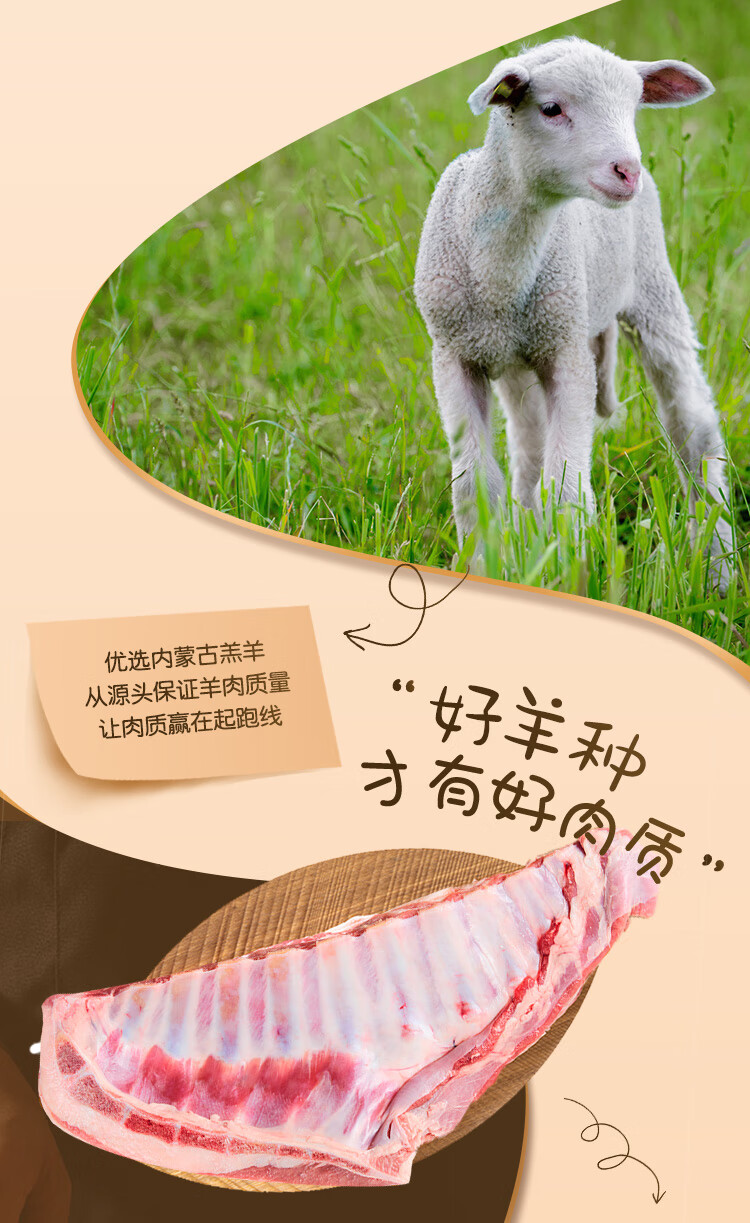 鲜京采内蒙古羔羊整排 净重3斤 生鲜速冻羊肉 羊排烧烤清炖食材