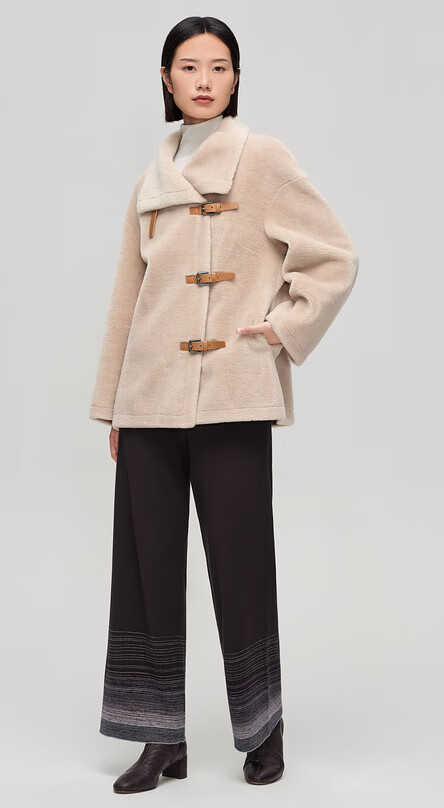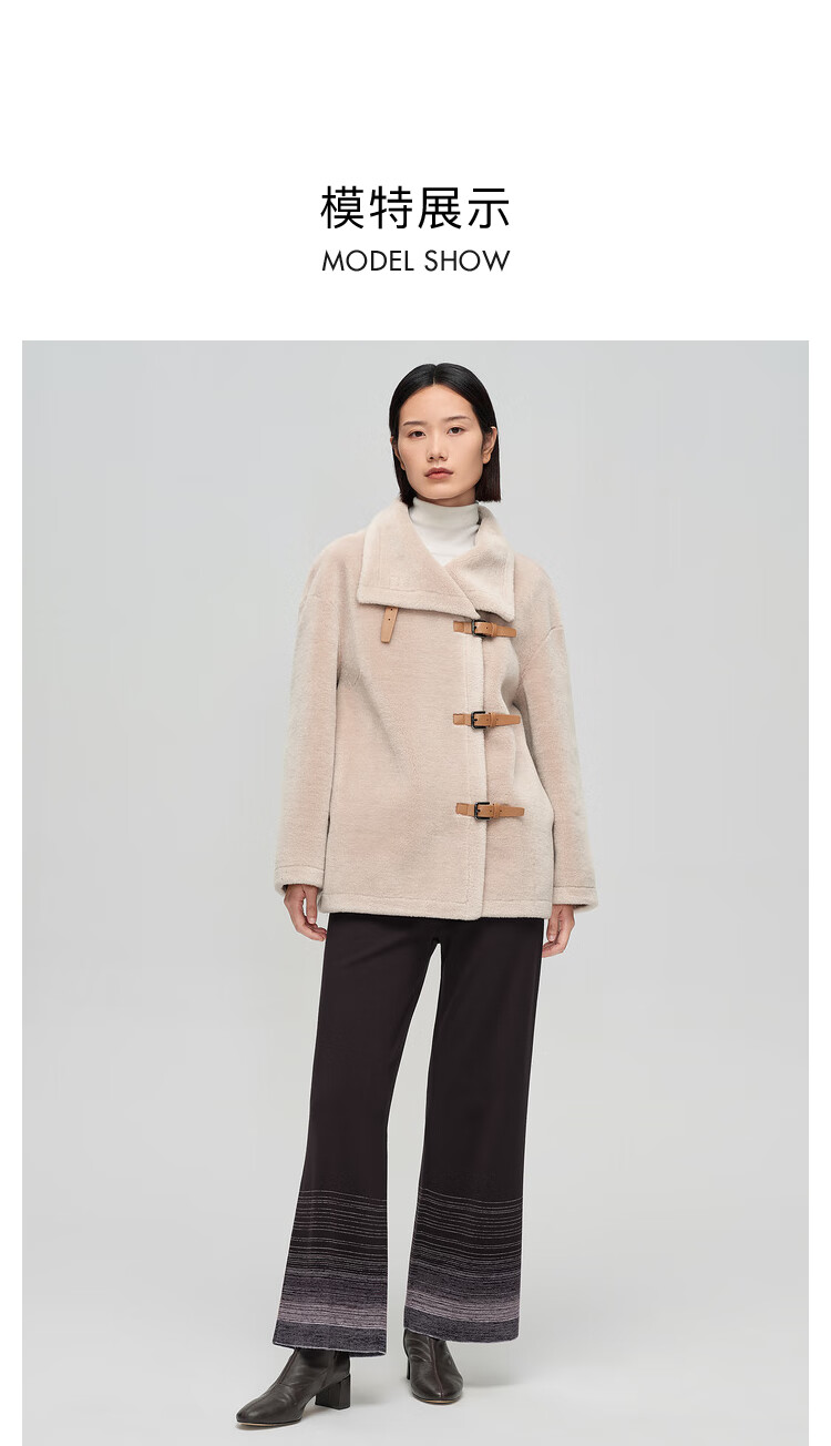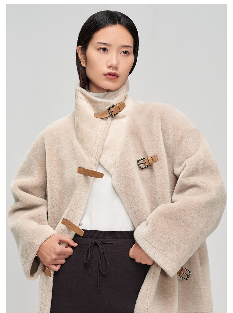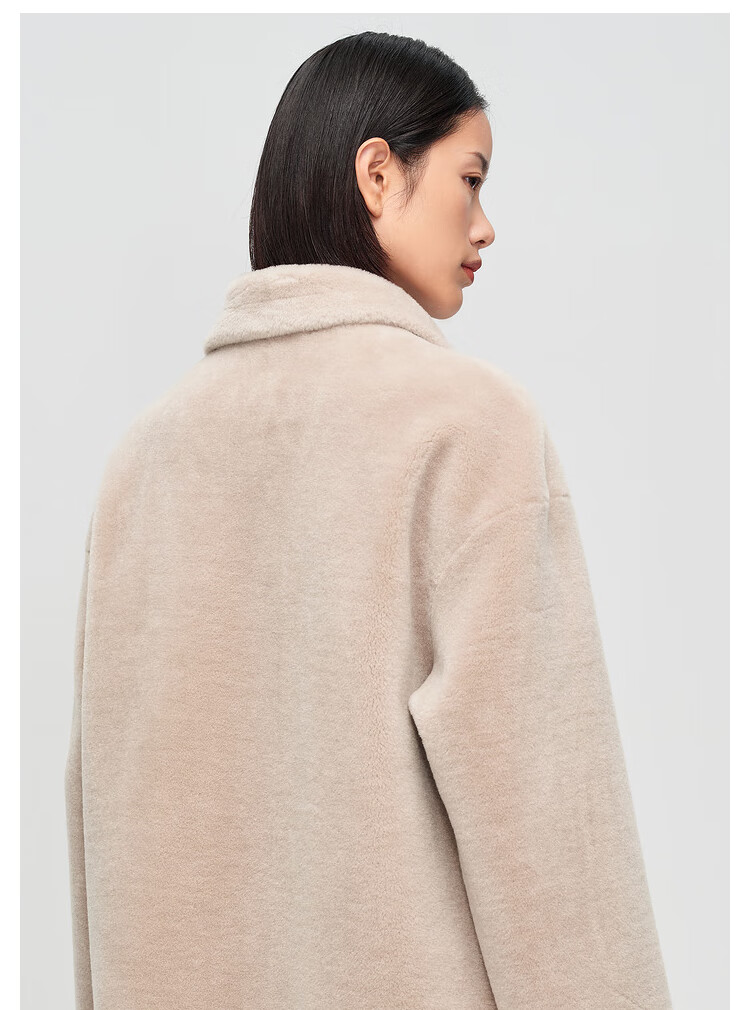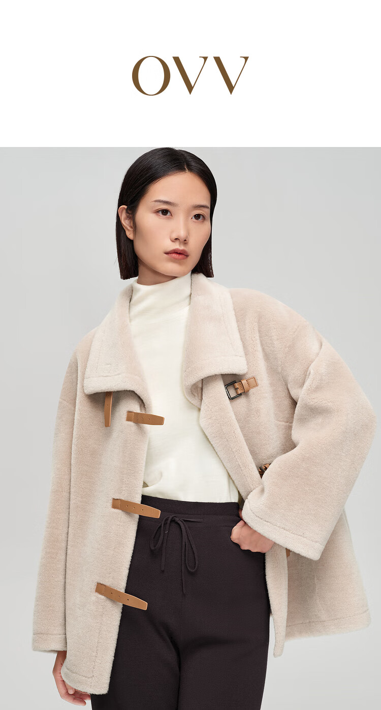 OVV秋冬热卖女装羊毛毛绒感大翻领皮袢装饰中款大衣 卡其(净色)C4 S