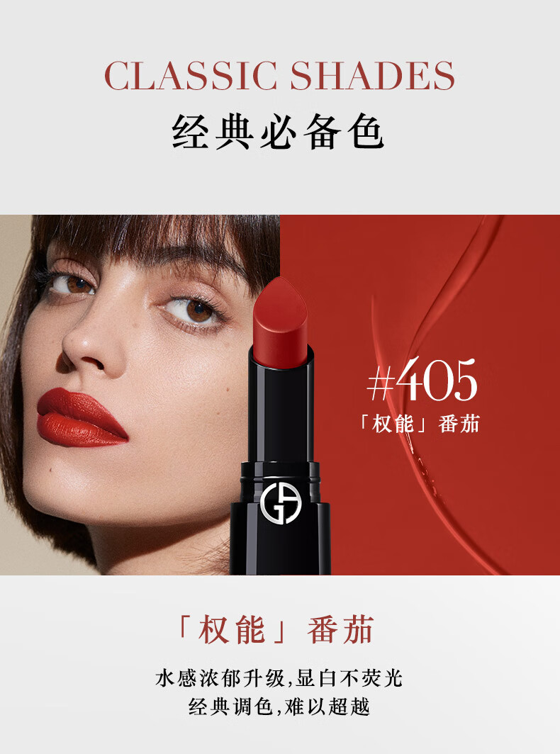 阿玛尼口红权力唇膏#405番茄红 润泽镜面素颜显白滋润润唇膏新年礼物