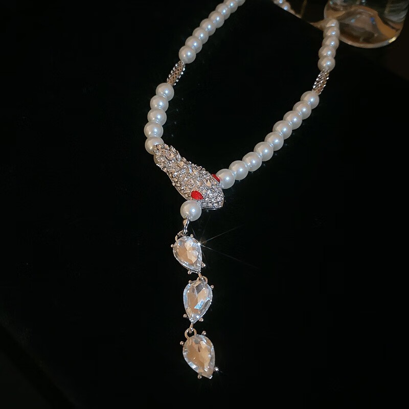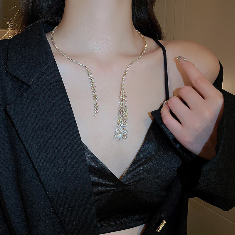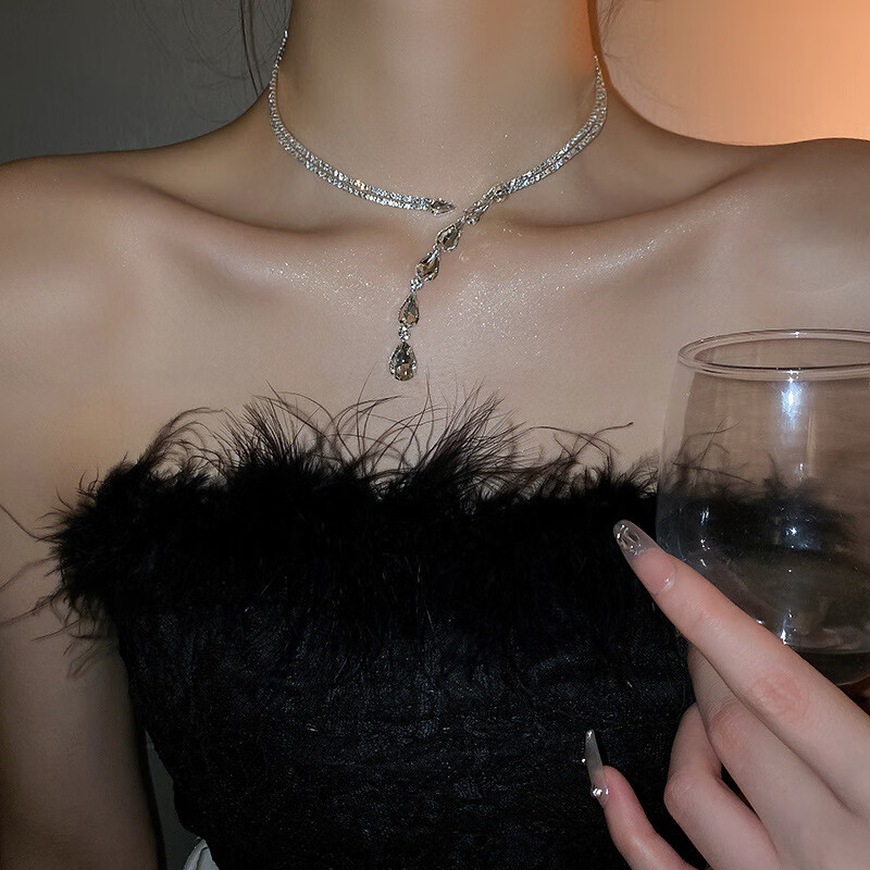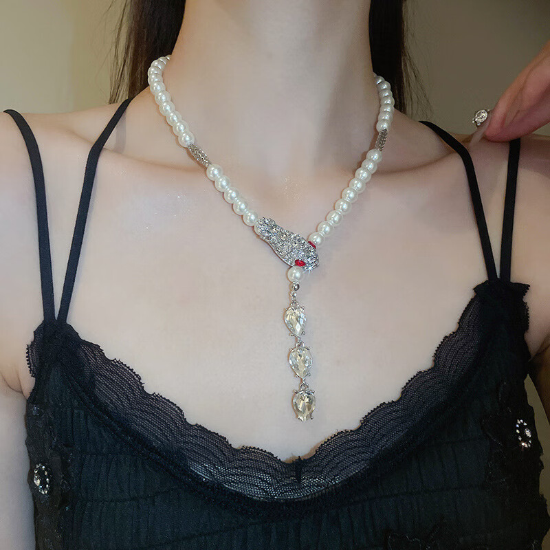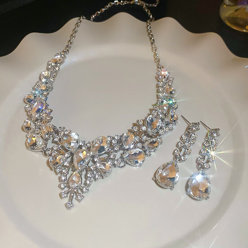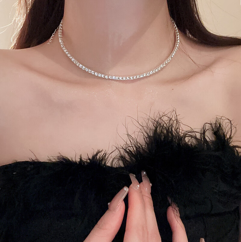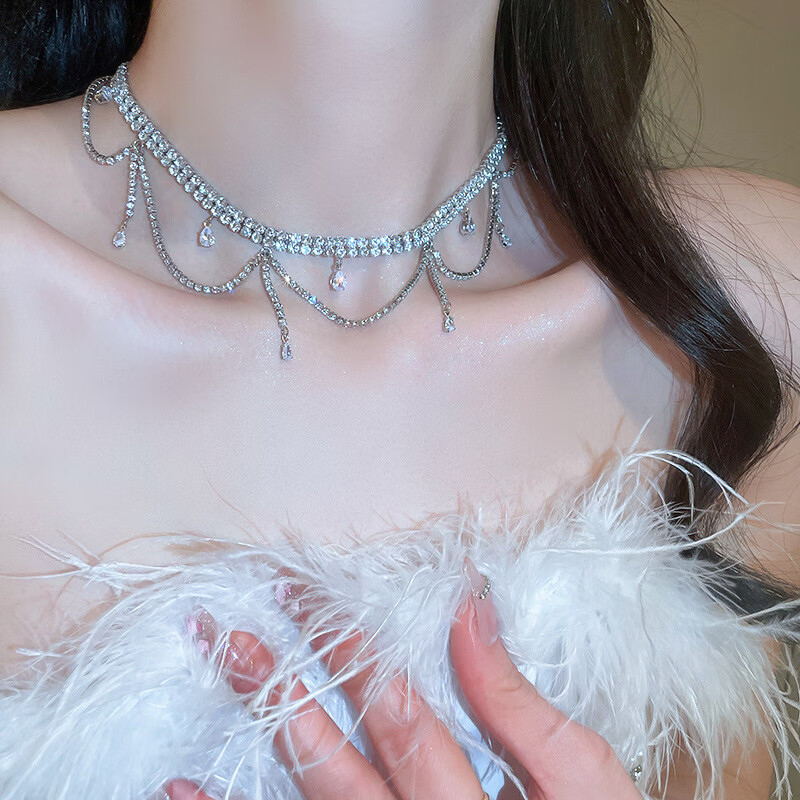 法式镶钻花朵珍珠项链时尚轻奢气质锁骨链小众送女友礼物饰品配饰 43#项链-银色(两件套)