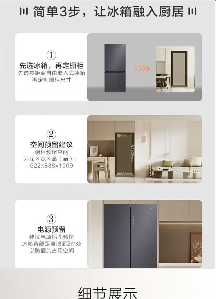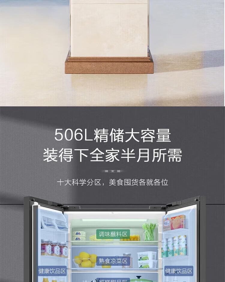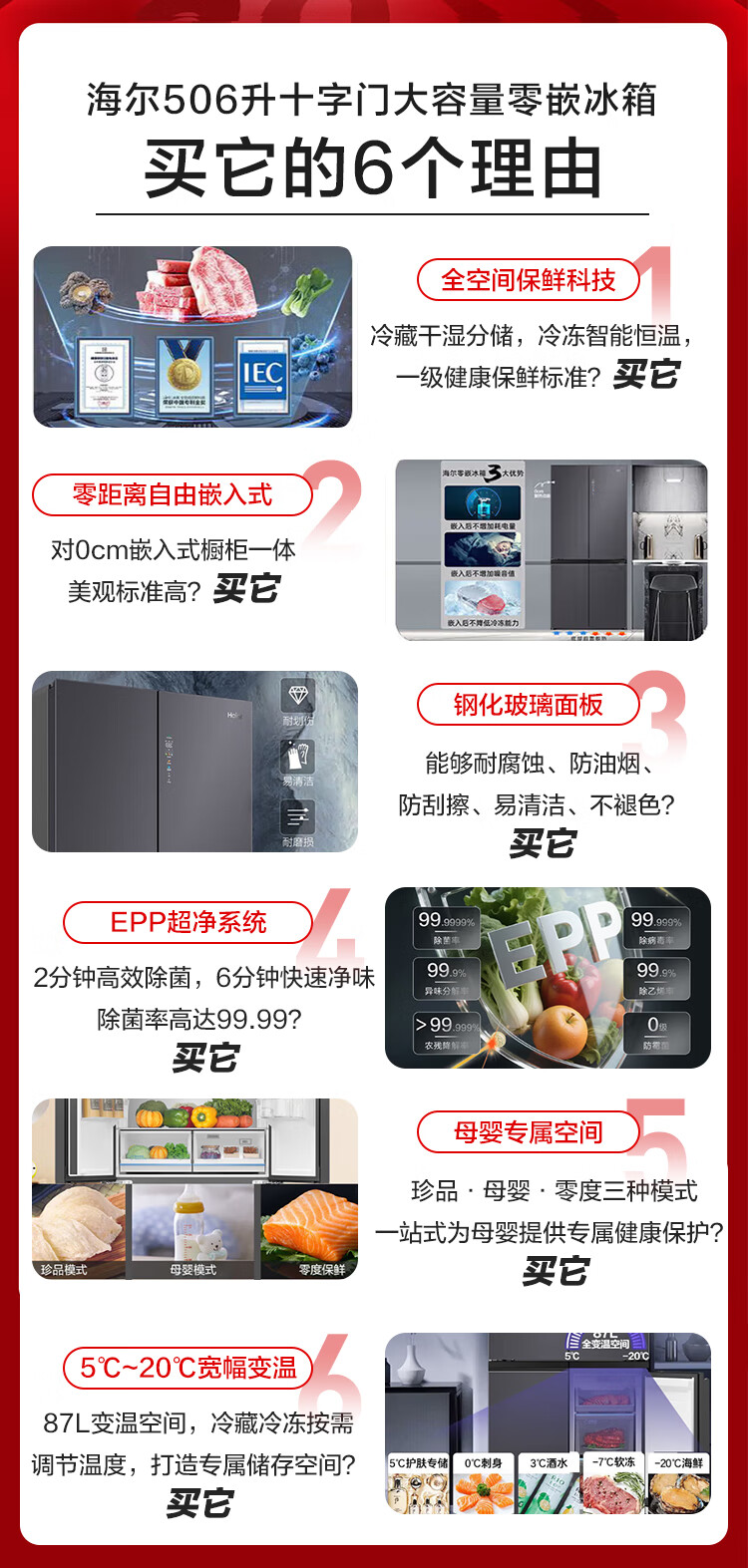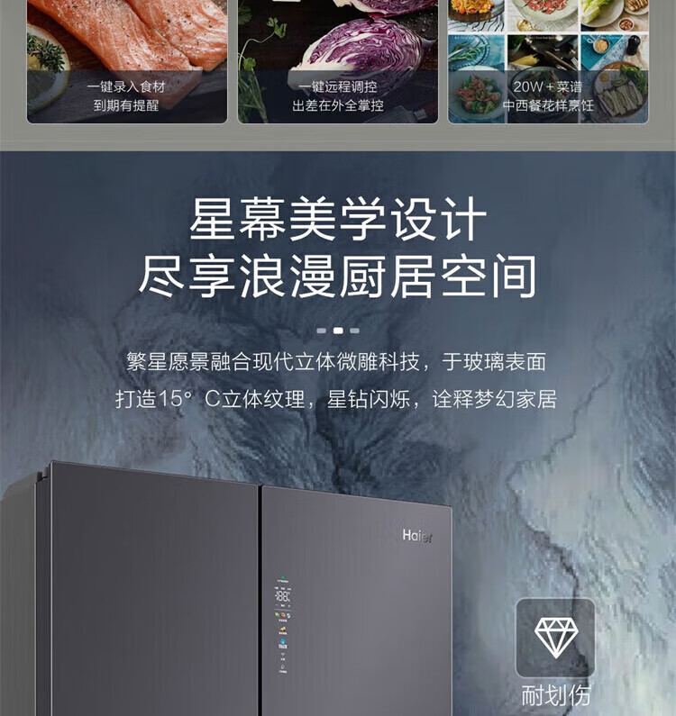海尔(Haier)【线下机皇】506L冰箱玻璃面板十字对开门四门全空间保鲜超博零嵌入一级能效EPP超净国家补贴15% 506L星韵银+全空间保鲜+零距离嵌入+EPP超净