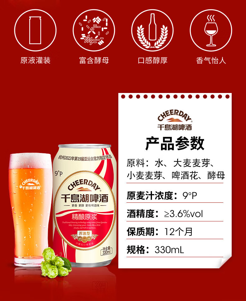 千岛湖精酿啤酒千岛湖啤酒(CHEERDAY)整箱浙江亚运会指定啤酒艾尔苏超 9度精酿原浆 1L 1罐