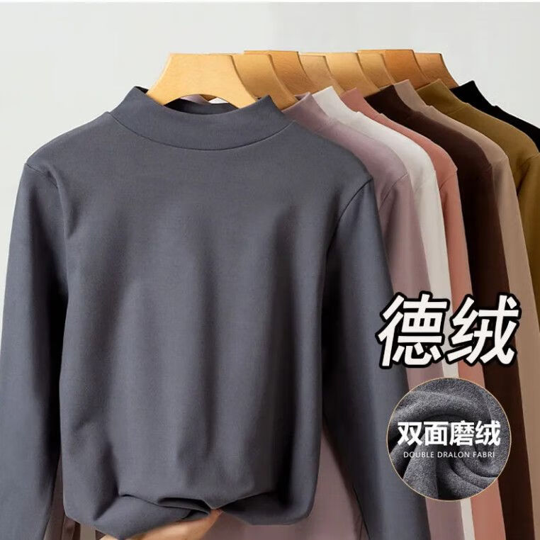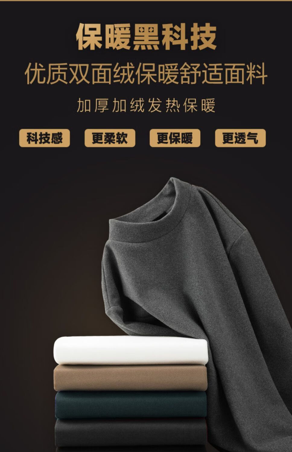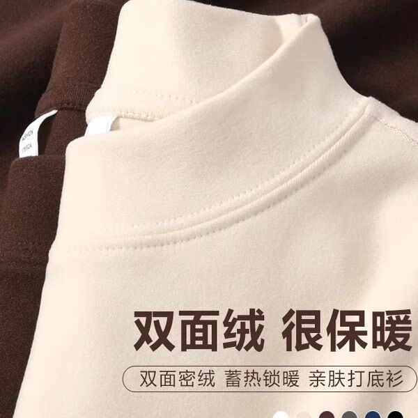 半高领双面德绒纯色打底衫男秋冬季保暖内搭墨绿色长袖卫衣男士潮 墨绿色 3XL 【建议145-160斤】