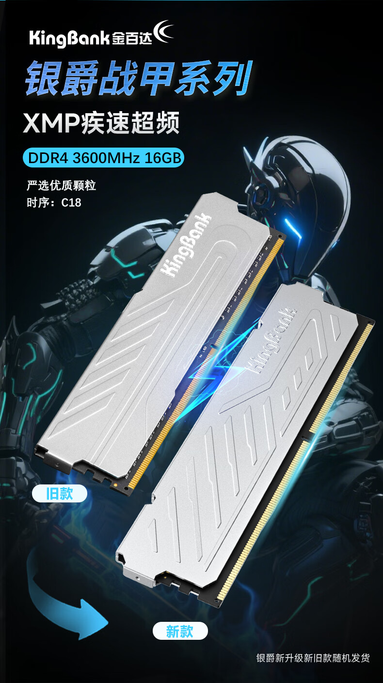金百达(KINGBANK)16GB DDR4 3600 台式机内存条 银爵 C18 适配黑神话悟空