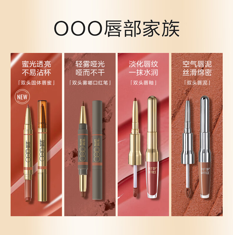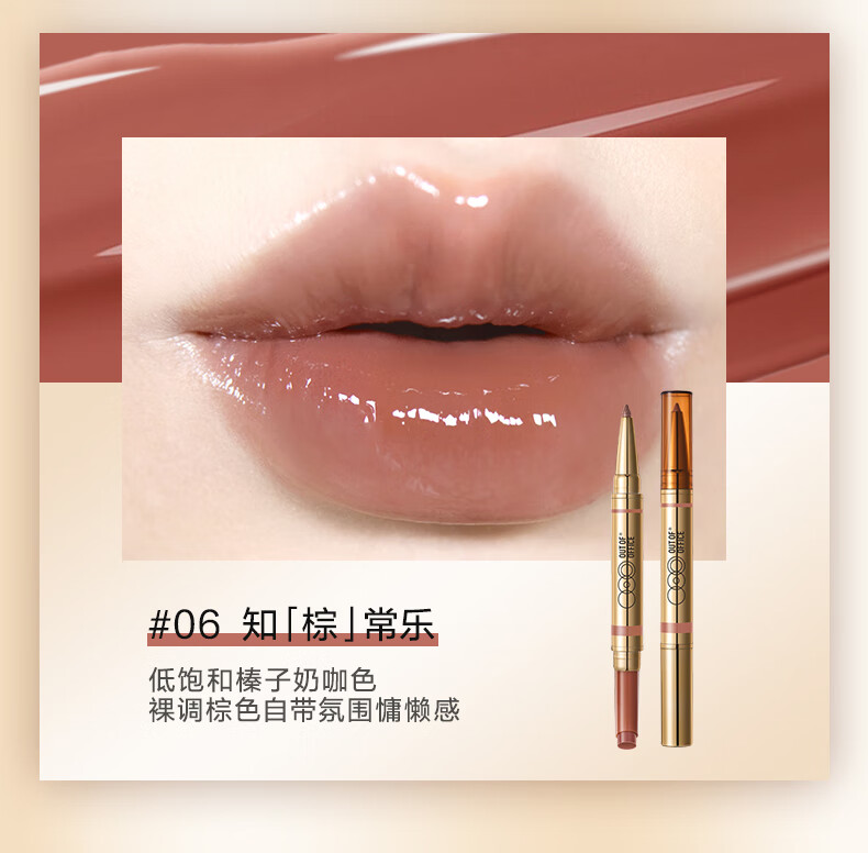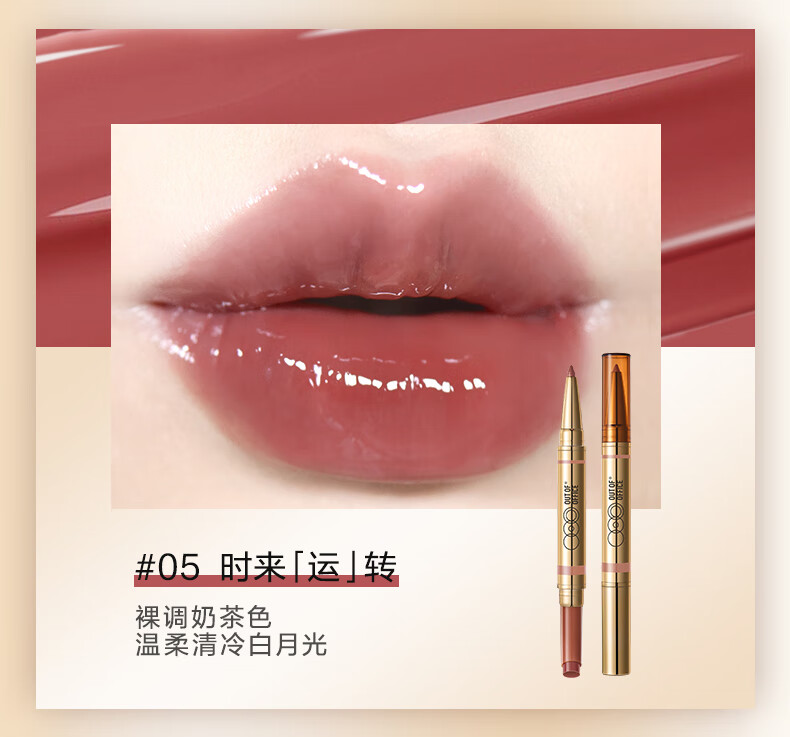OUT-OF-OFFICE双头固体唇蜜保湿口红镜面唇釉OOO唇线笔 01肉桂生「财」新年礼物