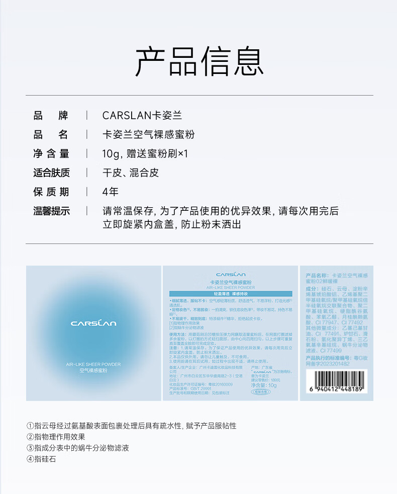 卡姿兰空气裸感蜜粉散粉定妆粉控油防水不易脱妆持久遮瑕自然定妆散粉 01透明裸(适合干皮/混合皮)