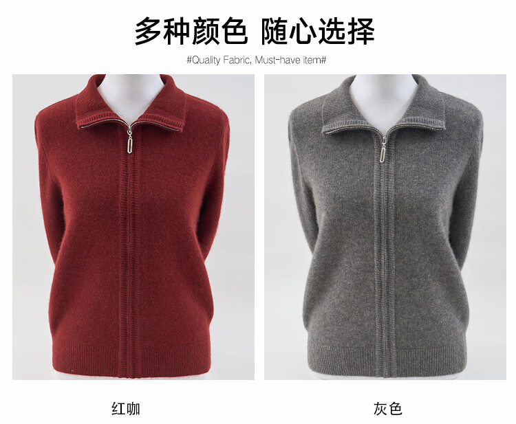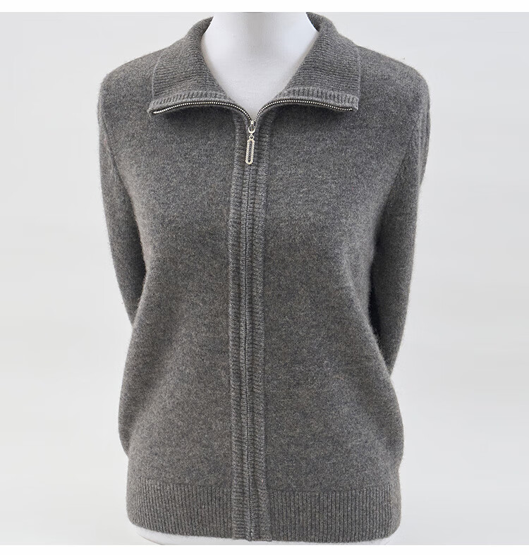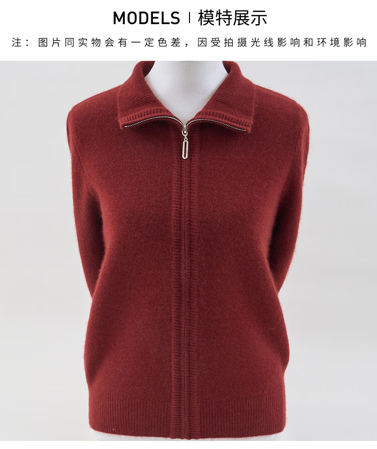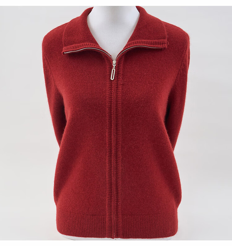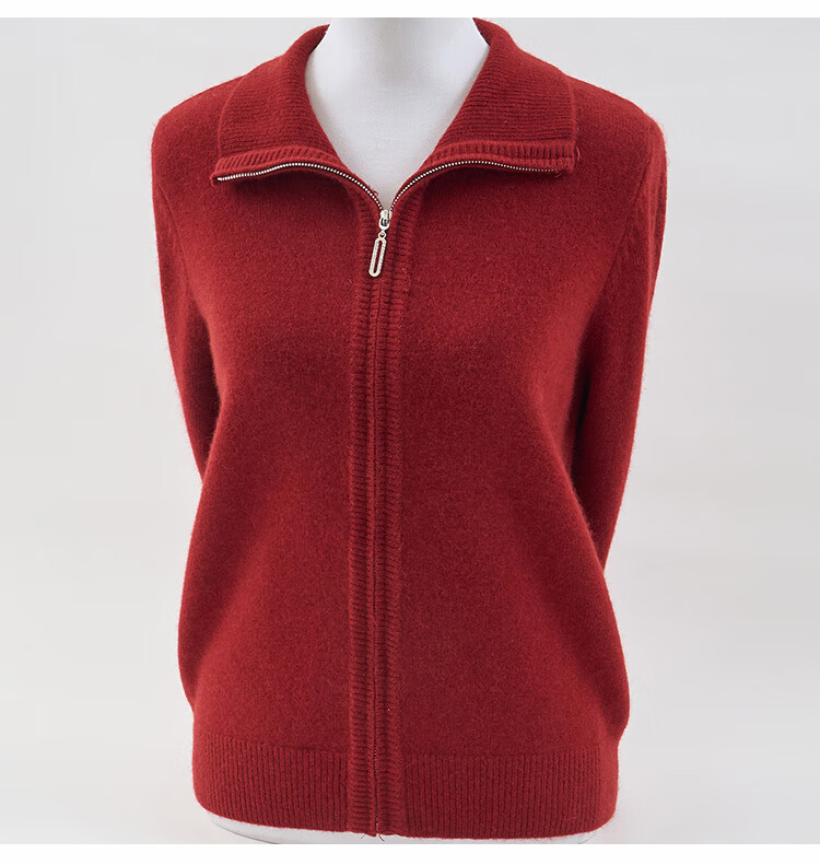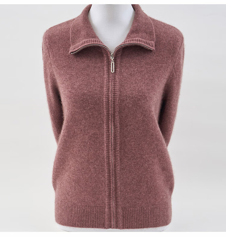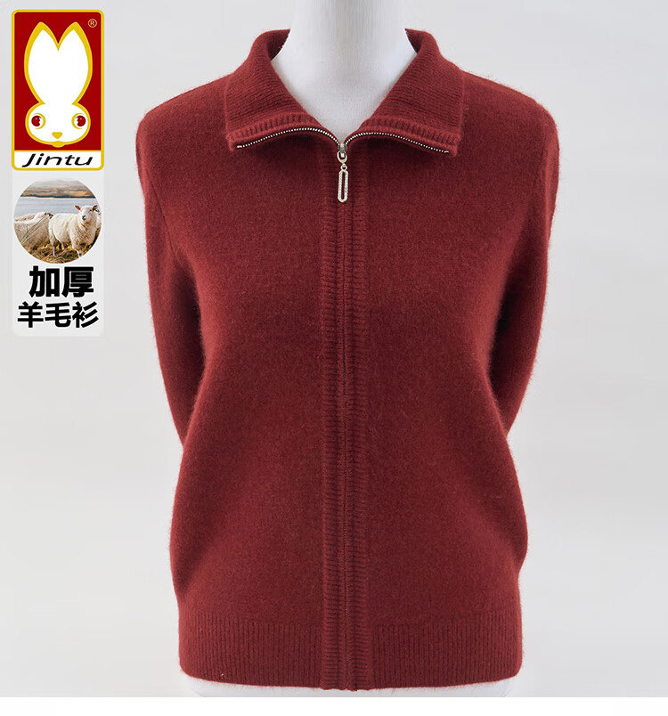 金兔品牌高档羊毛衫女2025秋冬新款加厚翻领拉链针织开衫毛衣保暖外套 豆沙色 加厚 4XL 【建议150-165斤】