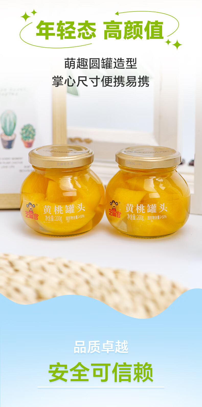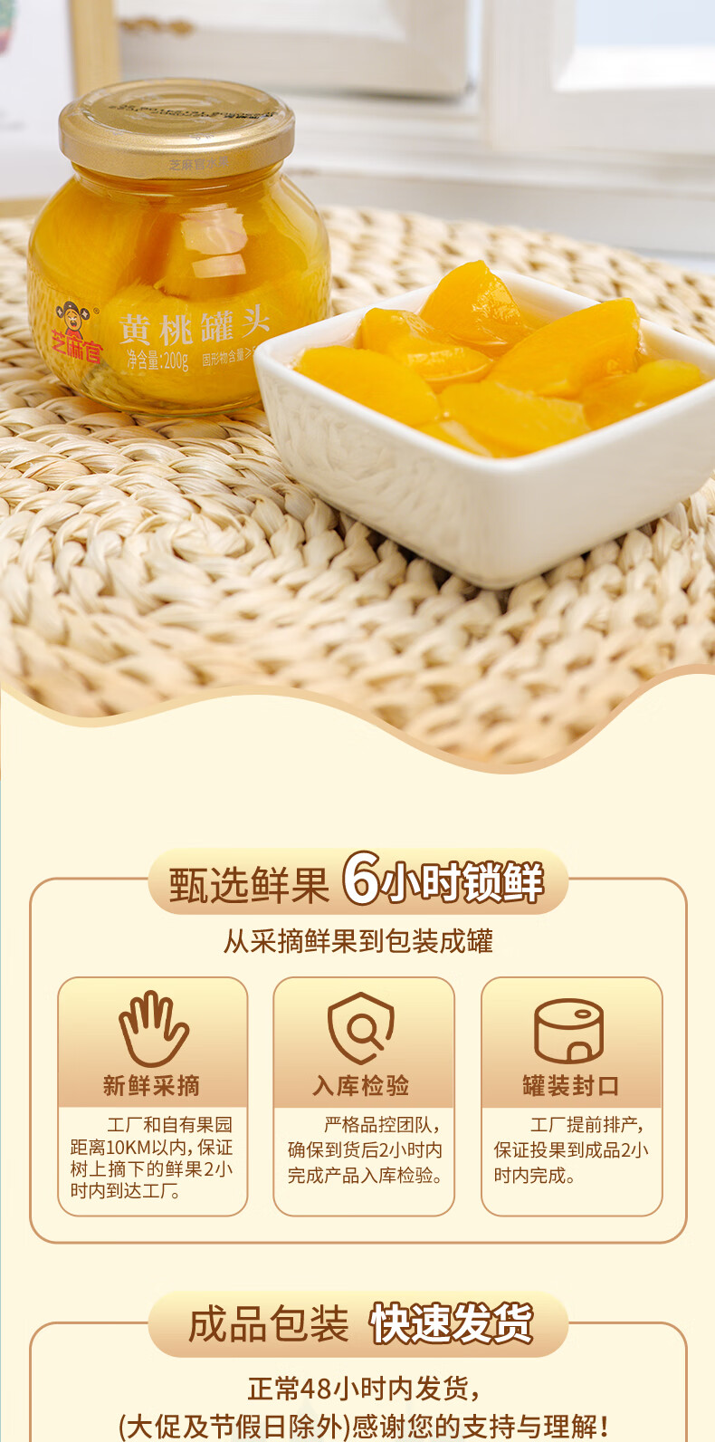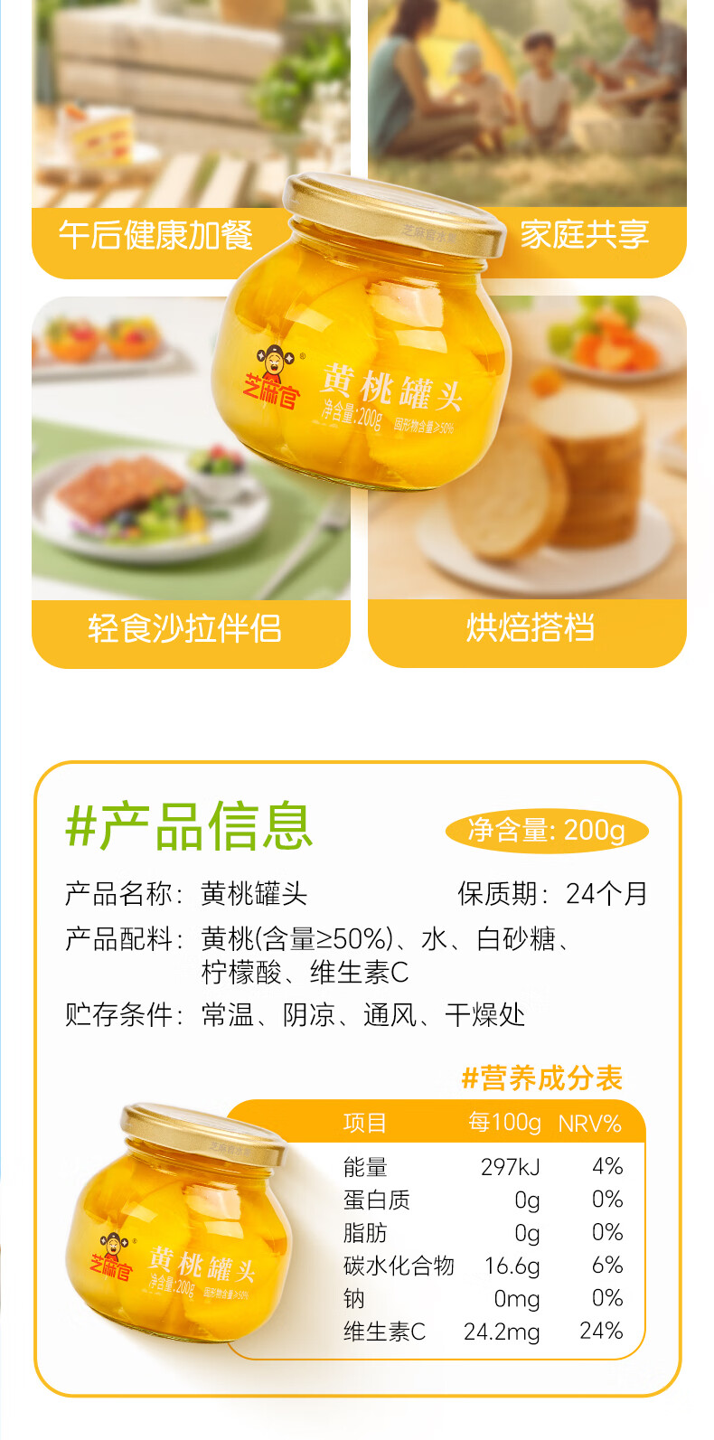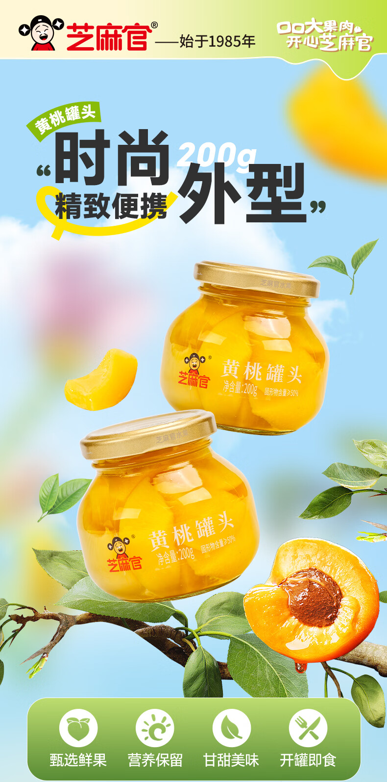 芝麻官黄桃罐头200g*4罐 水果罐头休闲零食 水果捞