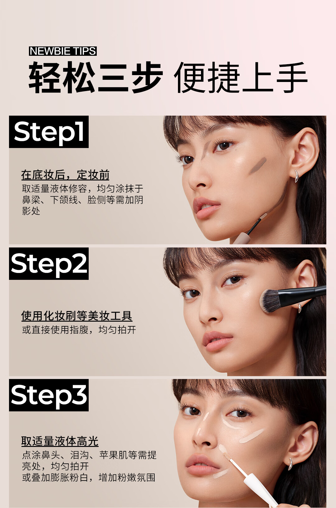 小奥汀(littleondine)液体高光修容液遮瑕膏提亮修颜棒腮红色03甜樱粉白4.5g新年礼物