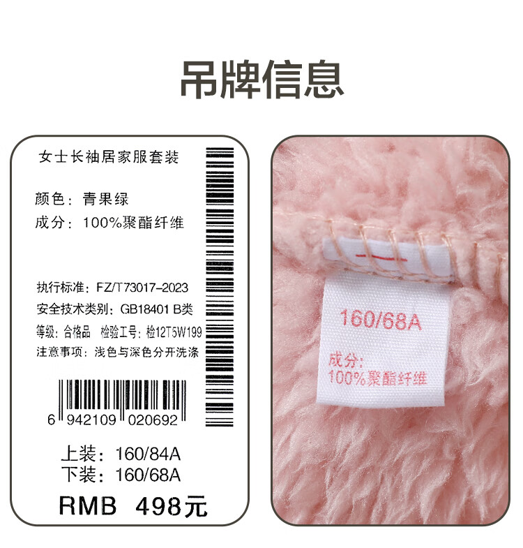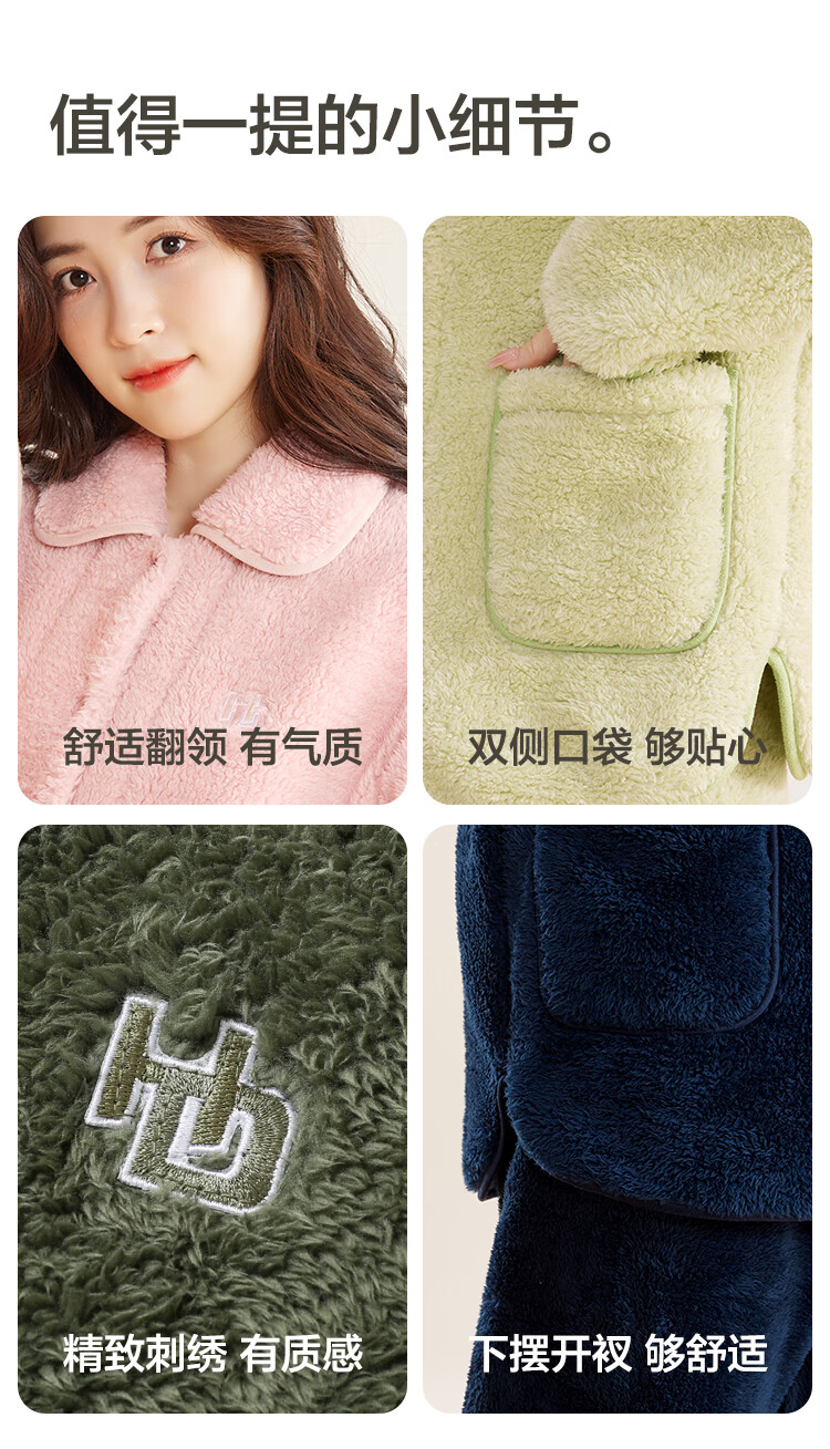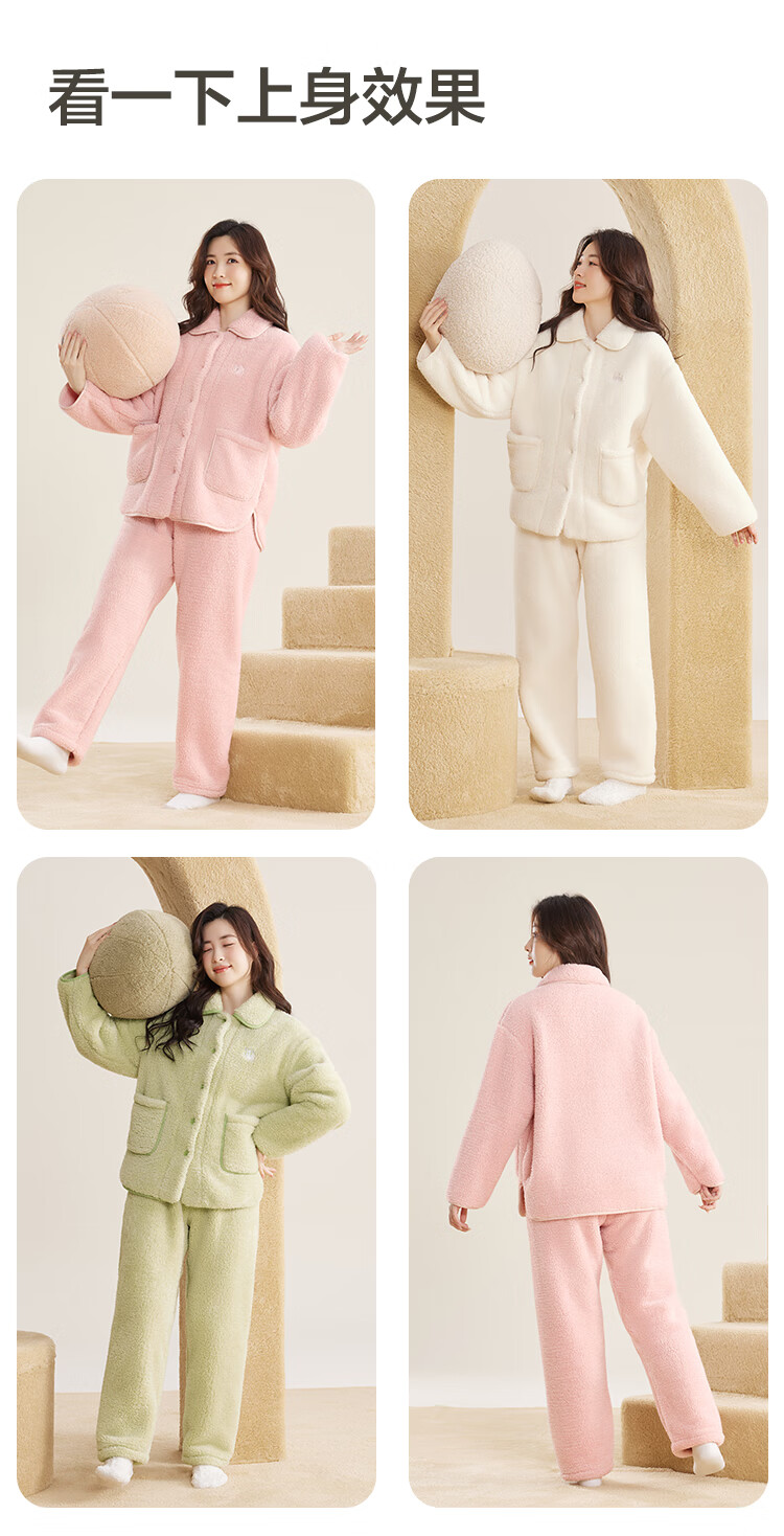 红豆居家睡衣男女士云朵绒保暖居家服加厚暖绒不臃肿可外穿居家服 女士奶昔粉 M 165/88A