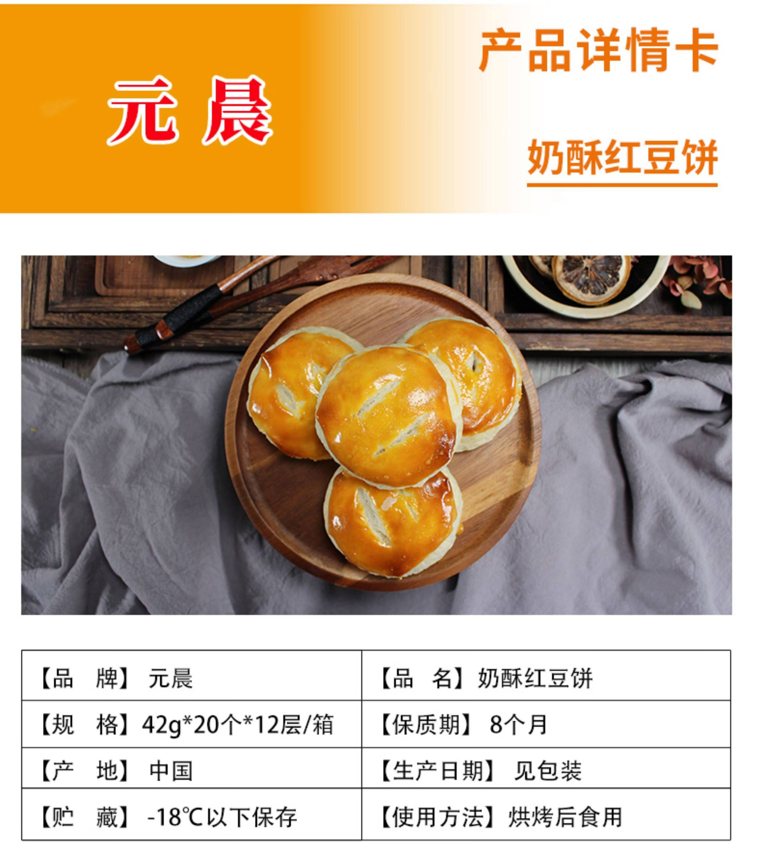 元宝元晨奶酥红豆饼42g整箱240个广式面包酥饼烘焙原料商用升级款 奶酥红豆饼240个/箱