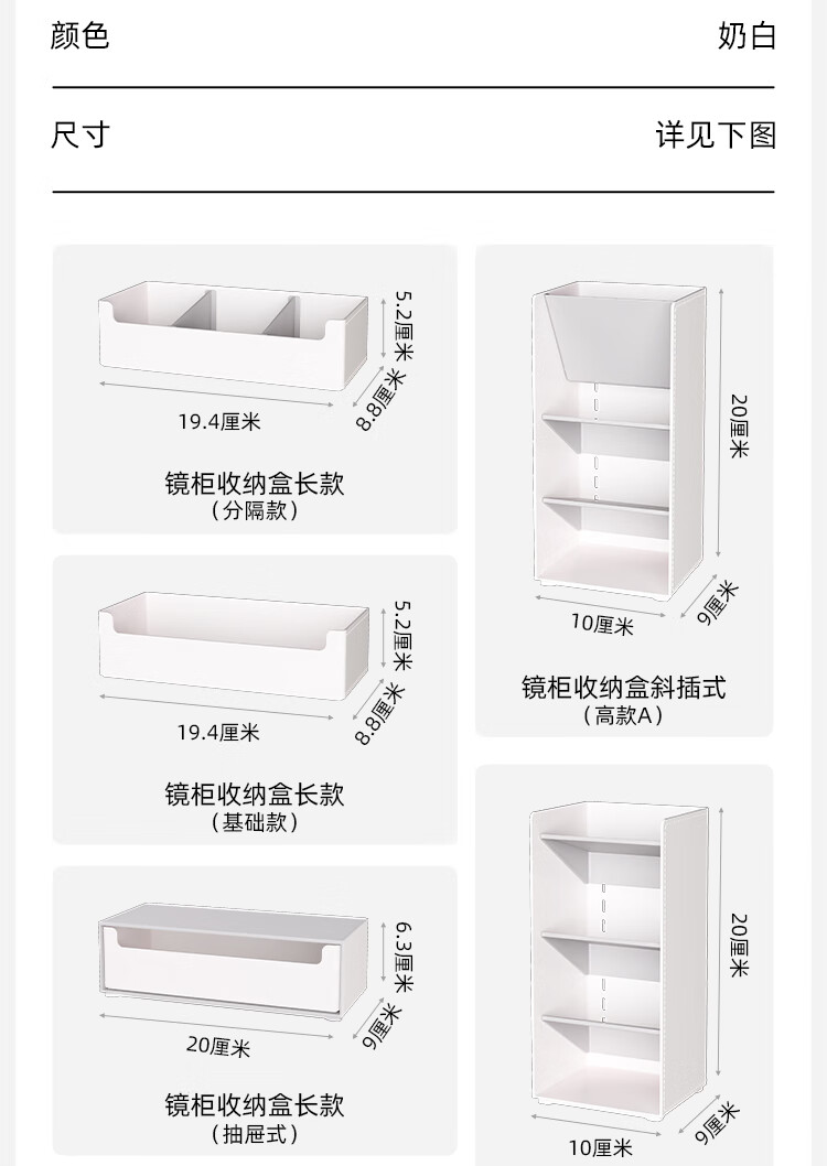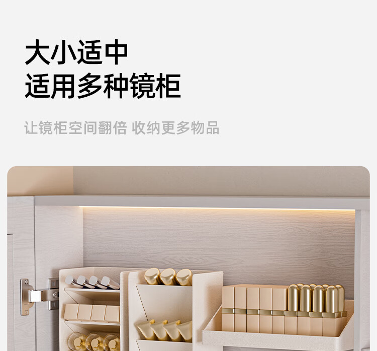 禧天龙直角镜柜收纳盒化妆品口红桌面整理盒浴室洗漱台置物架 斜插三层