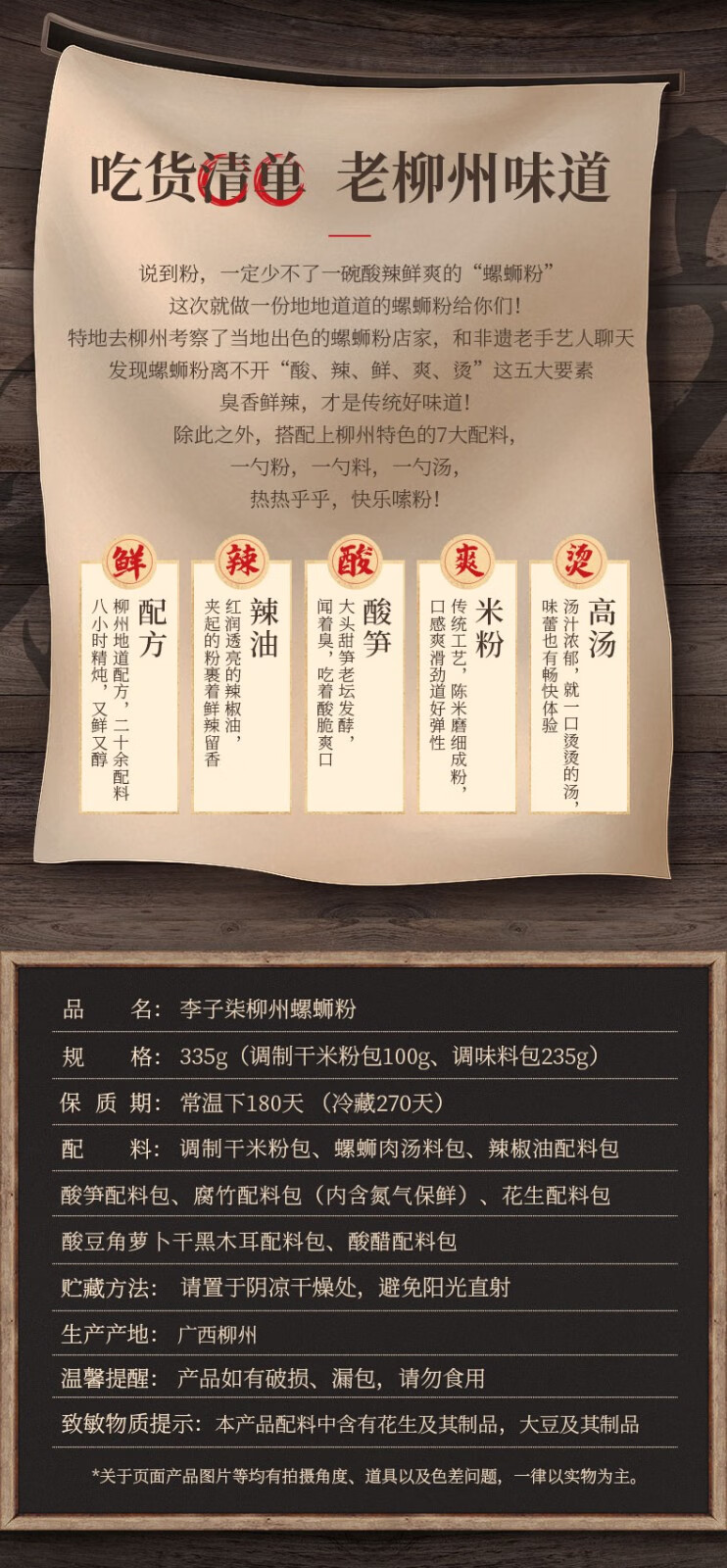 李子柒 随心包螺蛳粉 广西柳州特产 方便速食鲜辣酸爽烫米粉米线袋装 京东诚心包238g*1袋装 方便食品