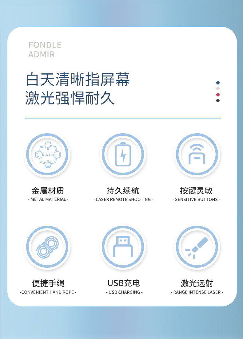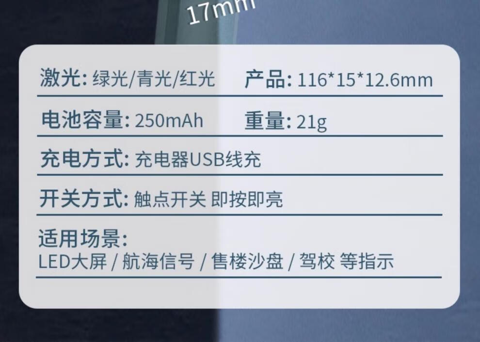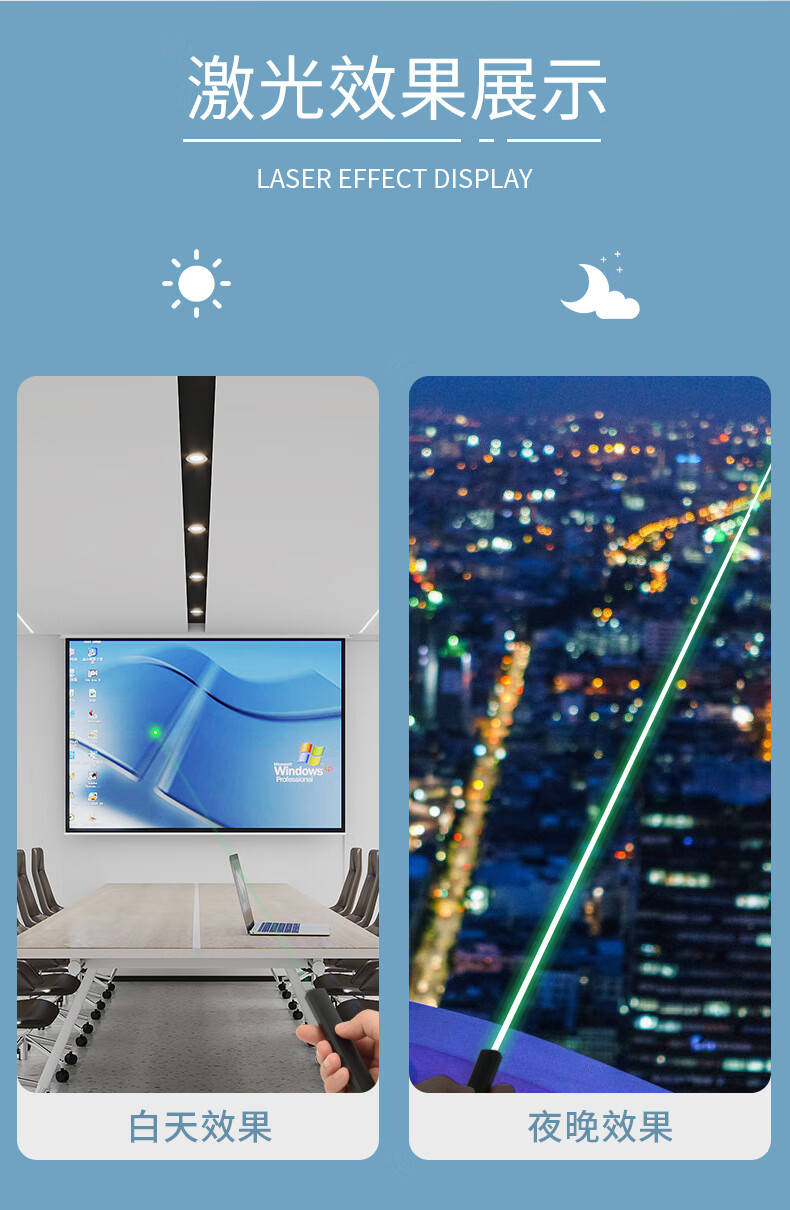 贺杨喻激光笔绿光远射青光沙盘售楼指示笔usb充电type-c逗猫教练指星 幻彩蓝外观_-红光