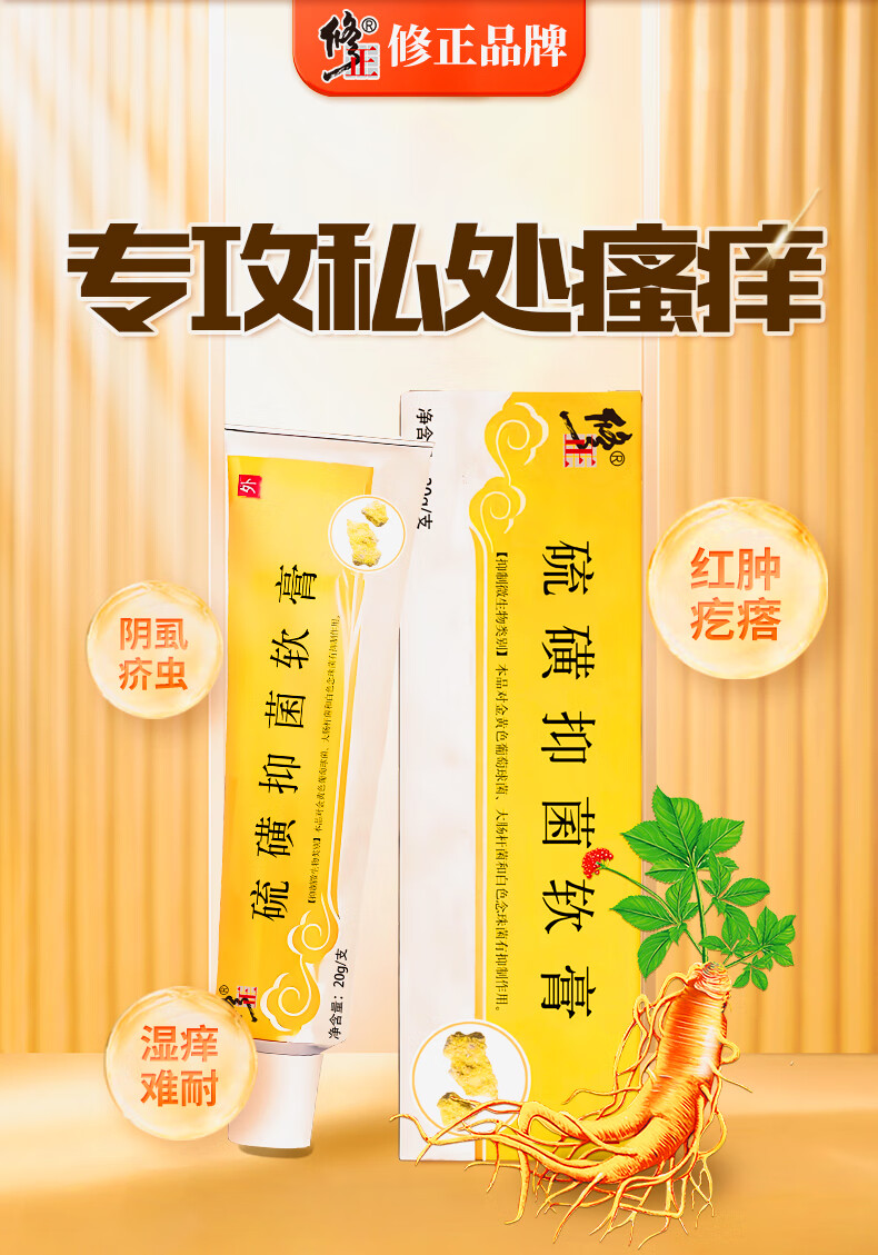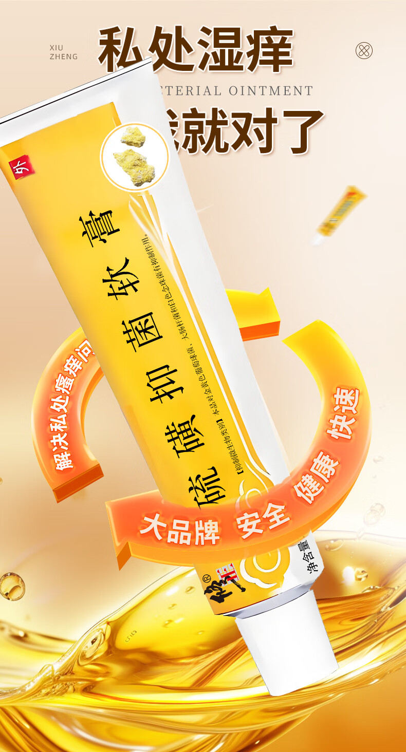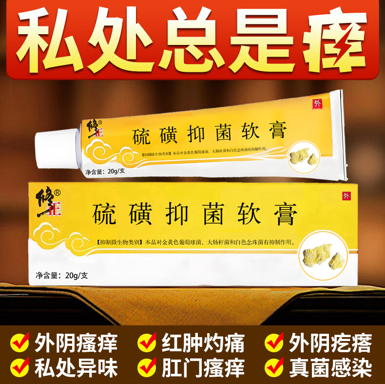 修正硫磺软膏阴虱疥虫专用抑菌膏药男女私处瘙痒止痒抑菌硫磺膏20g