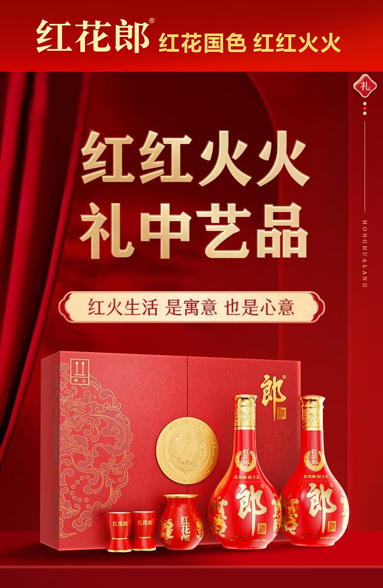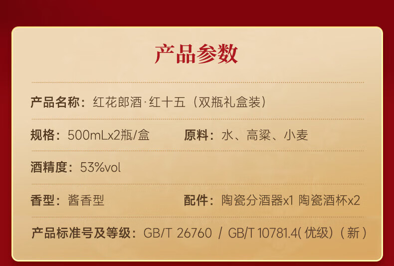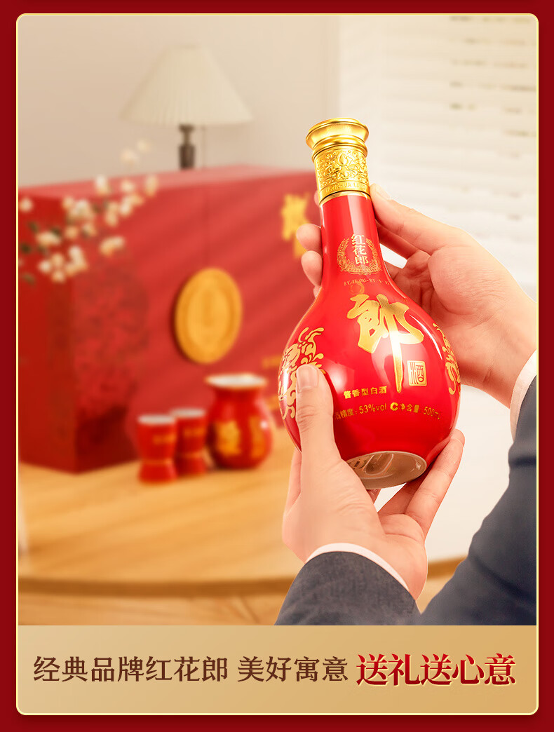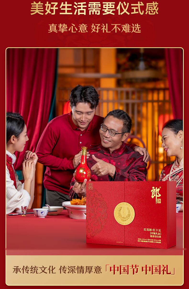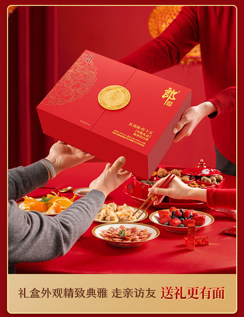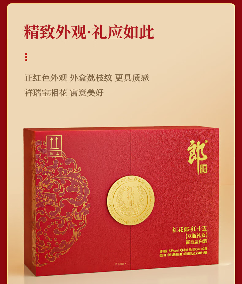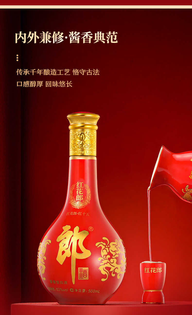 郎酒 红花郎15 酱香型白酒 53度 500ml*2瓶 礼盒装 年货礼盒