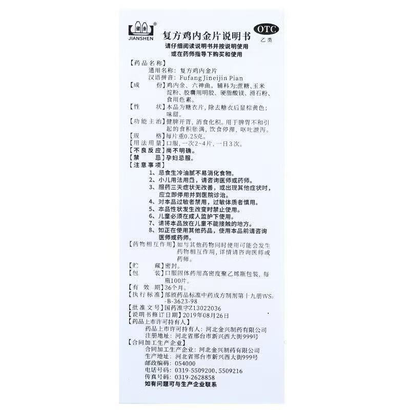 健身 复方鸡内金片0.25g*100片/瓶 健脾开胃消食化积用于脾胃不和引起的食积胀满饮食停溜呕吐泄泻消化不良