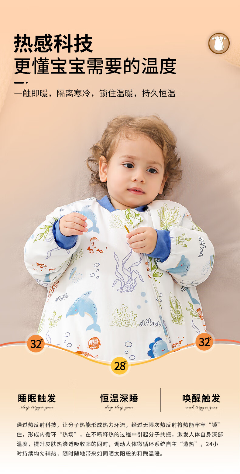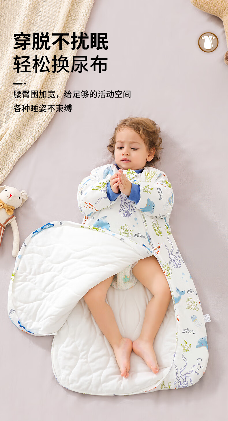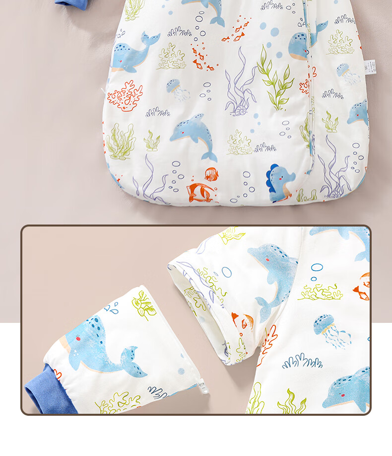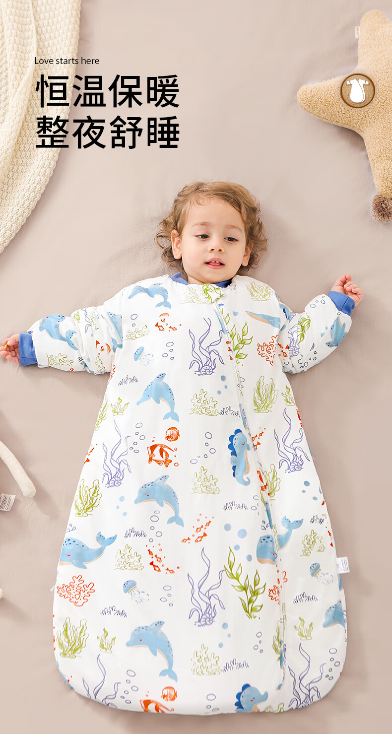 童颜婴幼儿睡袋秋冬加厚一体式宝宝防踢被恒温儿童睡衣 海洋之旅 M码