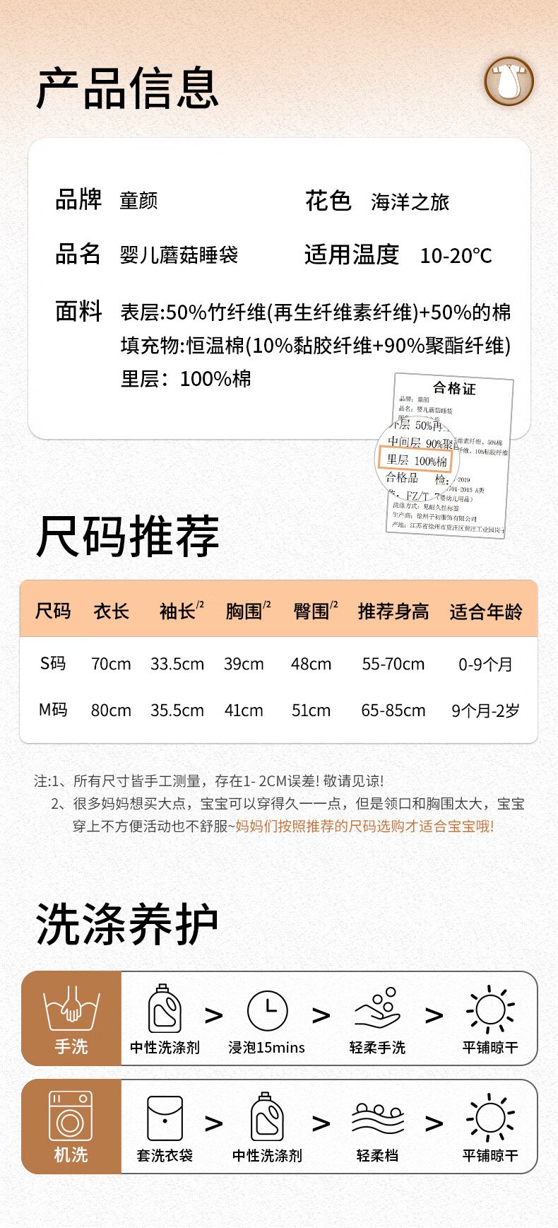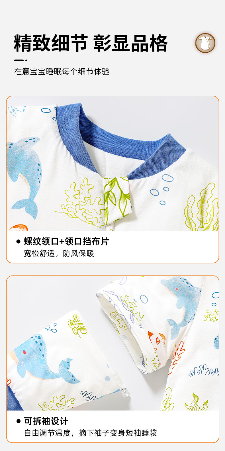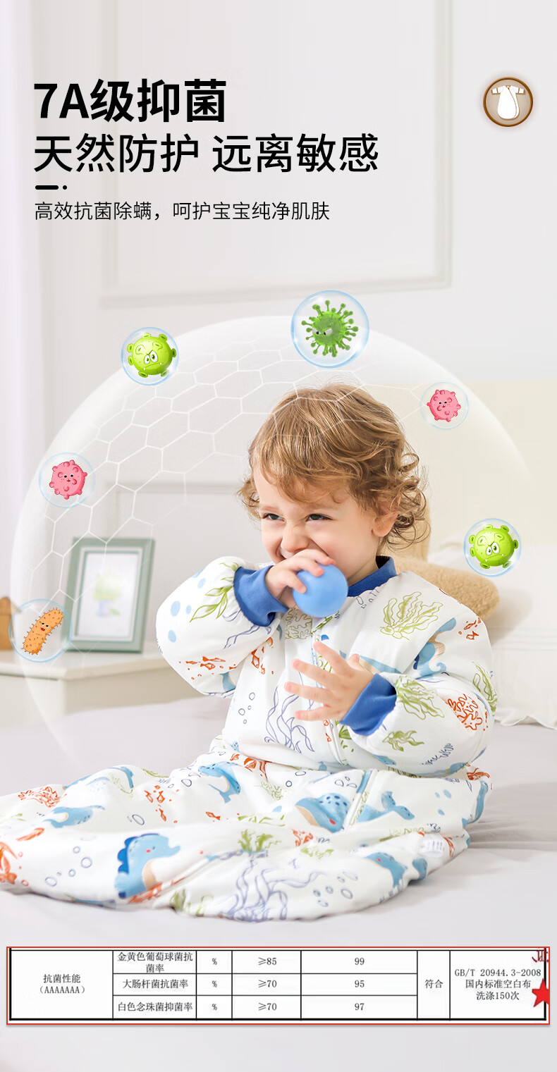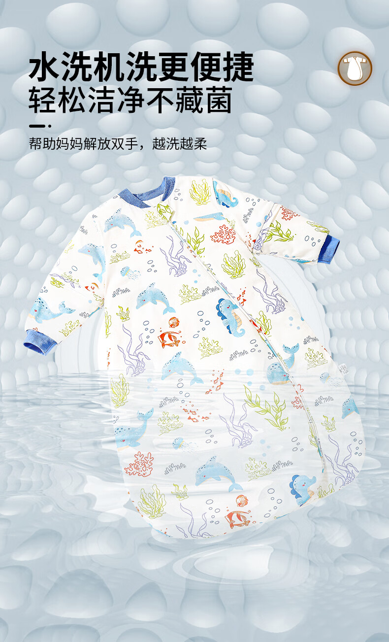 童颜婴幼儿睡袋秋冬加厚一体式宝宝防踢被恒温儿童睡衣 海洋之旅 M码