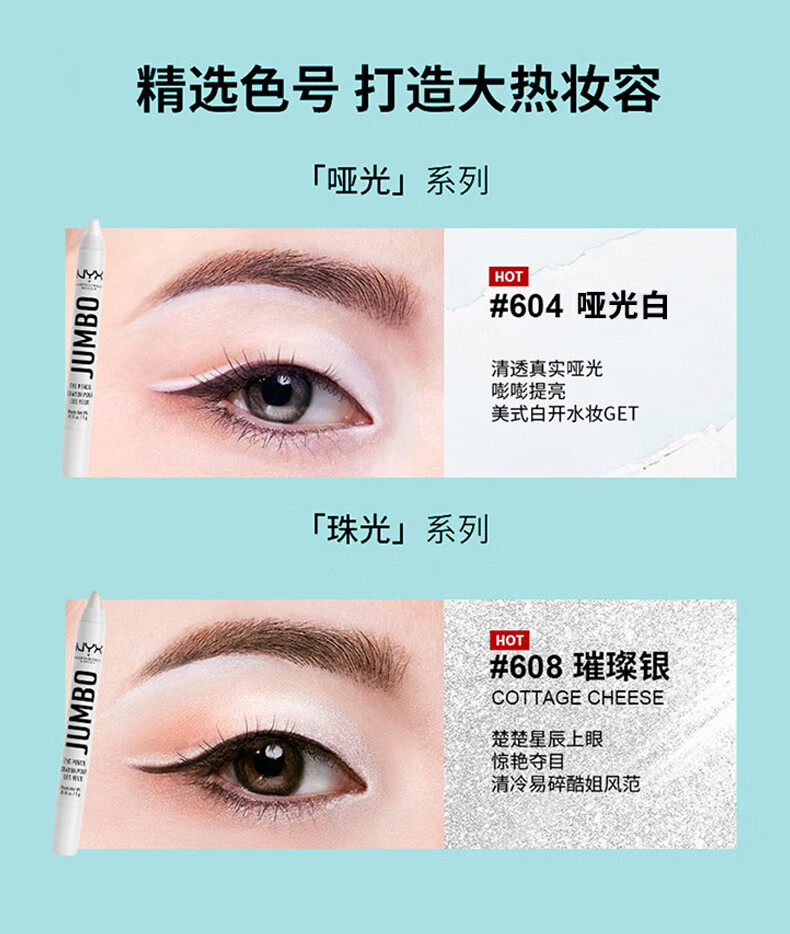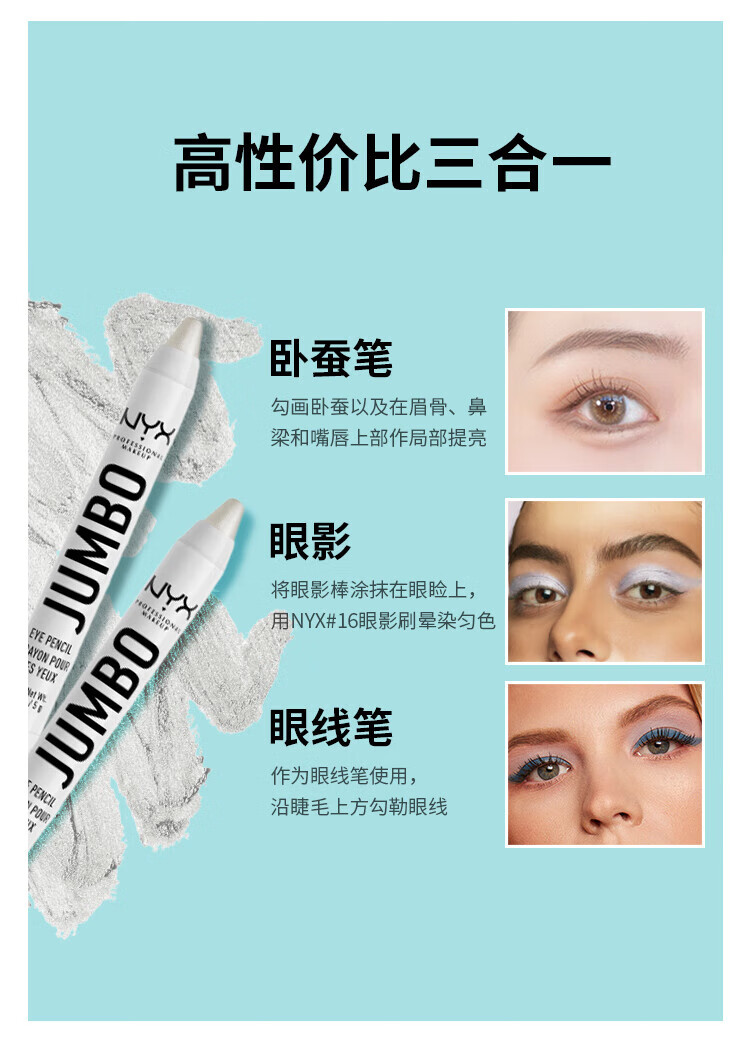 NYX眼影笔多合一眼影棒高光修容卧蚕提亮哑光白#604 5g 26年3月到期