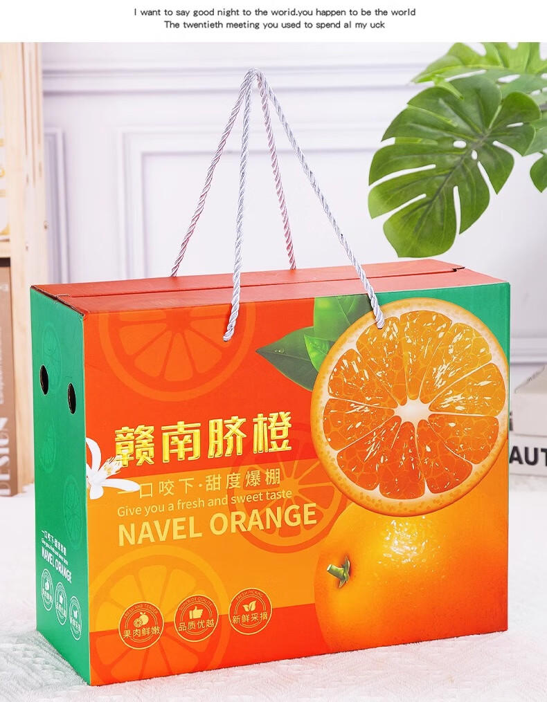 新款批发赣南脐橙包装盒礼盒空盒烫金通用橙子手提礼品盒柚子纸箱 赣南脐橙36号 10个空盒