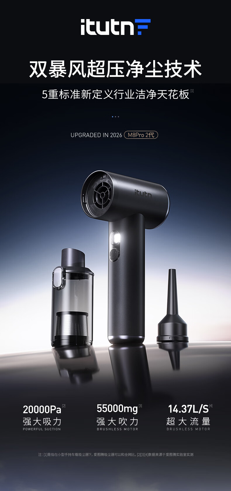 爱图腾itutn车载吸尘器大吸力无线汽车用手持吸尘器车内家用迷你随手吸吹一体桌面窗户除尘公司年会礼品
