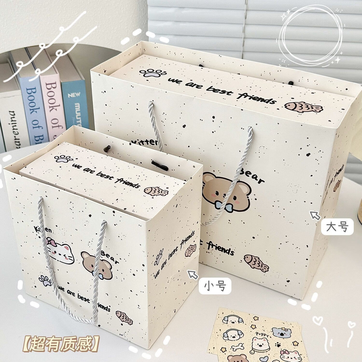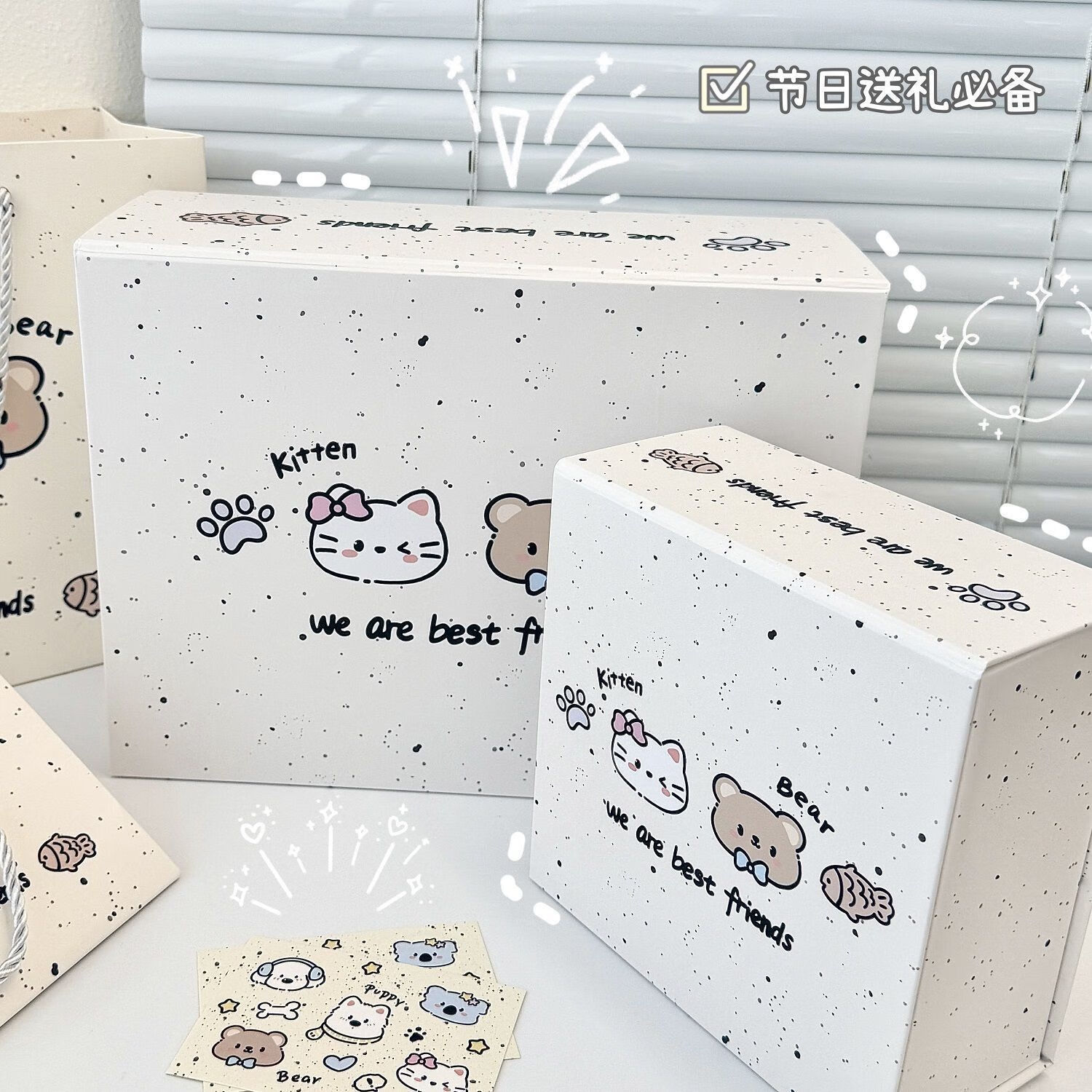 可爱泼墨小猫礼物磁吸包装盒卡通生日礼物收纳盒新年礼盒空盒礼品 原创设计,磁吸礼盒 小号手提袋+小号磁吸盒+拉菲草1包