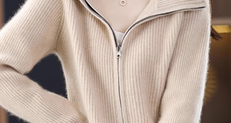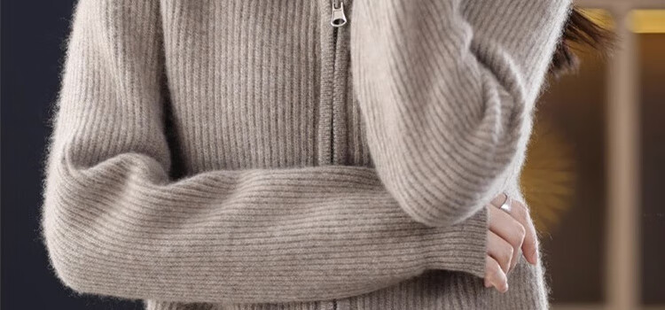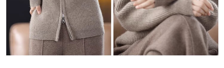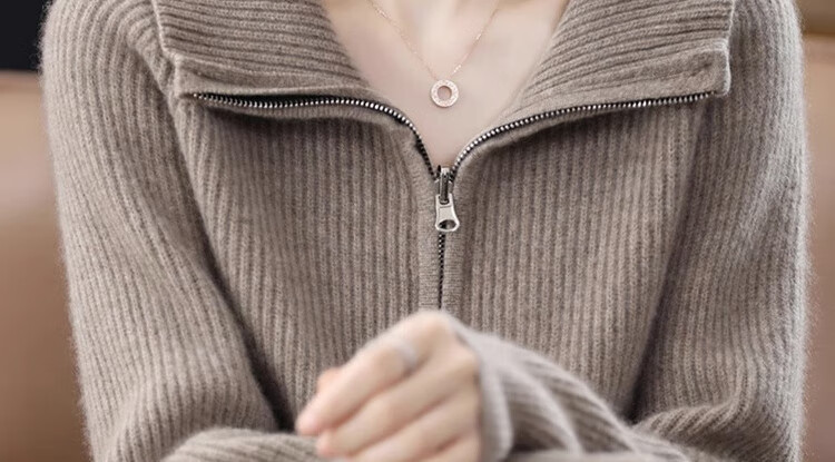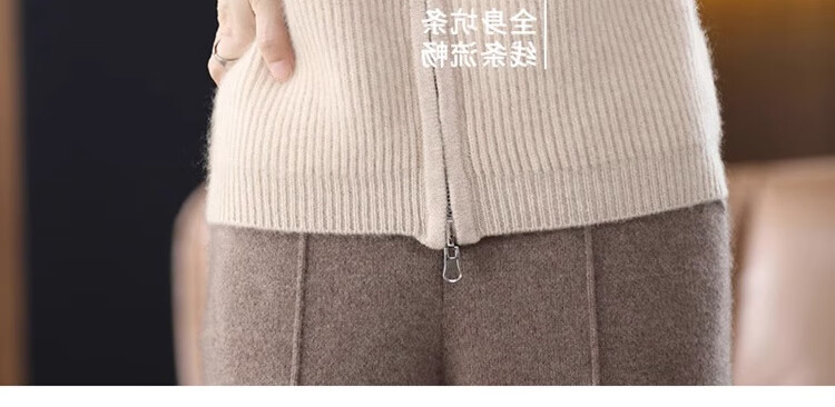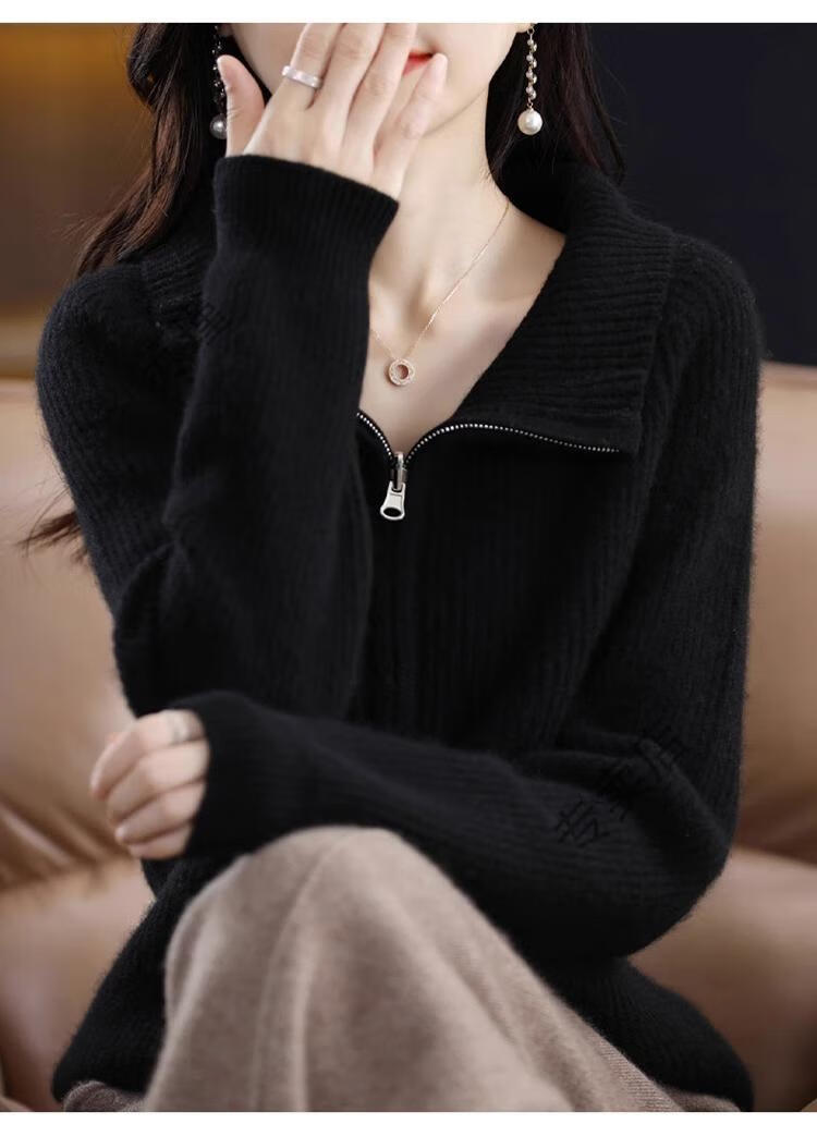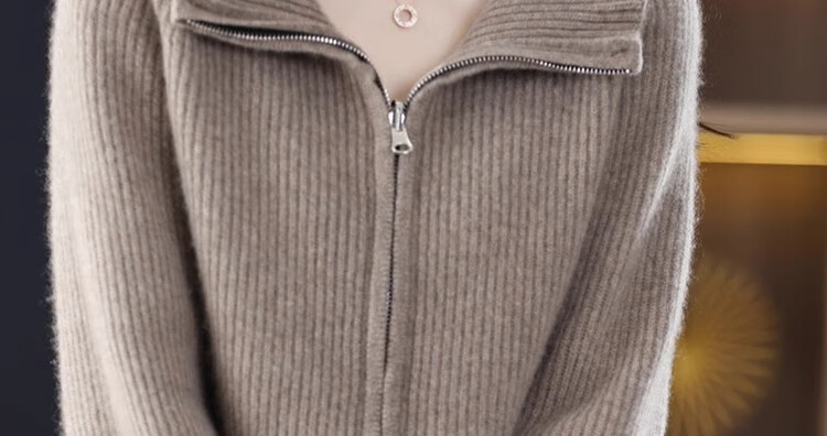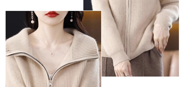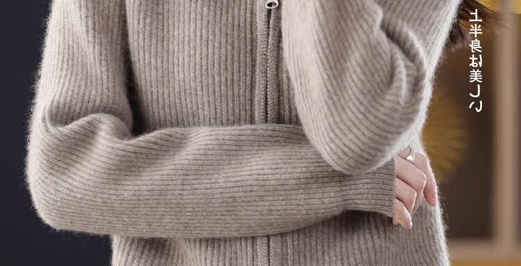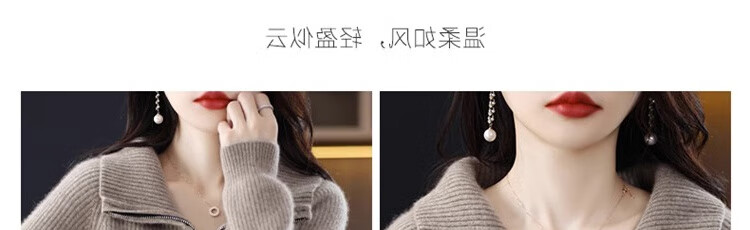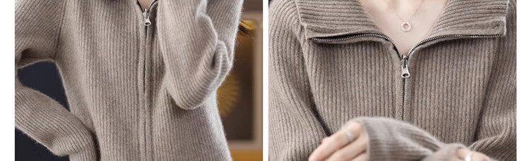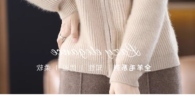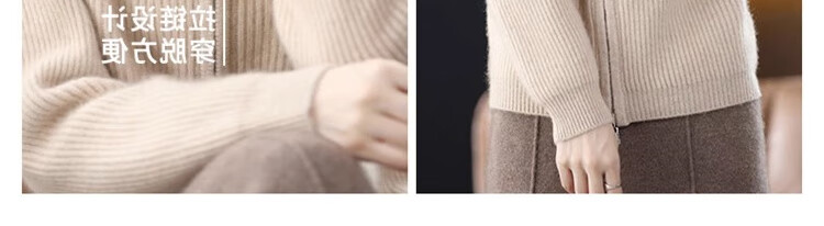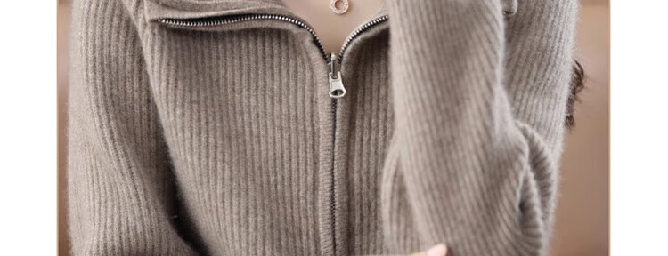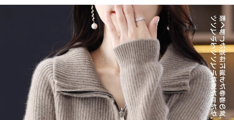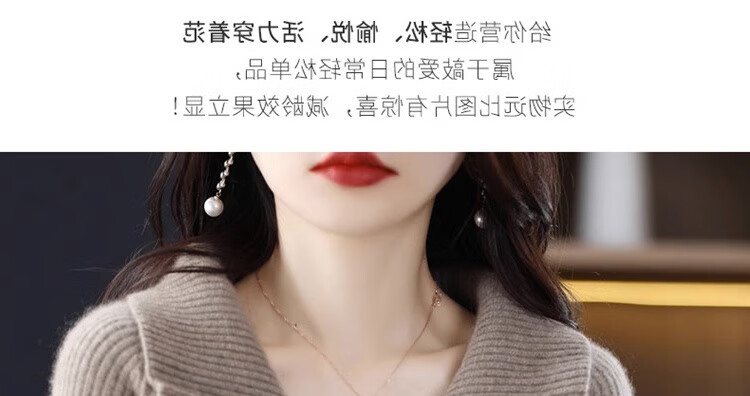 罗蒙(ROMON)翻领羊毛绒开衫女秋冬新款韩版宽松大码百搭羊毛衫针织毛衣外套 100%纯羊毛-驼色-女装十大品牌 S 80-95斤