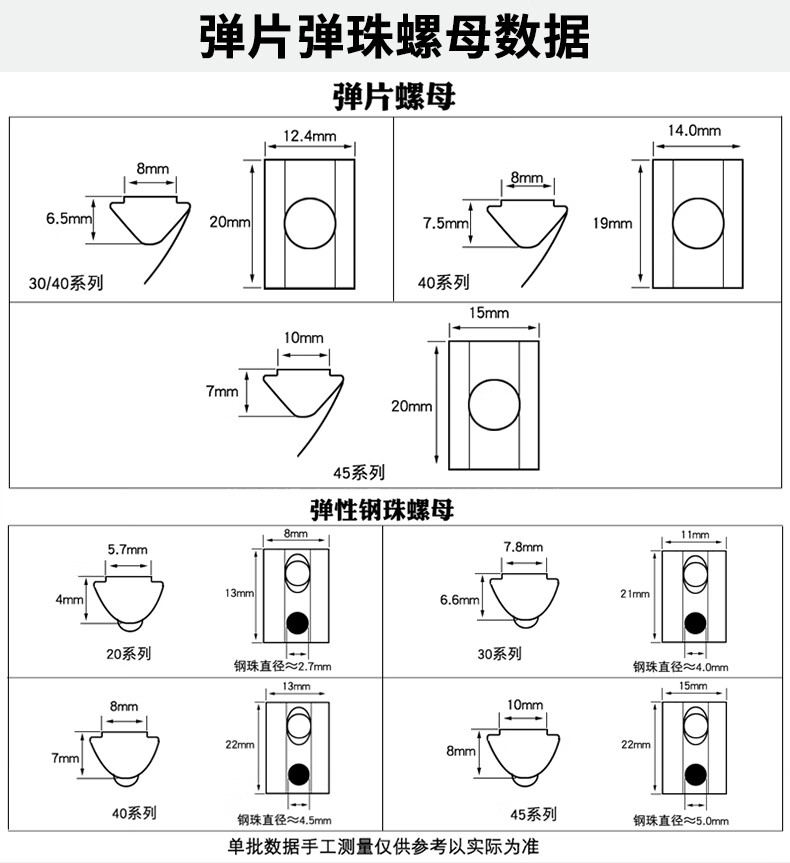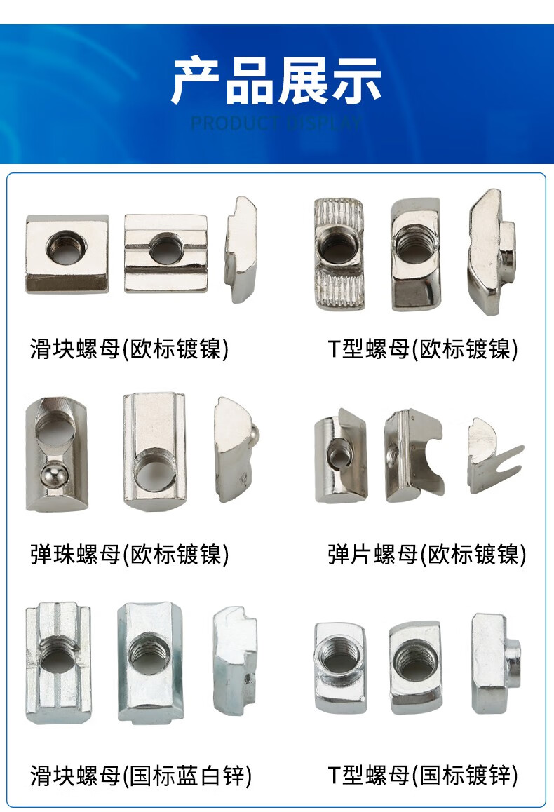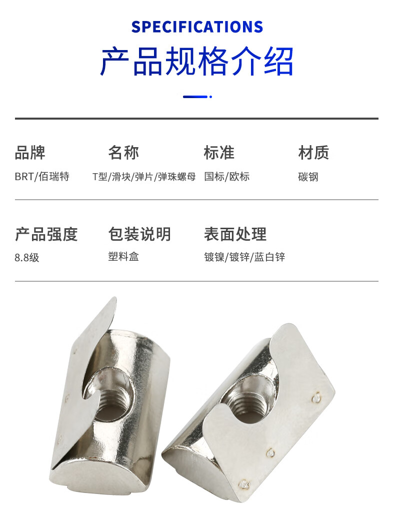 铝型材配件T型螺母滑块螺帽 弹性弹片钢珠螺母半圆弹簧螺丝帽后装卡式螺母 弹片螺母-40型-M8【2粒】
