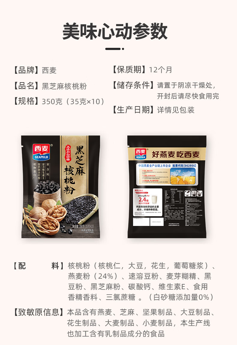 西麦黑芝麻核桃粉350g 燕麦片黑芝麻糊营养早餐五谷杂粮粉独立包装