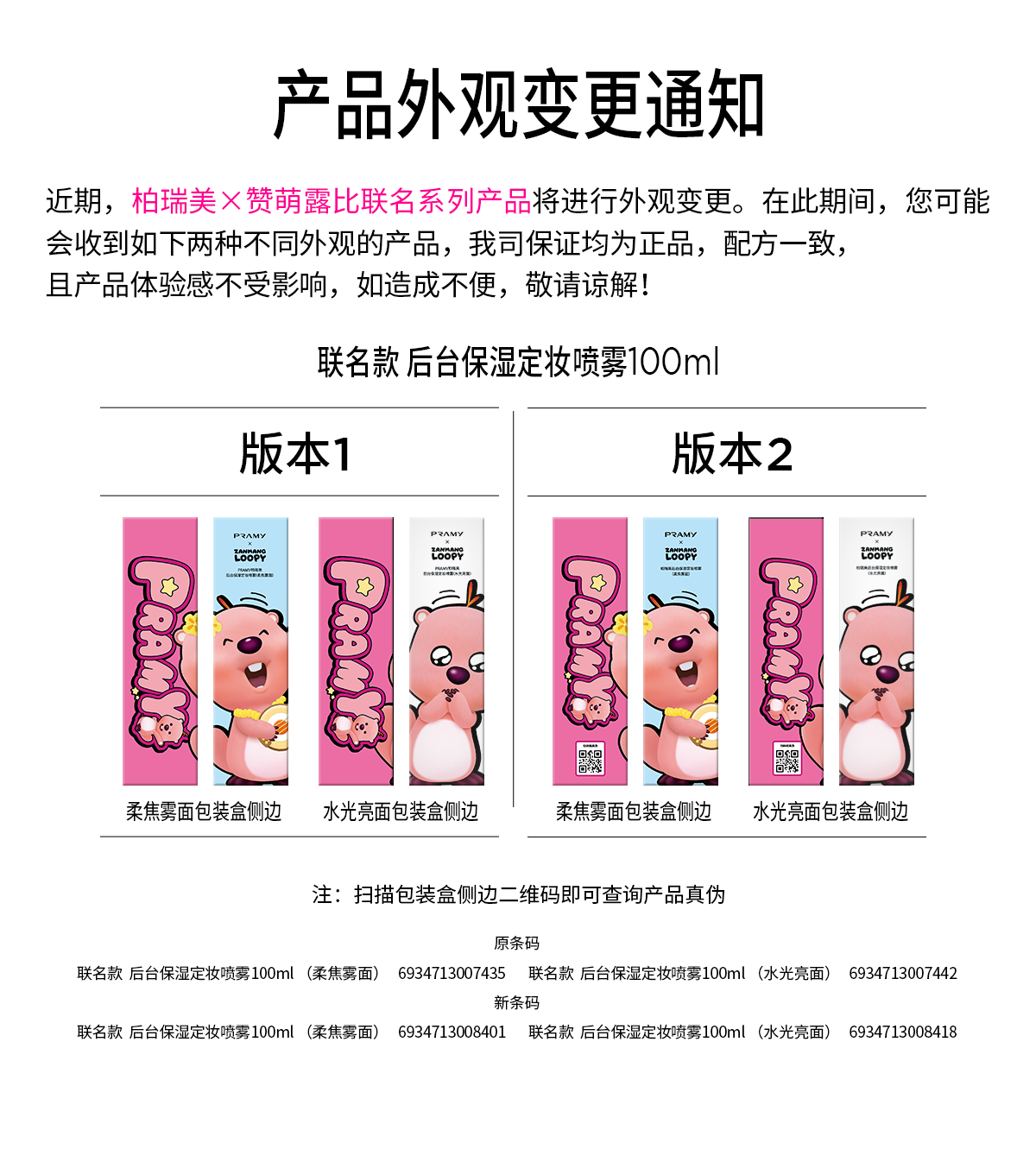 柏瑞美(PRAMY)loopy2.0联名款后台定妆喷雾定妆持久保湿不易脱妆-T 柔焦雾面(黑瓶)100ml