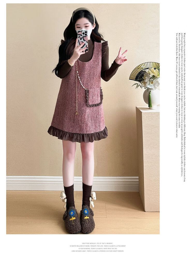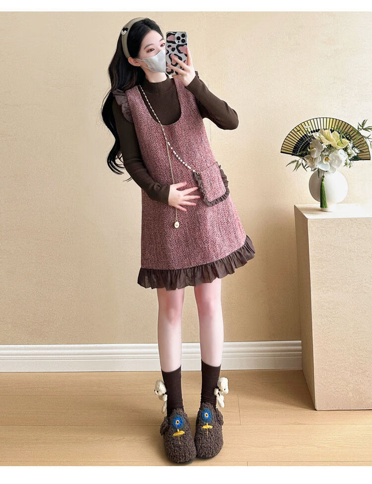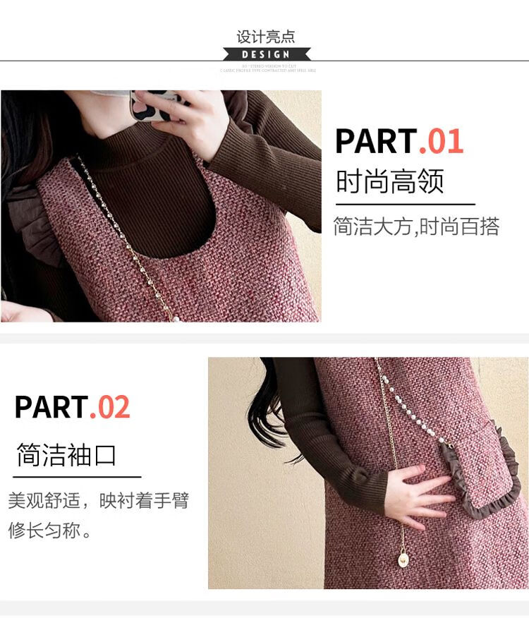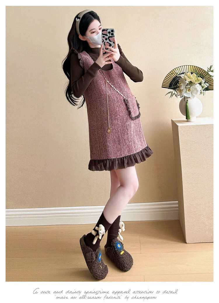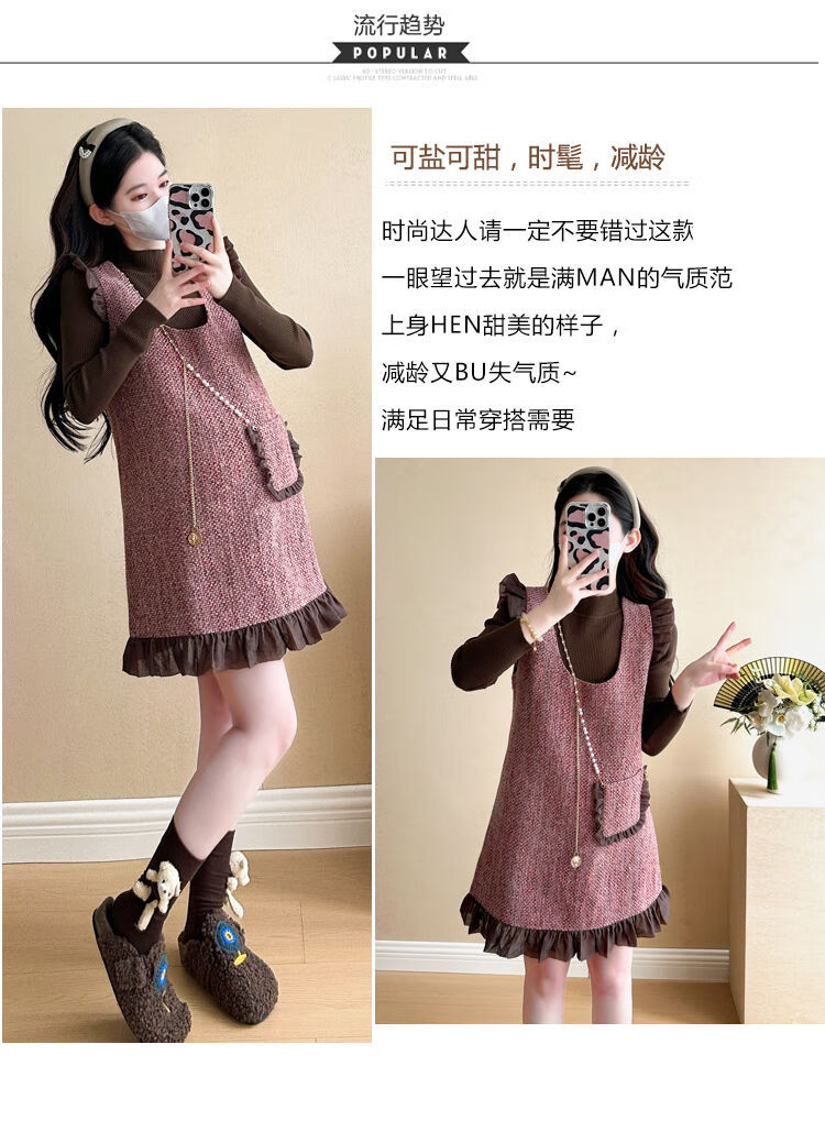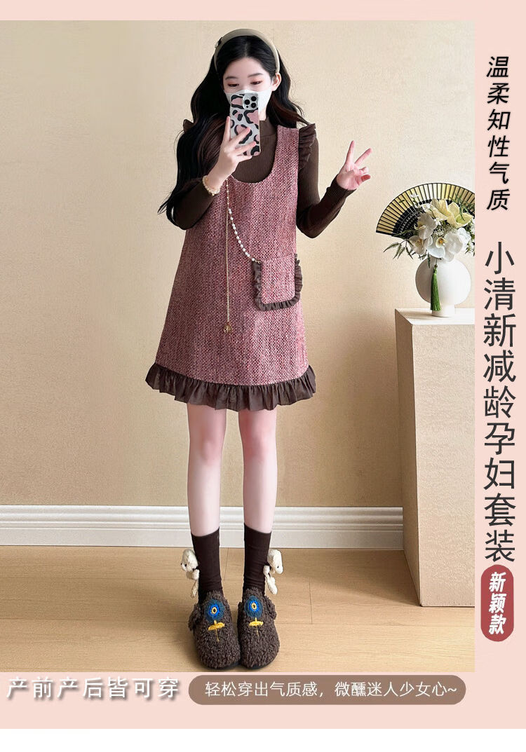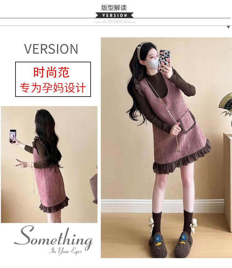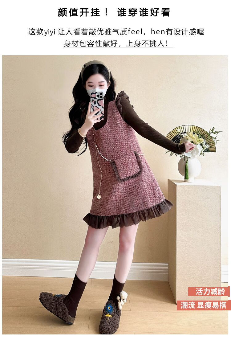 小个子孕妇连衣裙秋冬装套装小香风毛呢背心裙+针织打底衫两件套 咖色打底衫+背心裙【两件套】 M