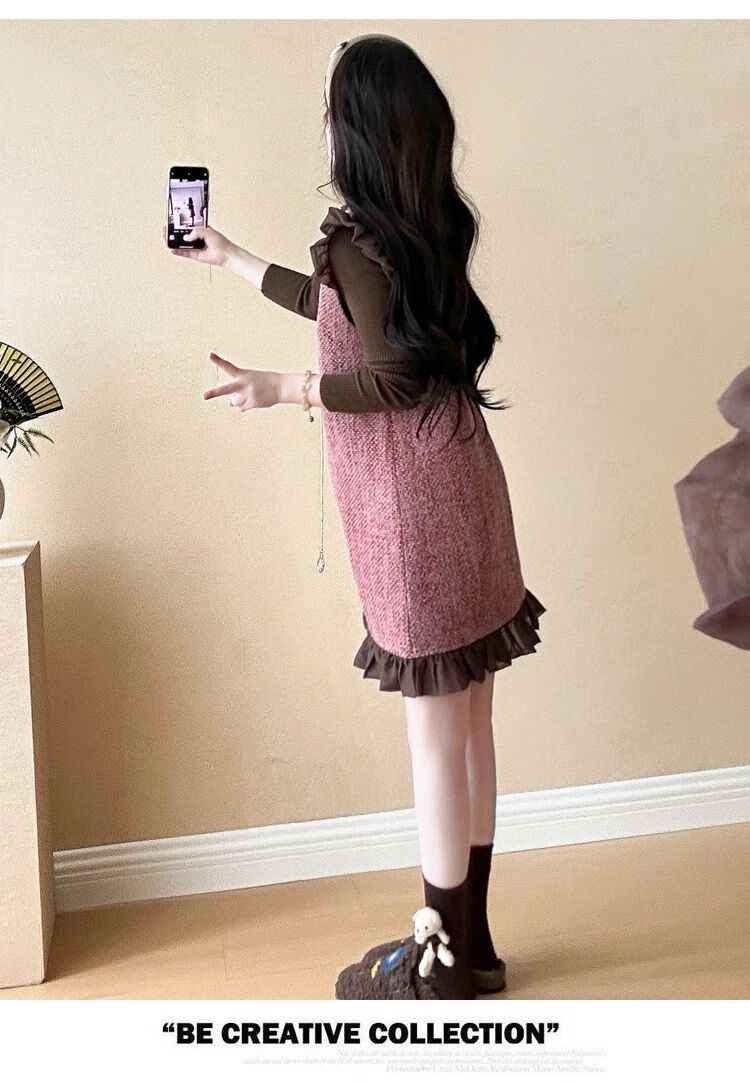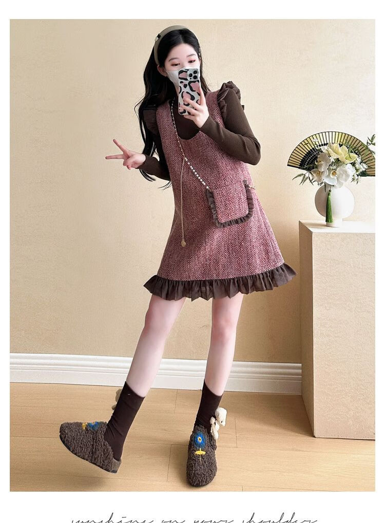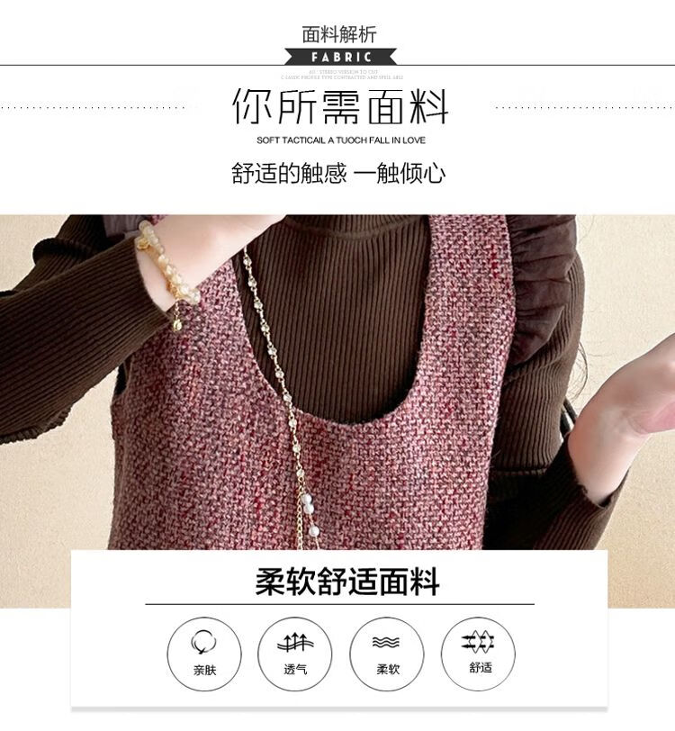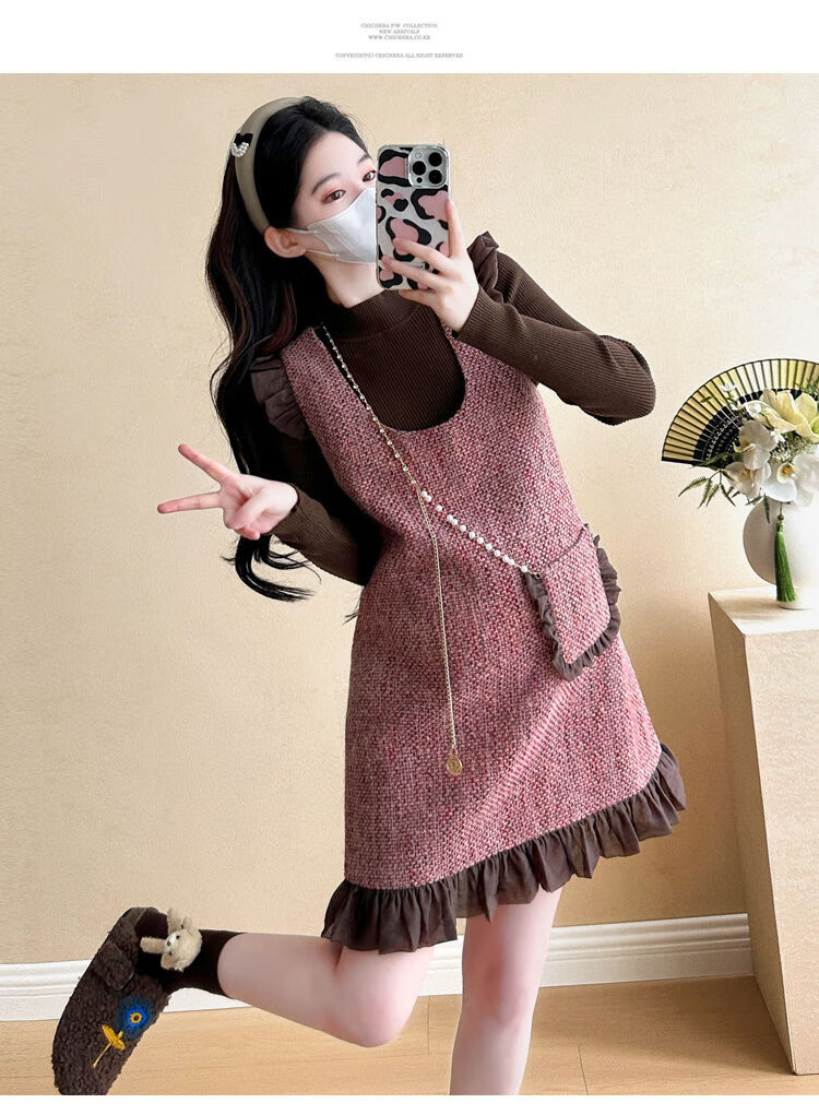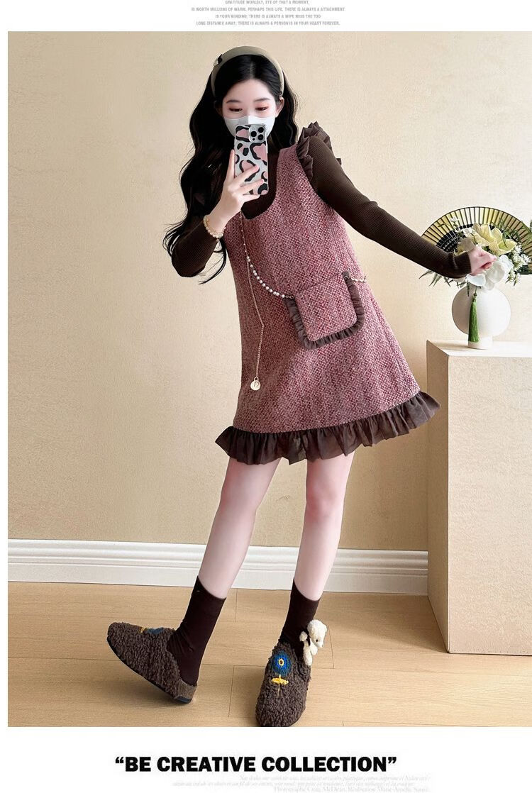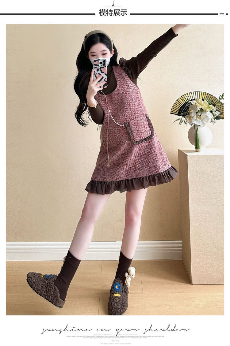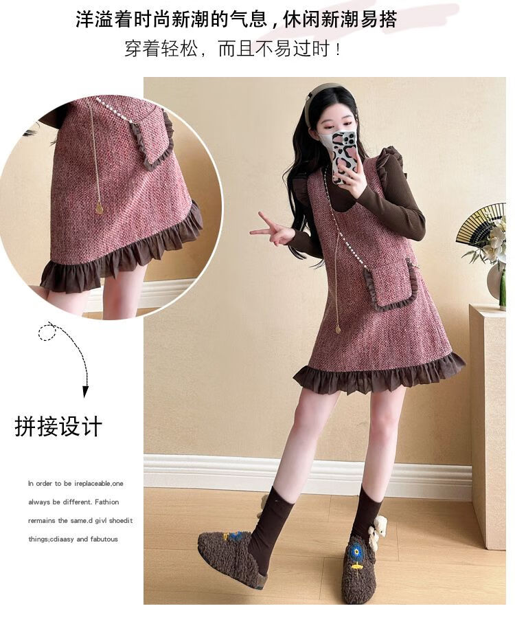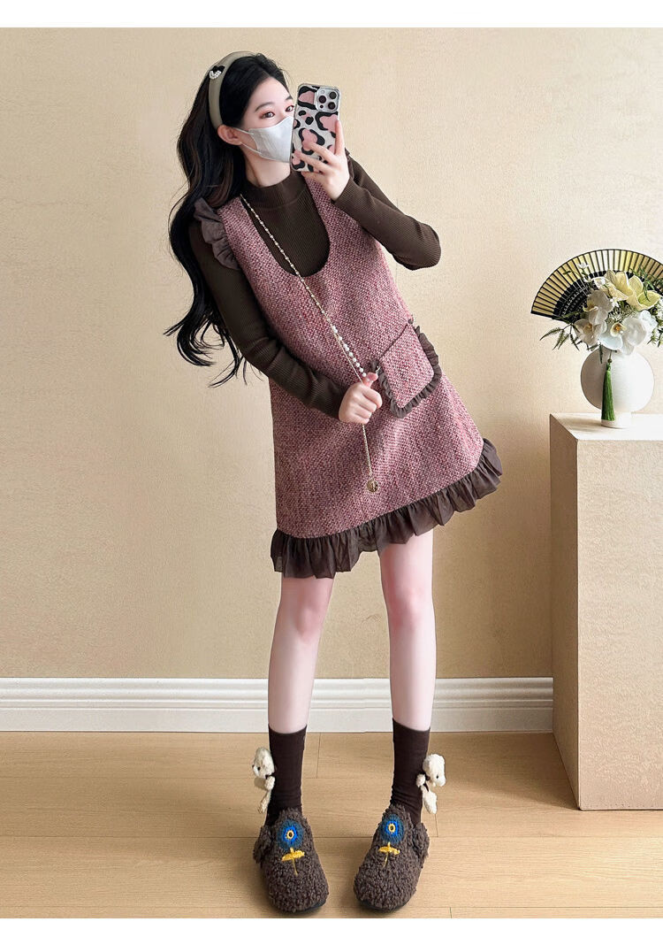 小个子孕妇连衣裙秋冬装套装小香风毛呢背心裙+针织打底衫两件套 咖色打底衫+背心裙【两件套】 M