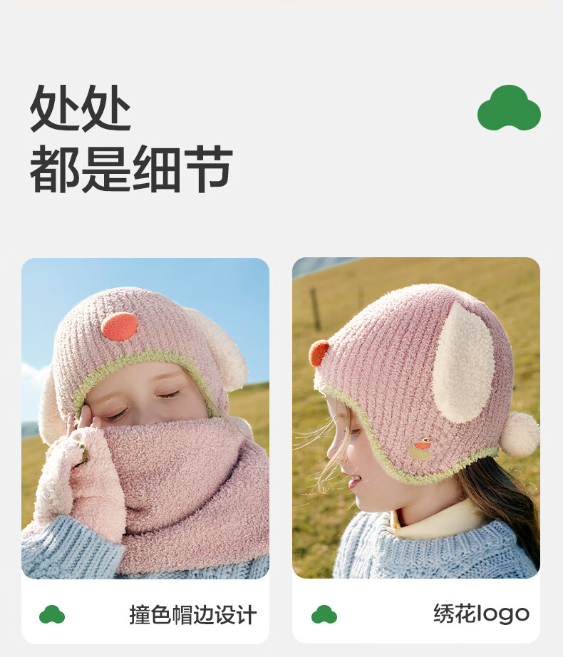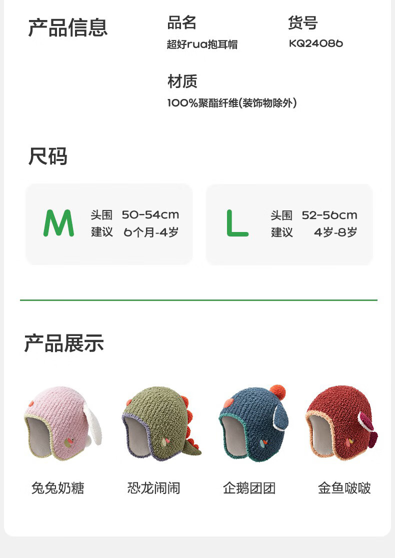 Kocotree【新年礼物】kk树儿童帽子保暖防风宝宝软糯毛线帽男女童卡通立体