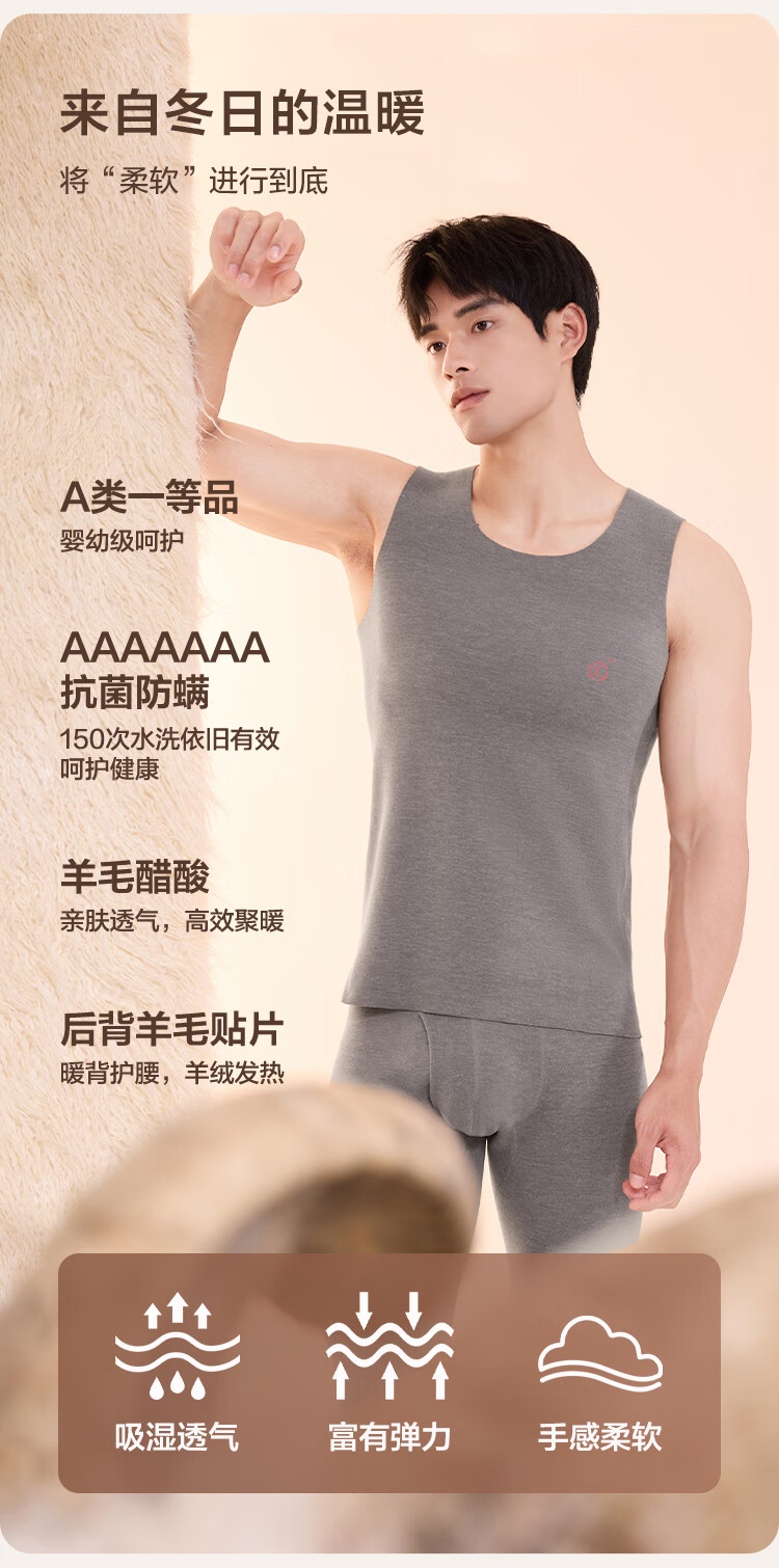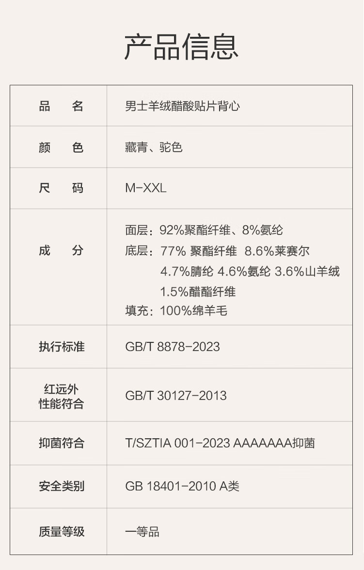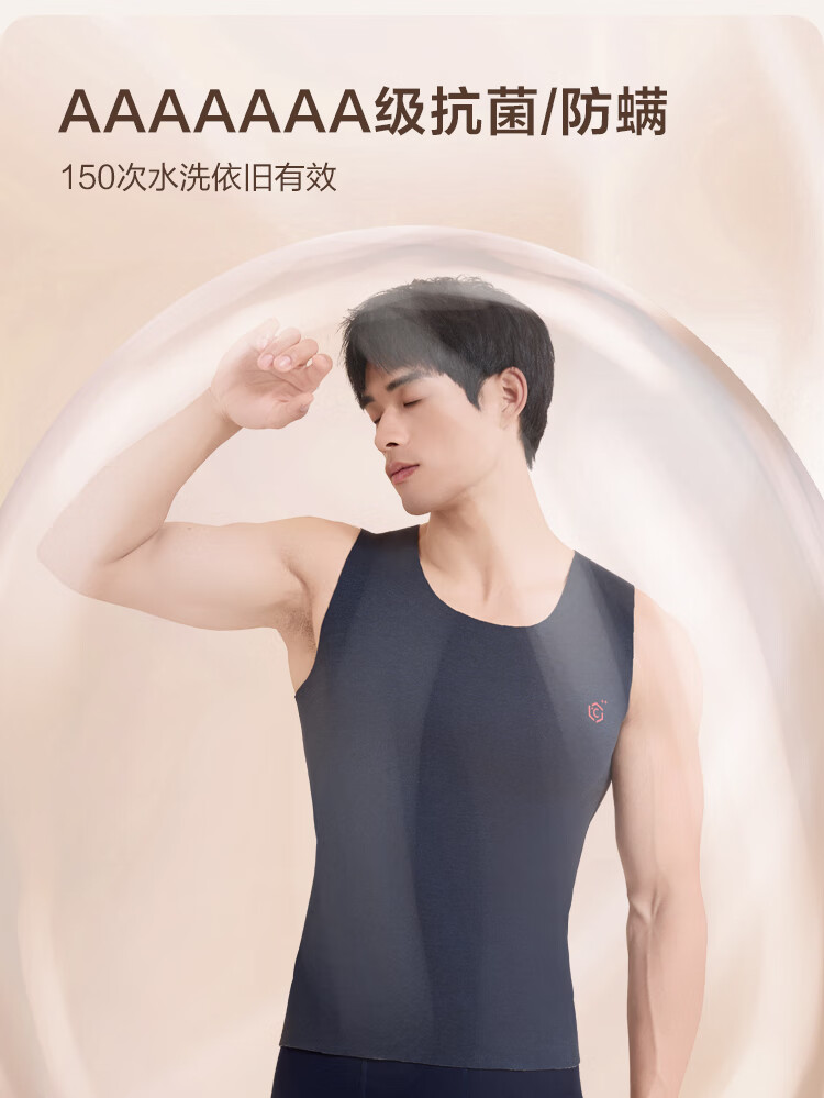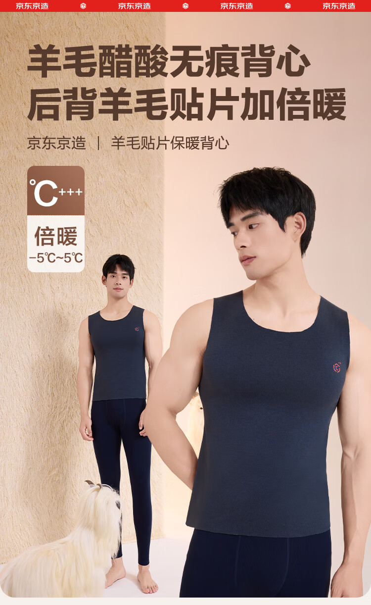 京东京造男士无痕保暖背心羊毛醋酸7A抗菌打底秋冬防寒无袖坎肩 藏青 XL