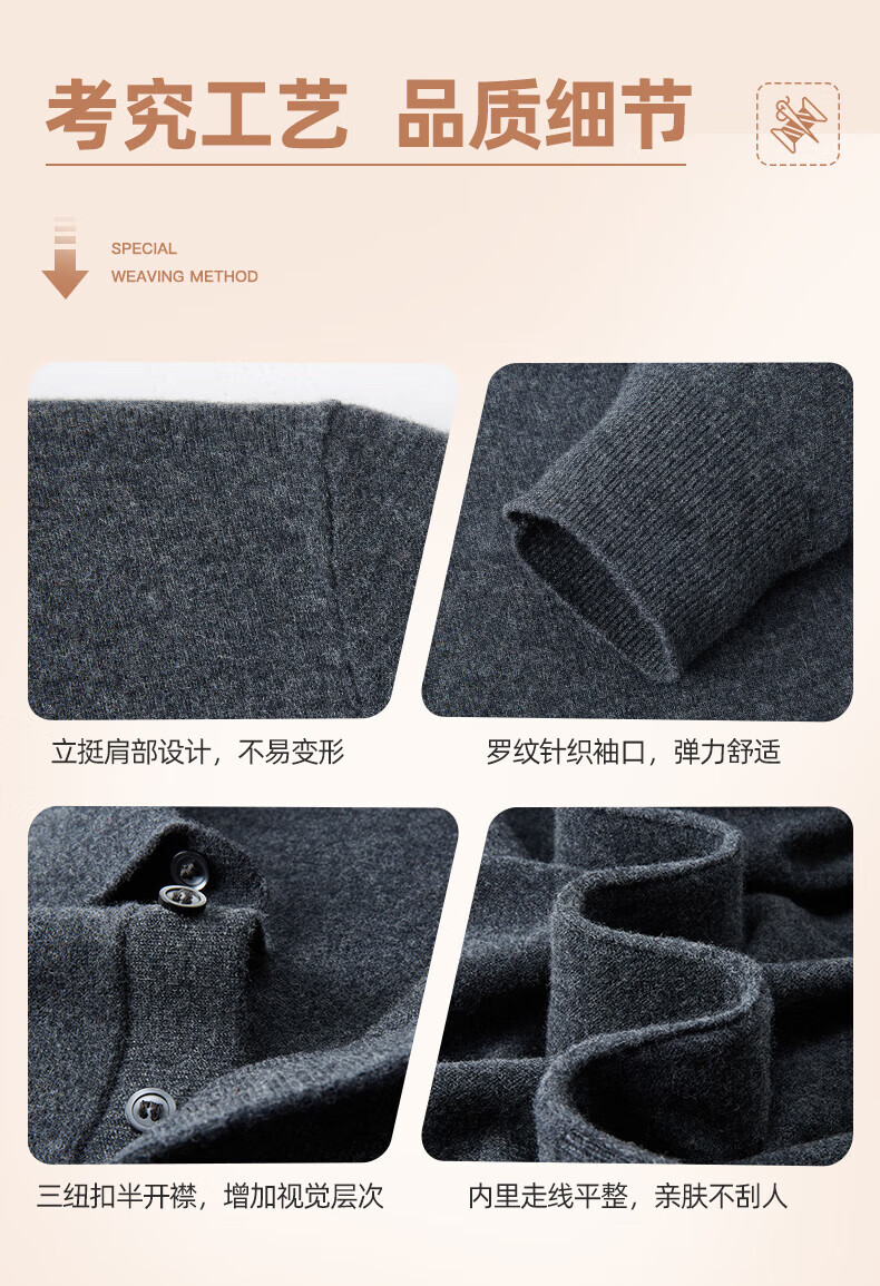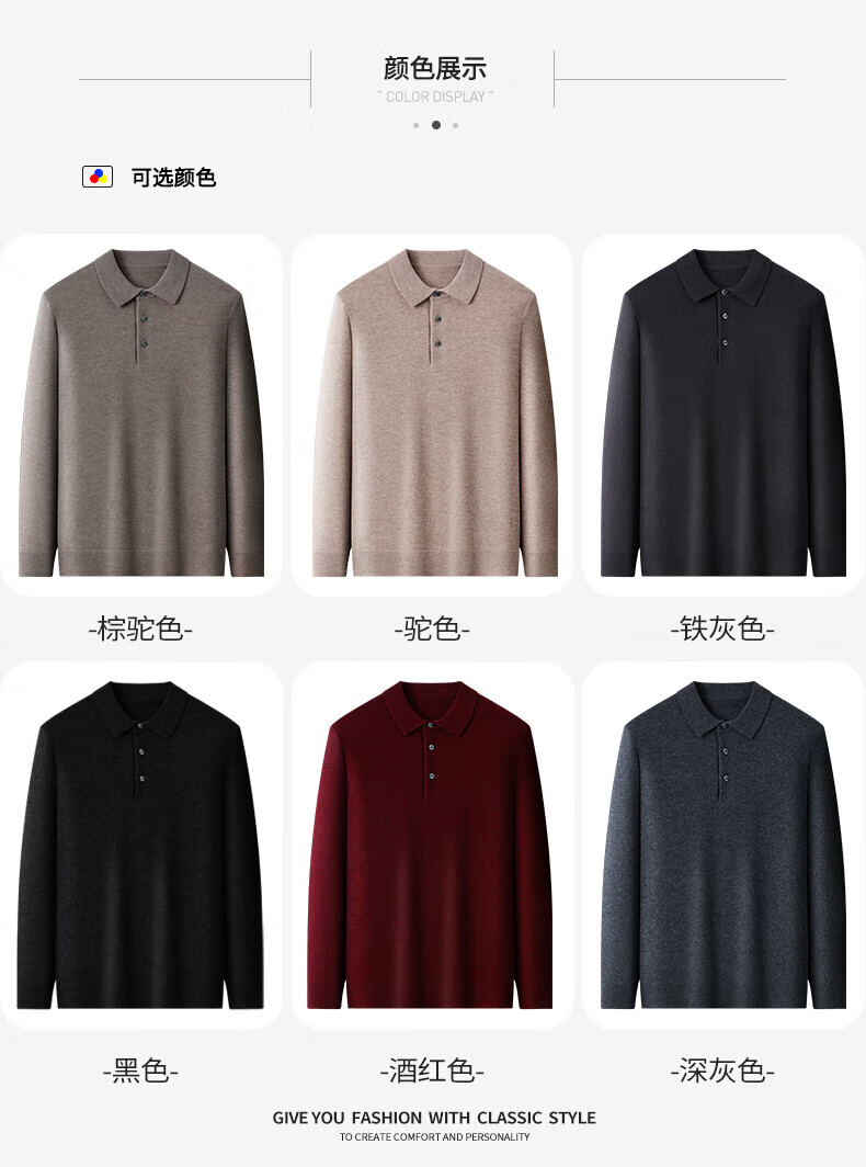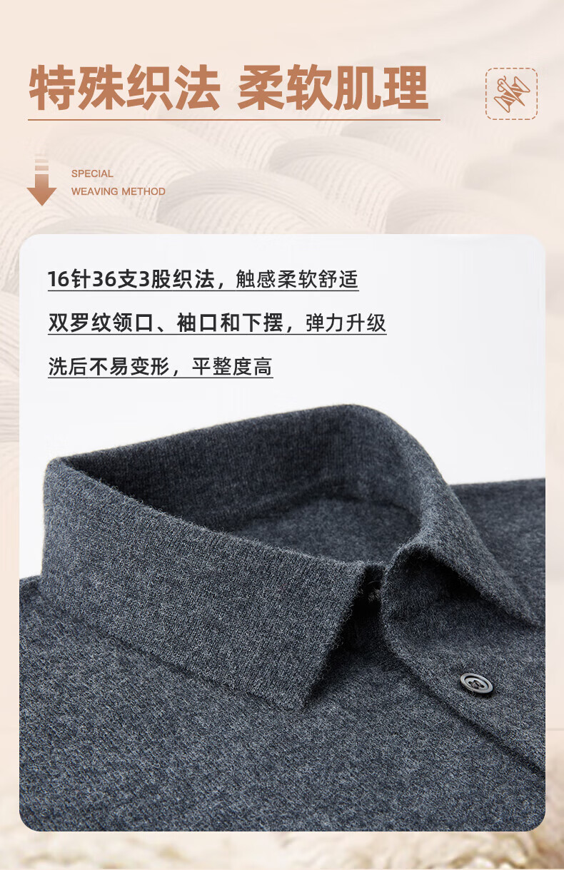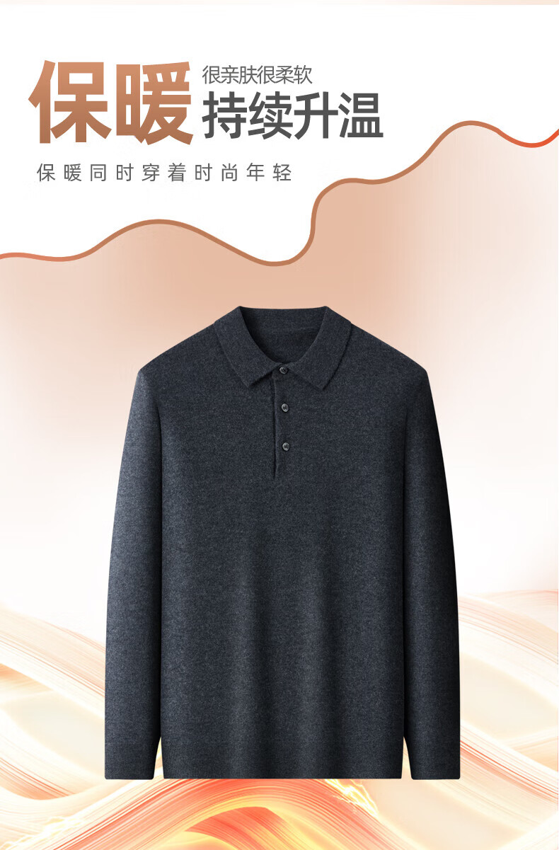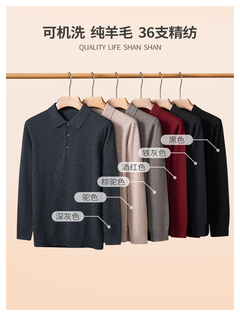 SHANSHAN杉杉【100%羊毛】男士羊毛衫冬款翻领本命年红色毛衣内搭保暖上衣 酒红色 XL /180