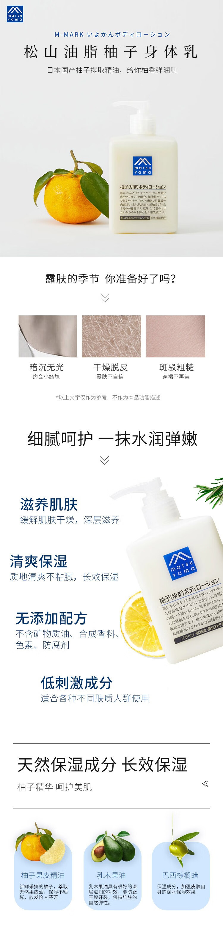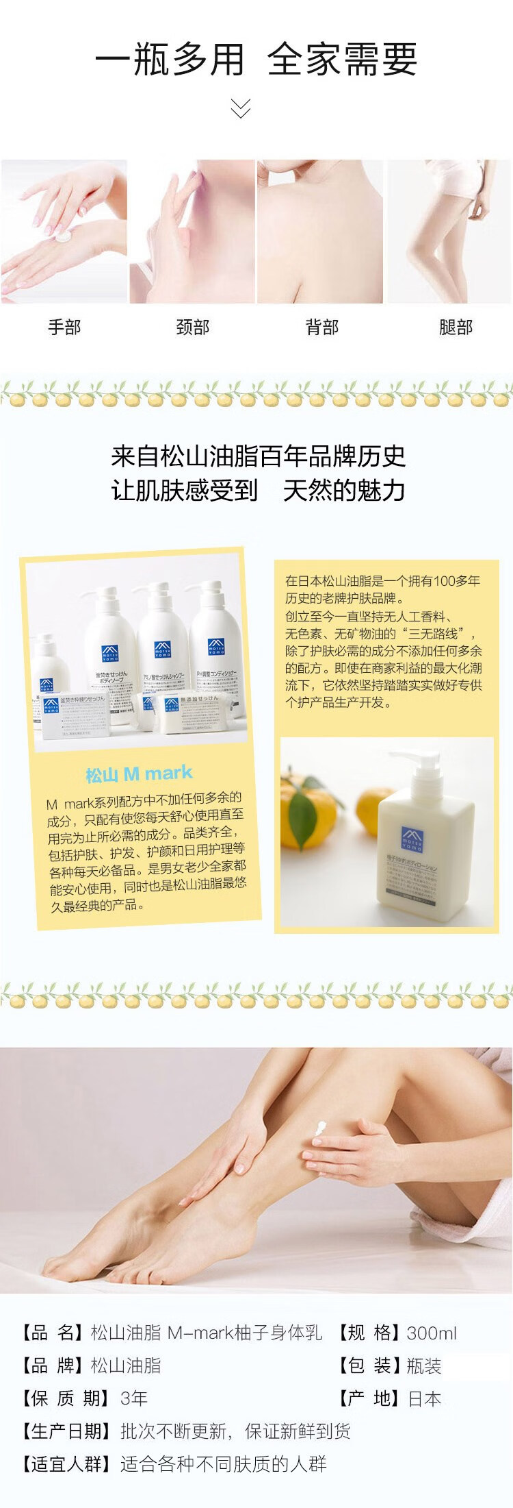 松山油脂M-mark系列 柚子身体乳精华润肤露 300ml 保湿滋润 日本进口 日本 日本进口