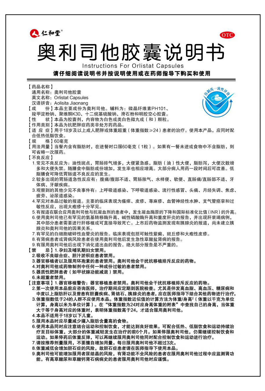 仁和奥利司他胶囊60mg*9粒 奥利司他胶囊排油减肥正品国药准字 减脂减重 减肥药 塑身排油瘦身 治疗肥胖
