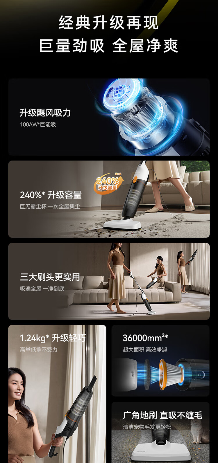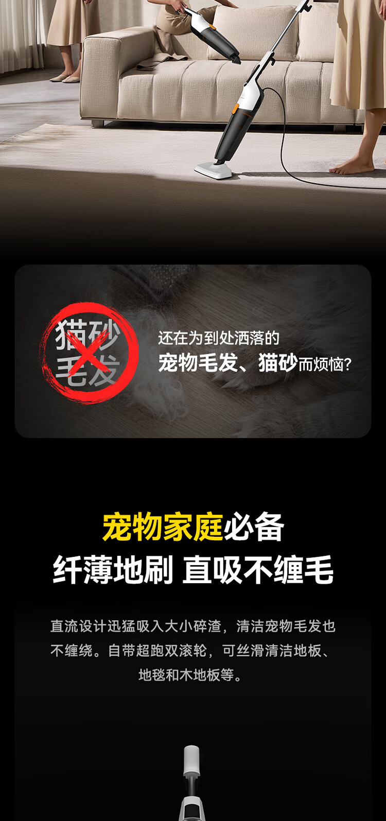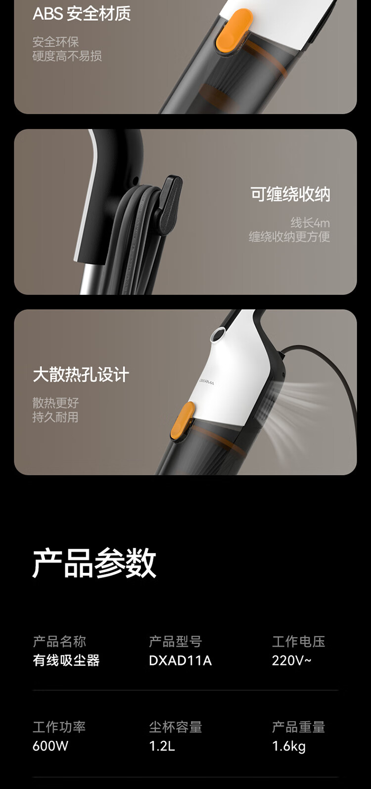 德尔玛(Deerma)小型家用立式吸尘器手持吸尘机家庭适用 立式/手持两用吸尘器 大吸力宠物吸毛DX170 DXAD11A