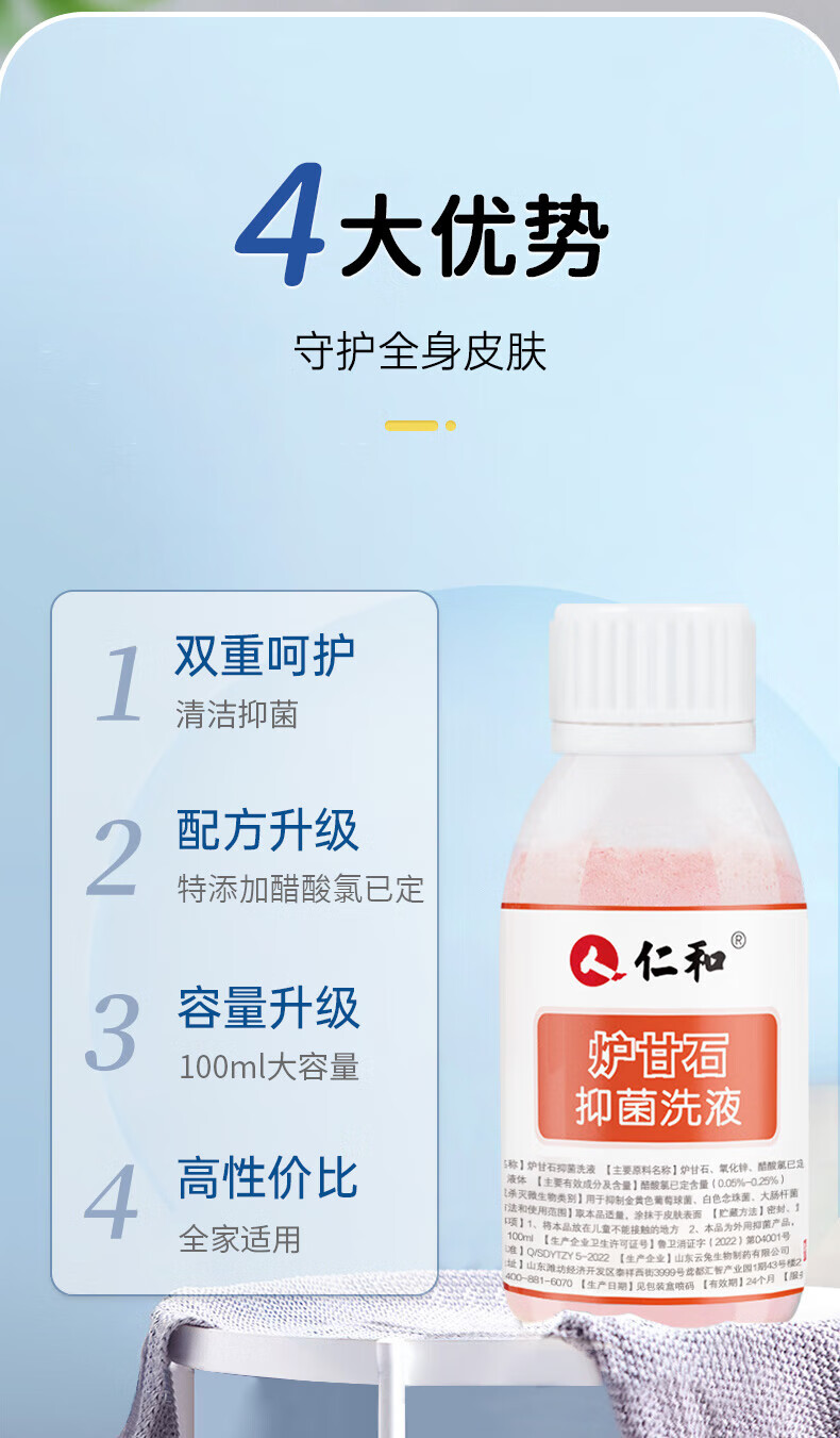 仁和 炉甘石洗液剂100ml 炉甘石洗液剂 炉甘石婴儿童抑菌洗液外用 【一盒装】